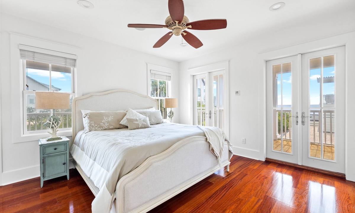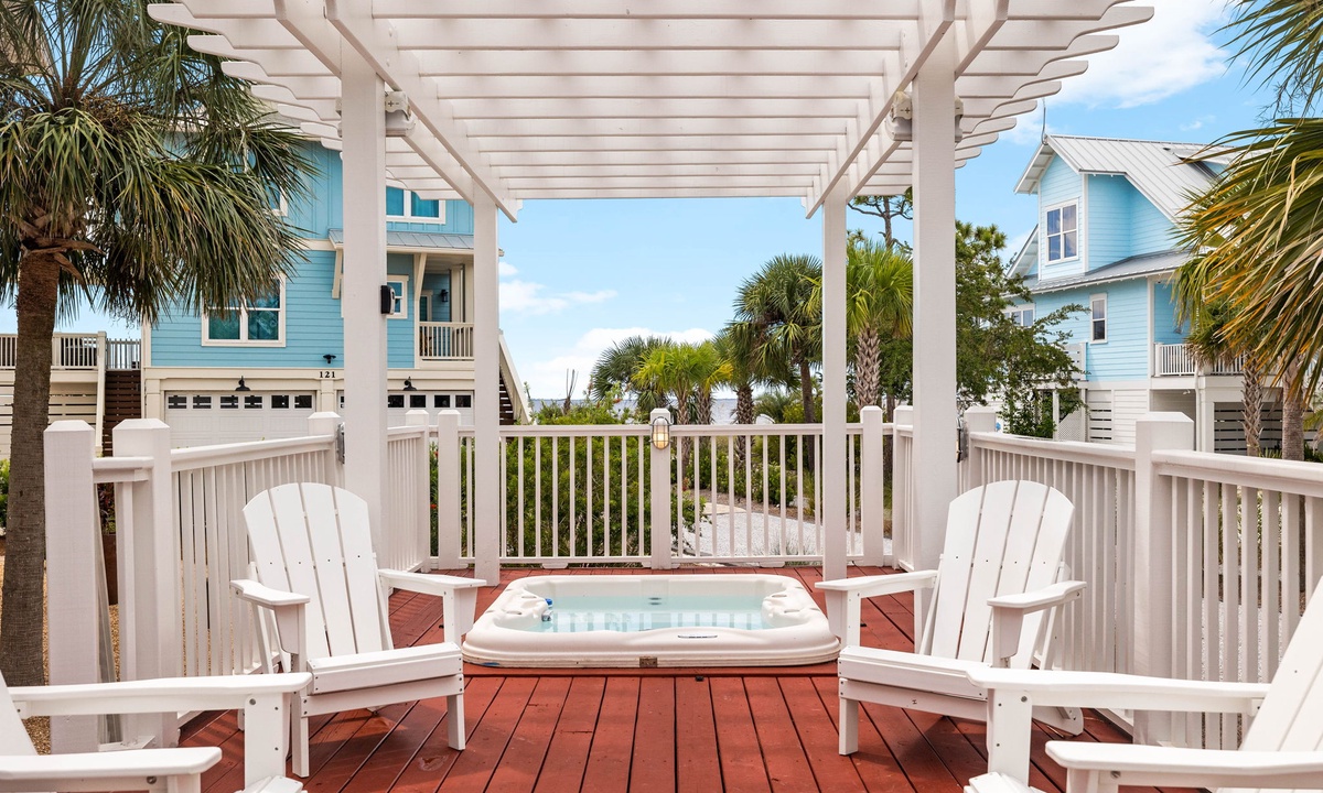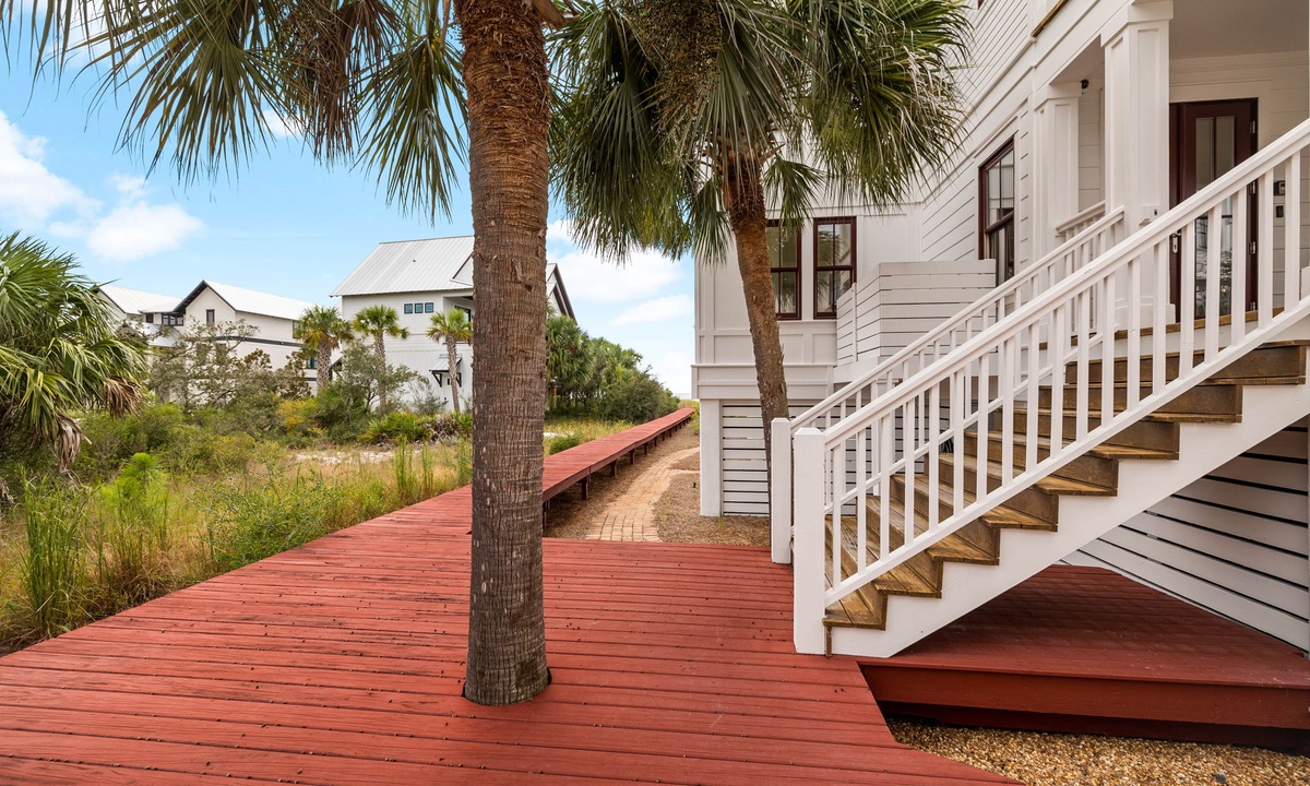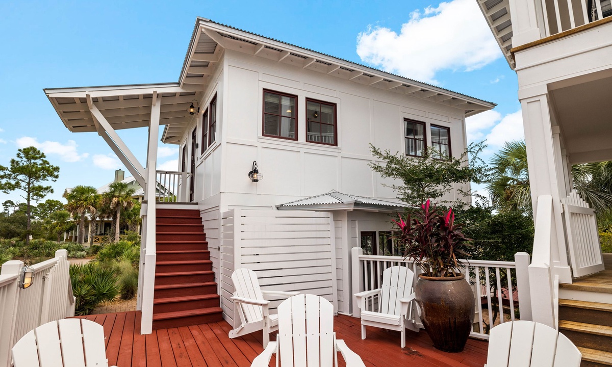 Each spacious bedroom comes with its own private balcony and outdoor seating—ideal for sipping your morning coffee or catching a quiet sunset. The main home also features a private hot tub, outdoor shower, and cozy fire pit—perfect for nights under the stars. Access the beach in no time with the home's own private beach boardwalk.