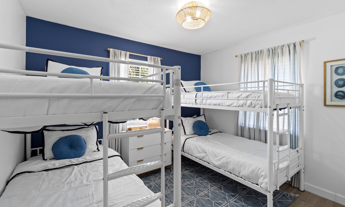 > 1 Bunk Room (2 sets of Twin-over-Twin bunks – perfect for kids or extra guests)