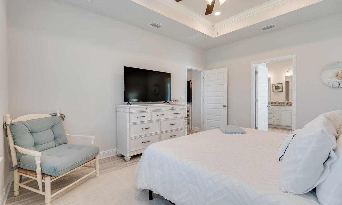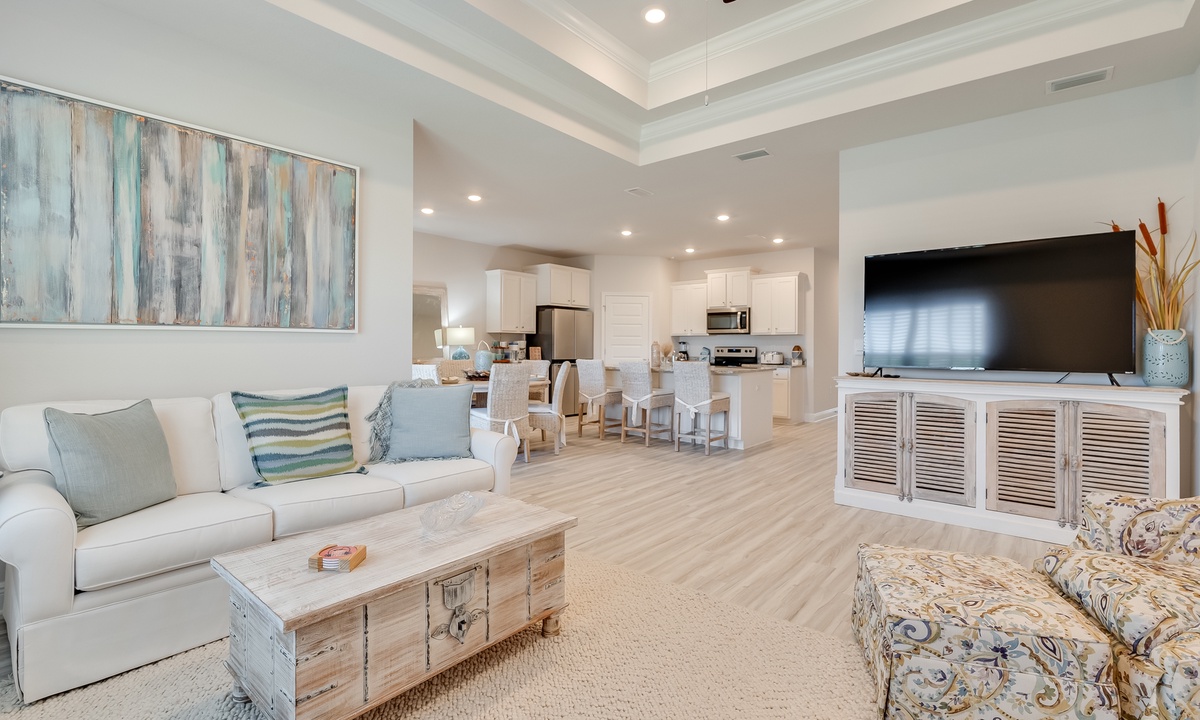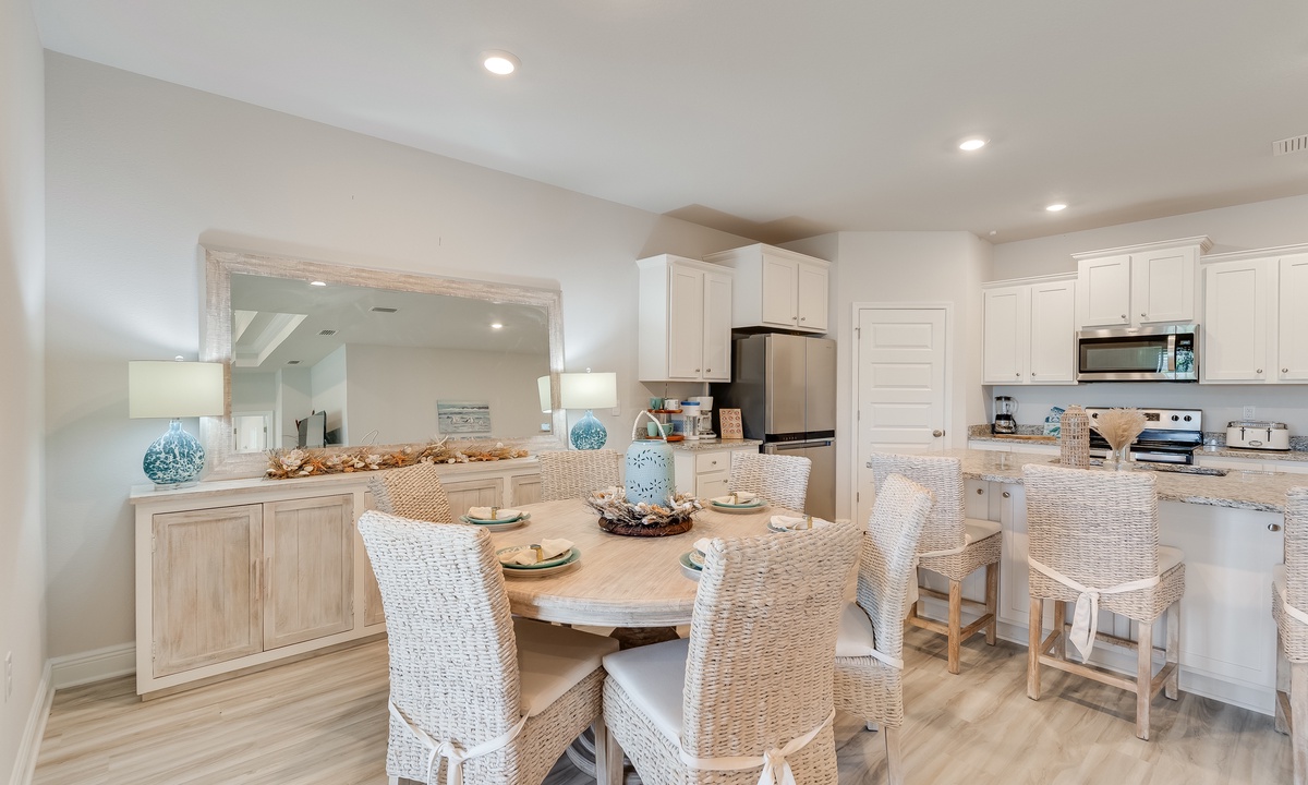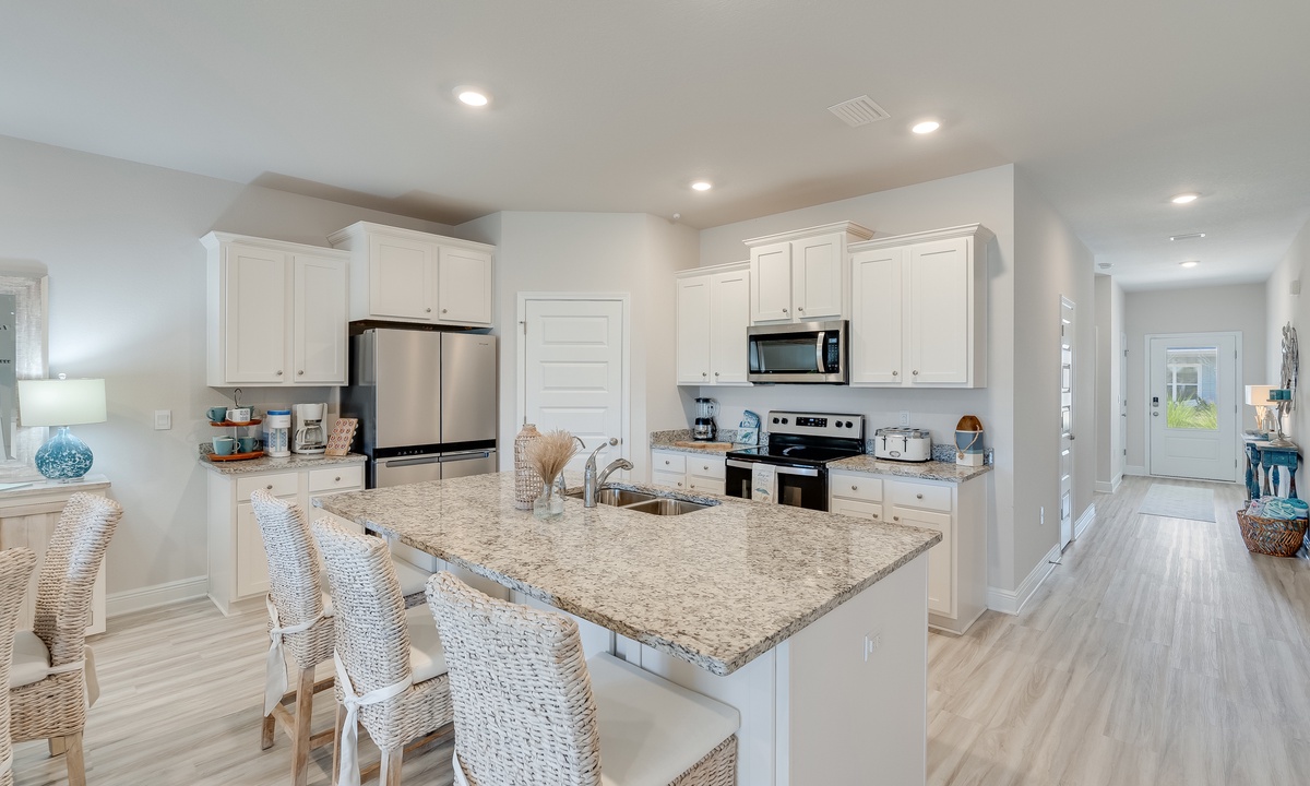 Ready for a relaxing escape? This spacious 4-bedroom home offers everything you need for a memorable stay! With a golf cart for easy beach access and exploring the Windmark community, each bedroom equipped with its own TV, and 2 full bathrooms, comfort and convenience are at your fingertips. Spend your days on the sand, soaking up the sun, or take a dip in the waves. Enjoy outdoor living with cozy seating and a Blackstone grill, perfect for evening cookouts. Just a 3-minute walk to the beach and with 2 community pools to choose from, your days will be filled with fun and relaxation. Retreat to this beautifully furnished home with upscale bedding and stylish decor, ensuring you rest easy in style. End each evening with stunning views of the sunset, painting the sky in breathtaking hues right from your patio.