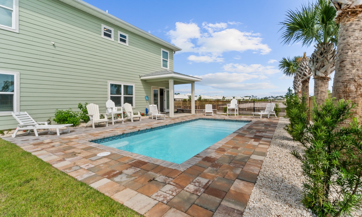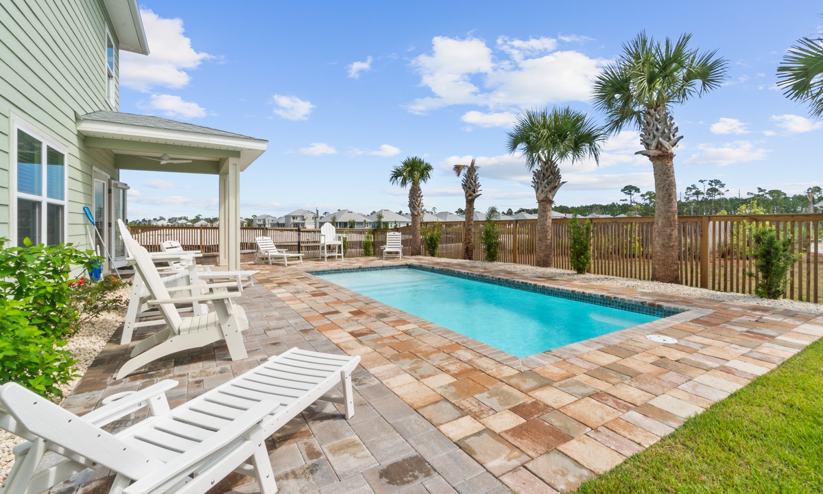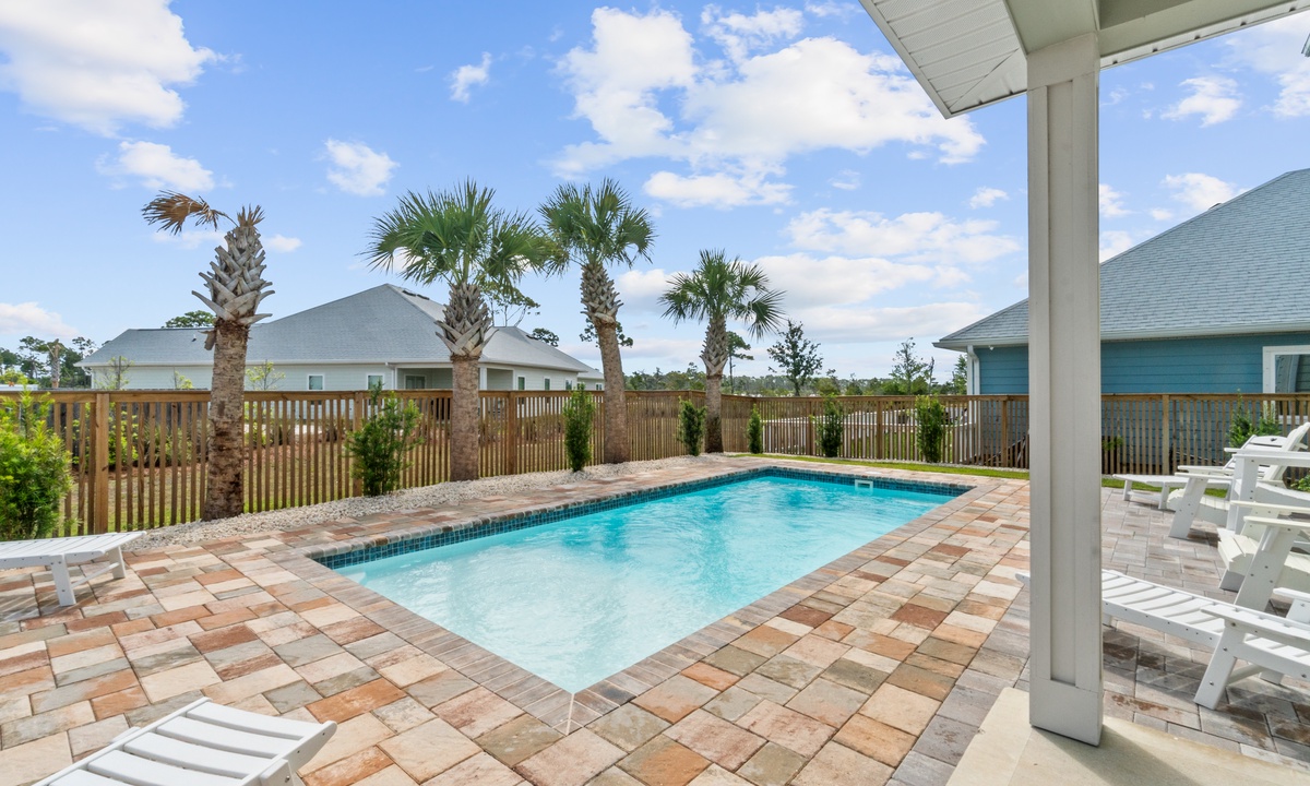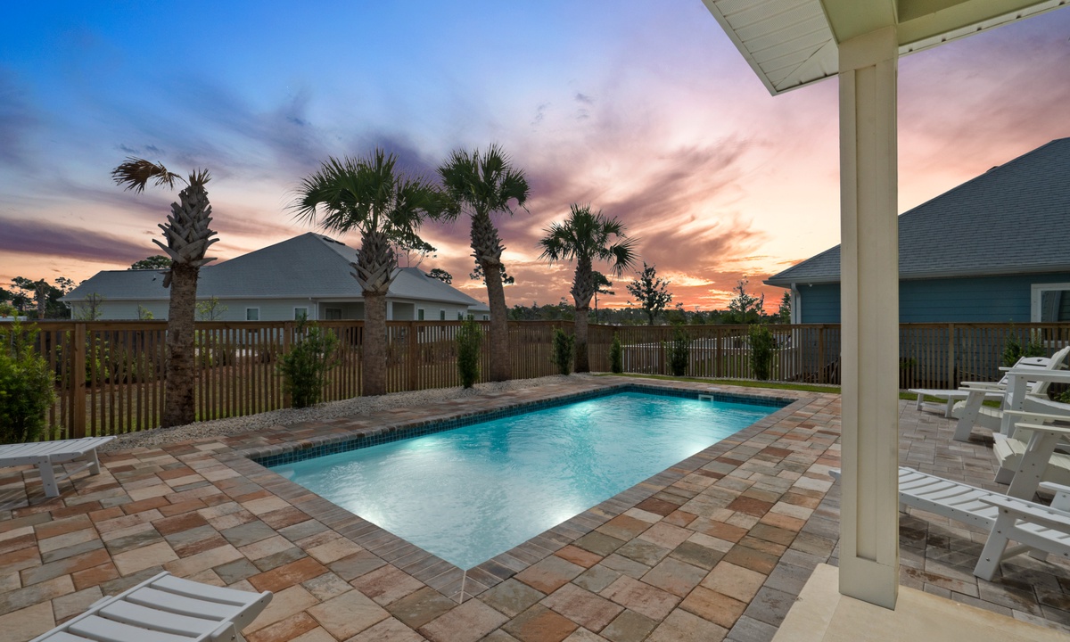 Step into the fenced backyard and unwind in your private pool — with the unique option to heat or chill the water for year-round enjoyment(additional fee)