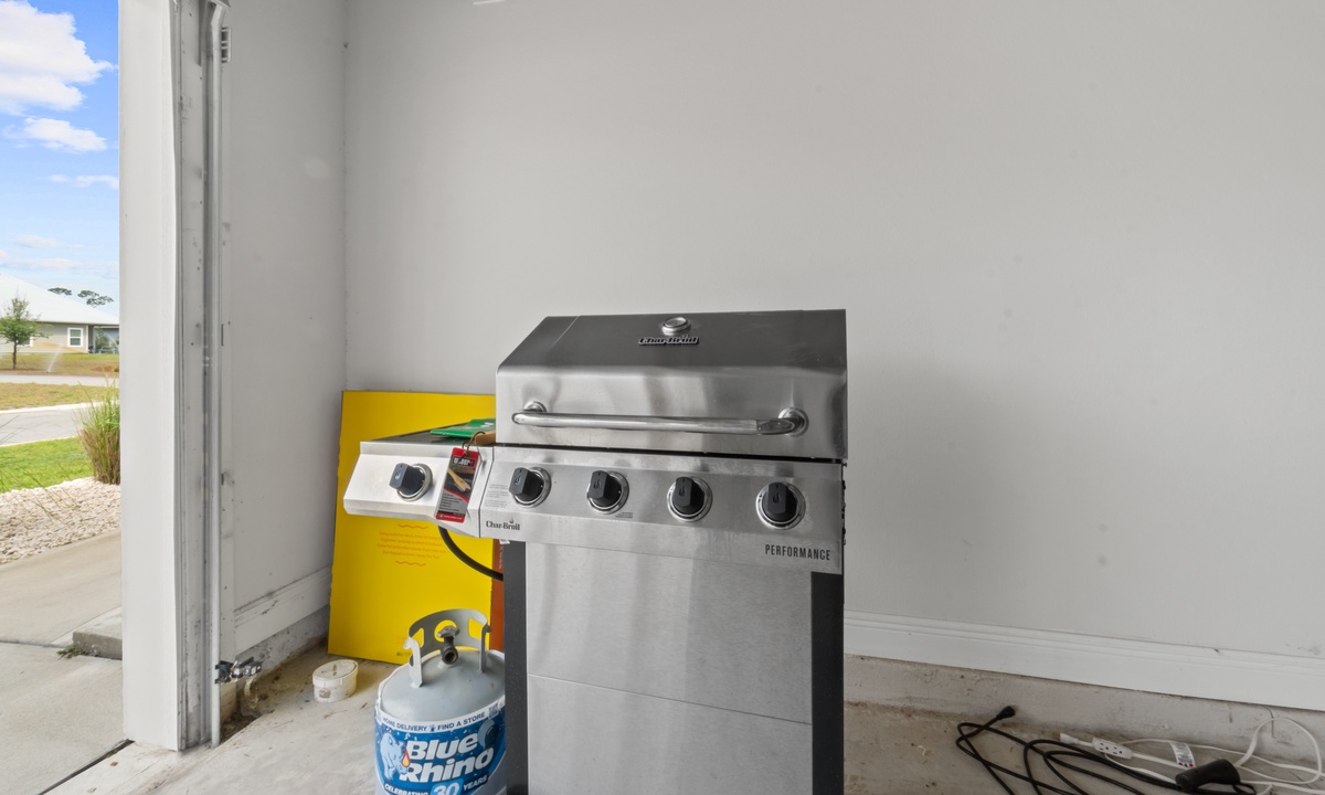 *An outdoor shower for rinsing sand off is located on the side of the garage.