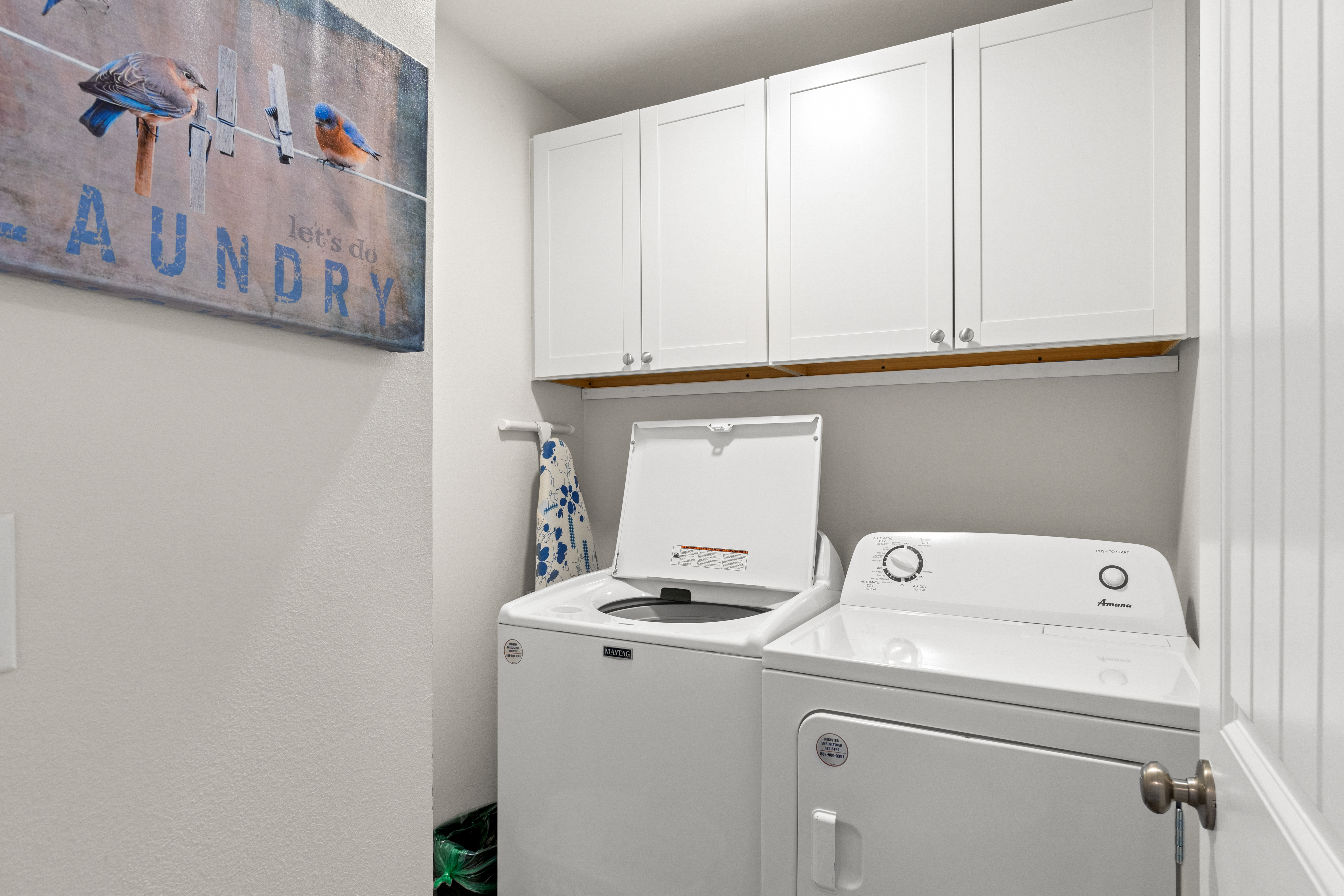 Essentials: Bath towel and wash cloth per guest are provided. Starter supply of soap, shampoo, conditioner, toilet paper, paper towels, trash bags, dish soap, laundry soap and dryer sheet.