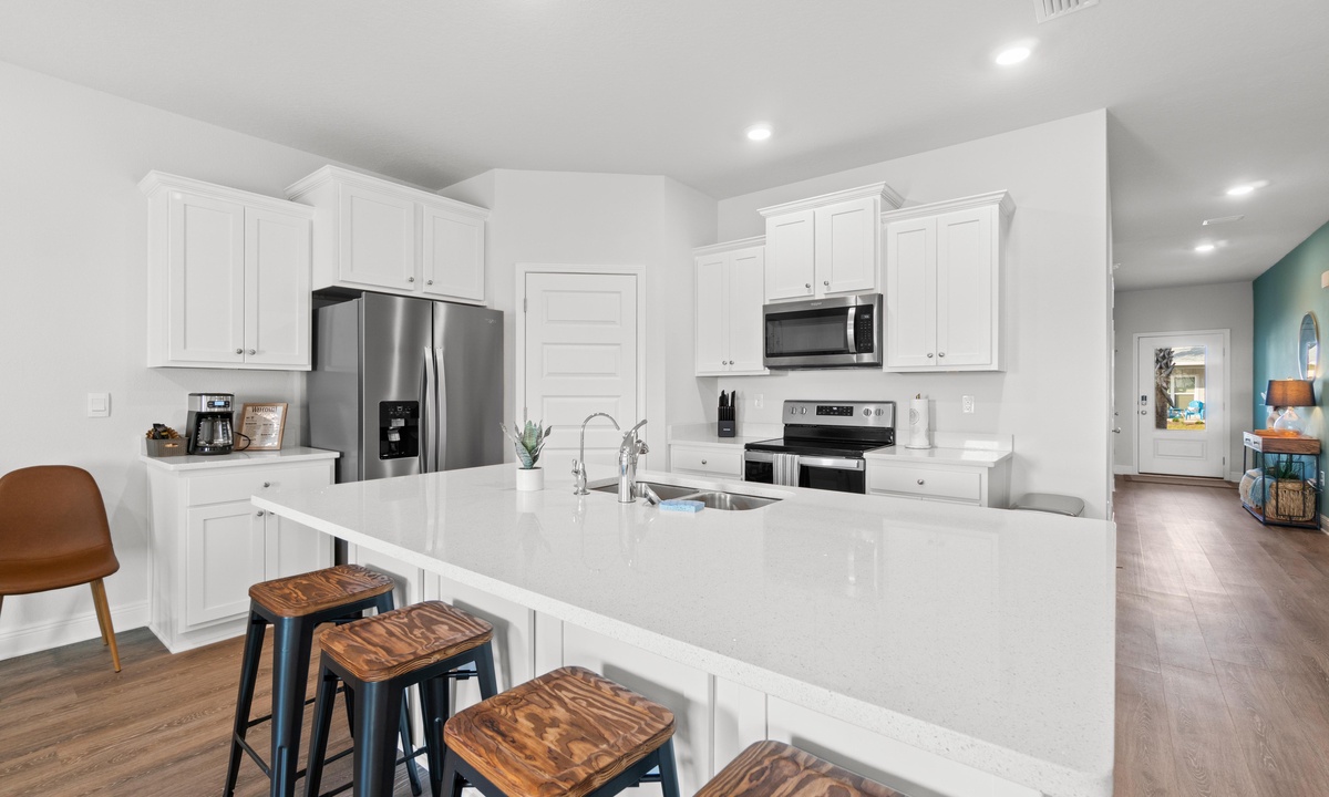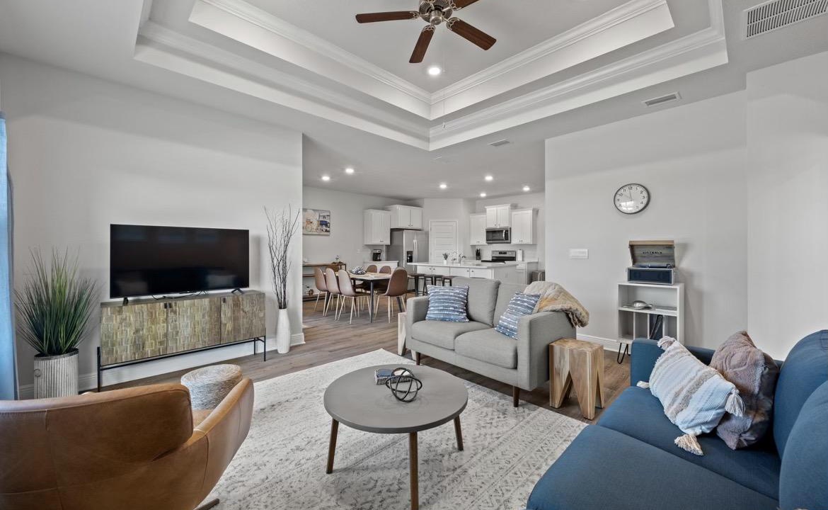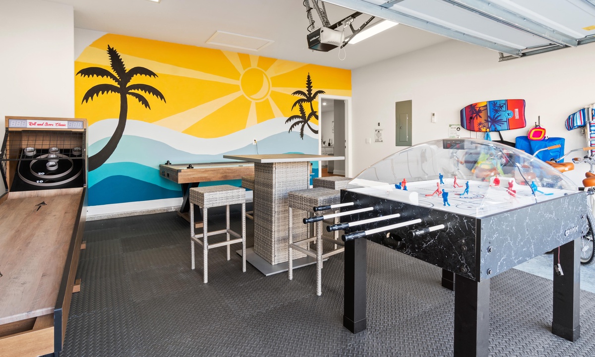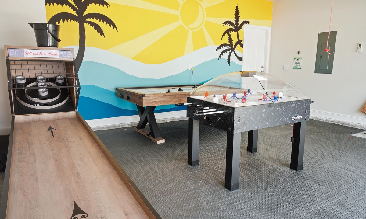 Gulf Splash is a one-story, open-floor plan house with 4 bedrooms and 2 full bathrooms. It sits near the end of a quiet cul de sac in the newly constructed North end of WindMark Beach. This new construction house has a fully equipped kitchen for you to plan all of your vacation meals, including stainless steel appliances and granite countertops. The house is tastefully decorated in modern yet comfortable decor. For more fun at Gulf Splash, head into the garage-turned Game Room for some fun, or head to the white sand at WindMark Beach. Try your skills at skee ball, full-size air hockey, or bubble hockey.