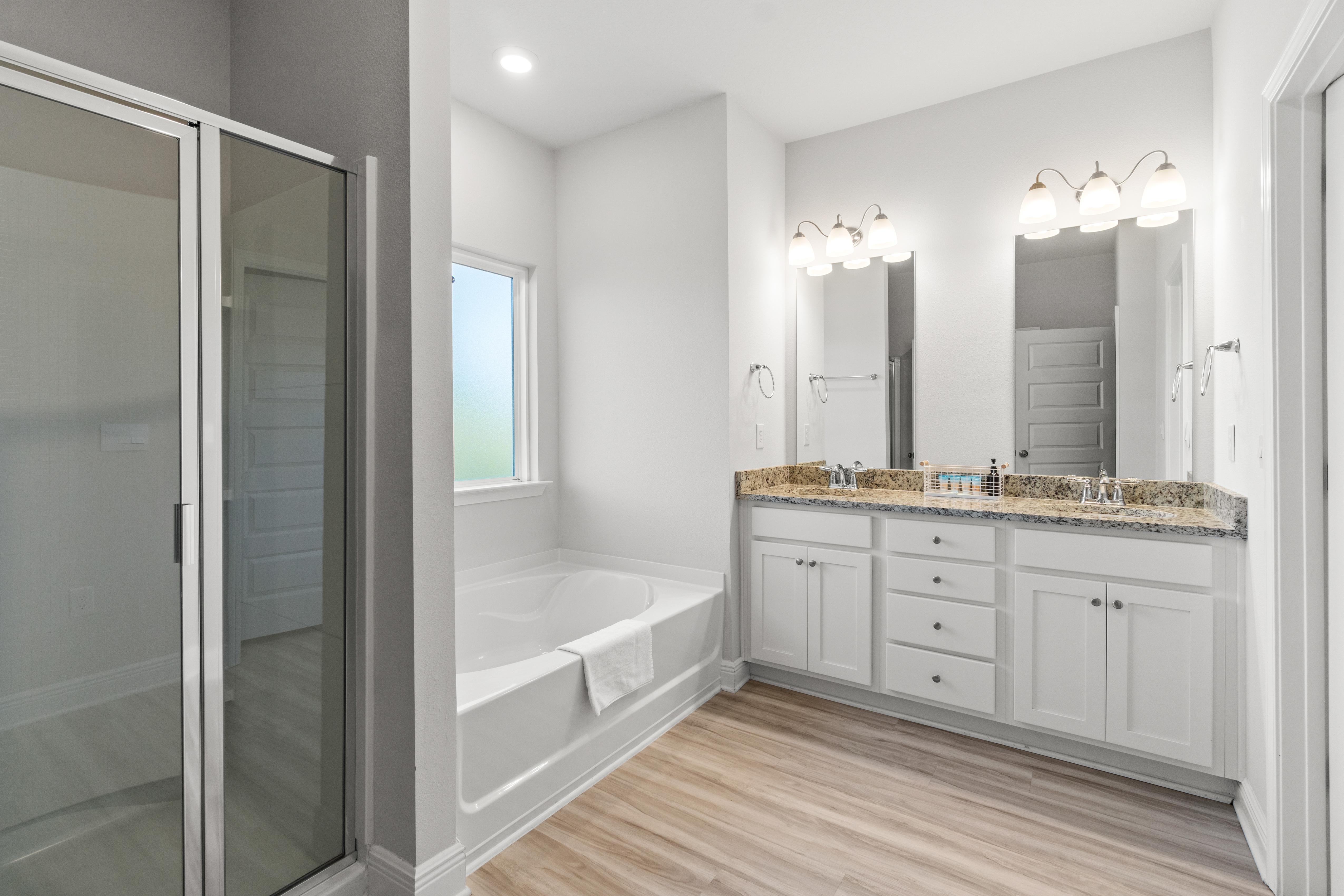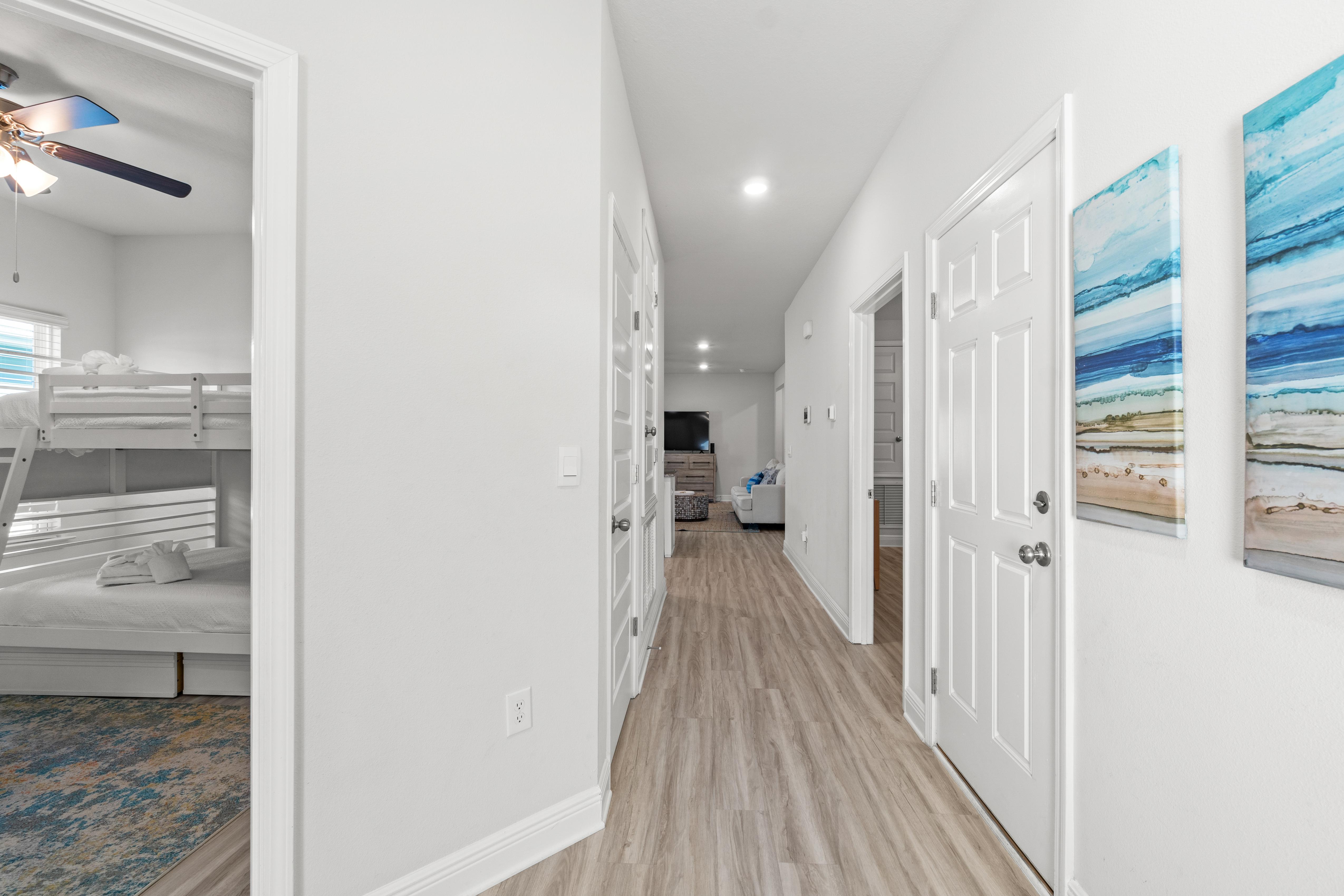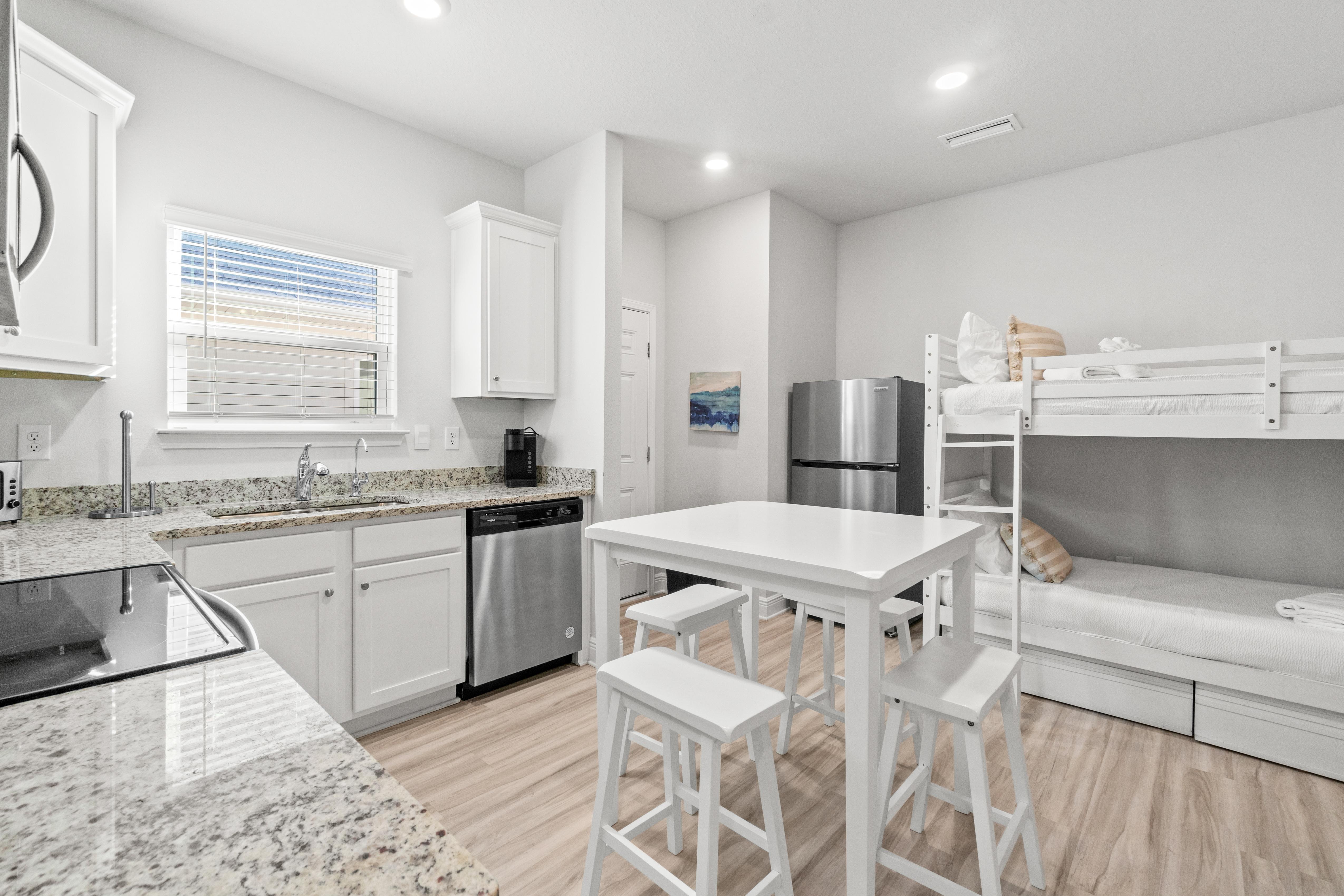 This beautiful new build features a spacious master suite with en-suite bathroom that boasts a garden tub, double vanity, and walk in shower. The additional bedrooms consist of a king bed and a full sized bunk room – perfect for your littler travelers - and a queen sleeper sofa in the living room. Lastly is the separated mother-in-law area located inside the home that's equipped with its own full kitchen, king bedroom, living room with queen sleeper sofa and twin bunk beds, and bathroom - ideal for multiple families traveling together!