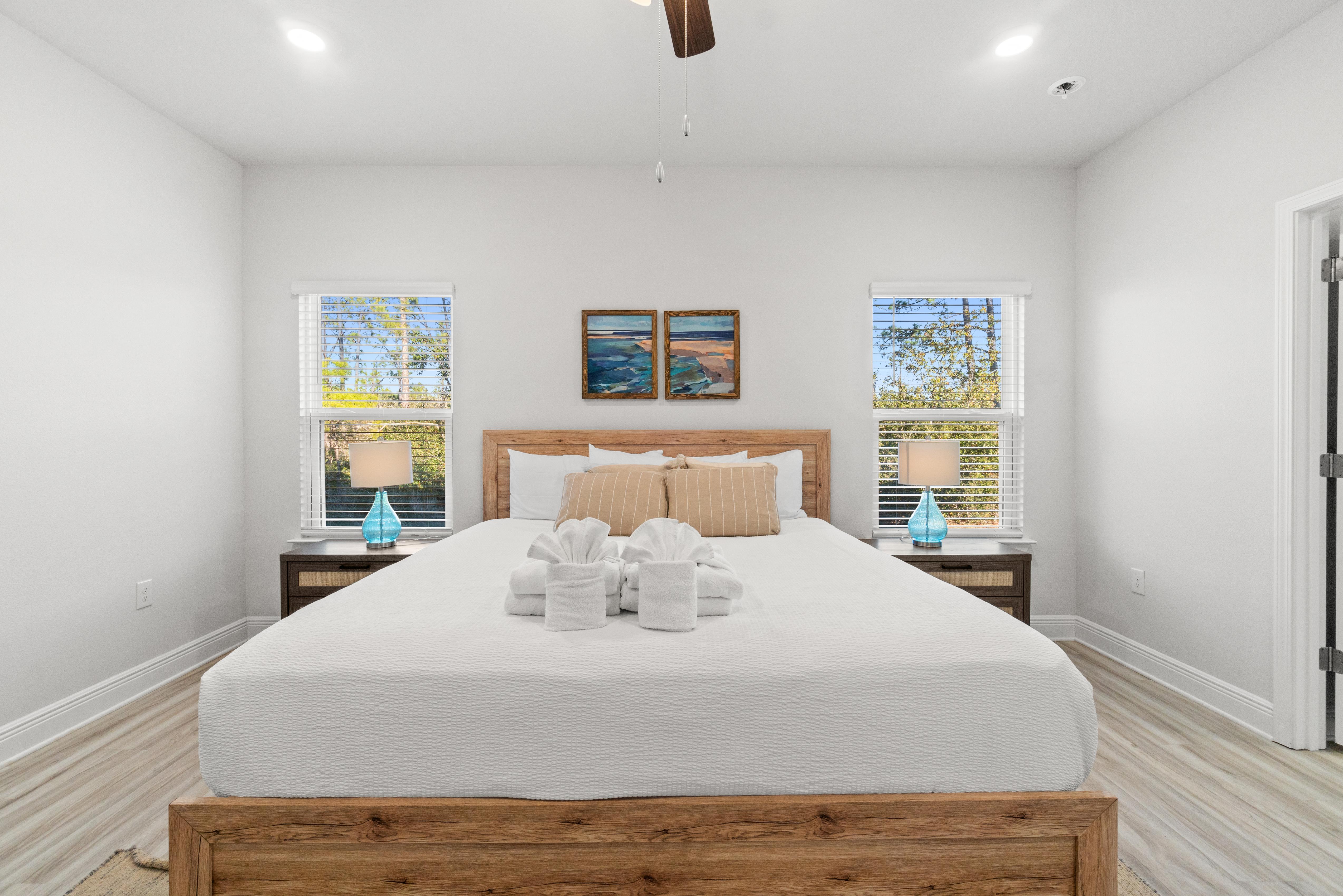 You will love spending time outdoors with the amenities that the Windmark Beach community has to offer! For the beachgoers – this house is a short walk to the beach at St. Joseph's Bay. Take a leisurely stroll or bike ride down the BeachWalk boardwalk, which runs parallel to the bay. You can drive our 4 seater golf cart(additional fee) for a short ride down to the town center to enjoy ice cream or grab some pizza to eat on the beach at Bruno's Pizza! The Town Center has a variety of stores from paddle board rentals and a fitness center, to an aesthetic boutique, and craft cocktail bar! A trip to Saint Joe Emporium is a must at Windmark! You can indulge in hand dipped ice cream, shakes, candy, as well as shop for gifts, groceries and bait for your day's fishing. You will love the Village Center Club, which features a beautiful, seasonally heated zero-entry pool. When not swimming, the large lawn area and playground adjacent to the pool deck will keep children entertained. Throughout the year, various events are held on the Village Green, from outdoor music performances to outdoor family movies.
