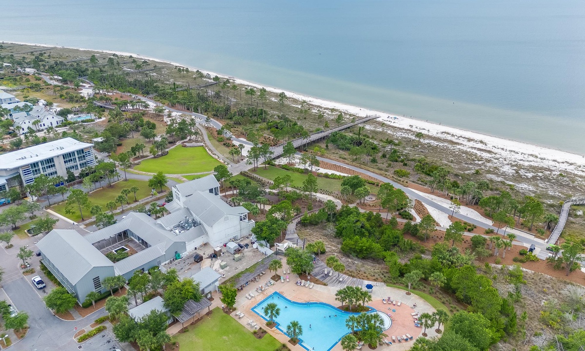 Fitness center, beach rentals, and a variety of dining options, including restaurants, an aesthetic boutique, a craft cocktail bar, and an ice cream shop.
