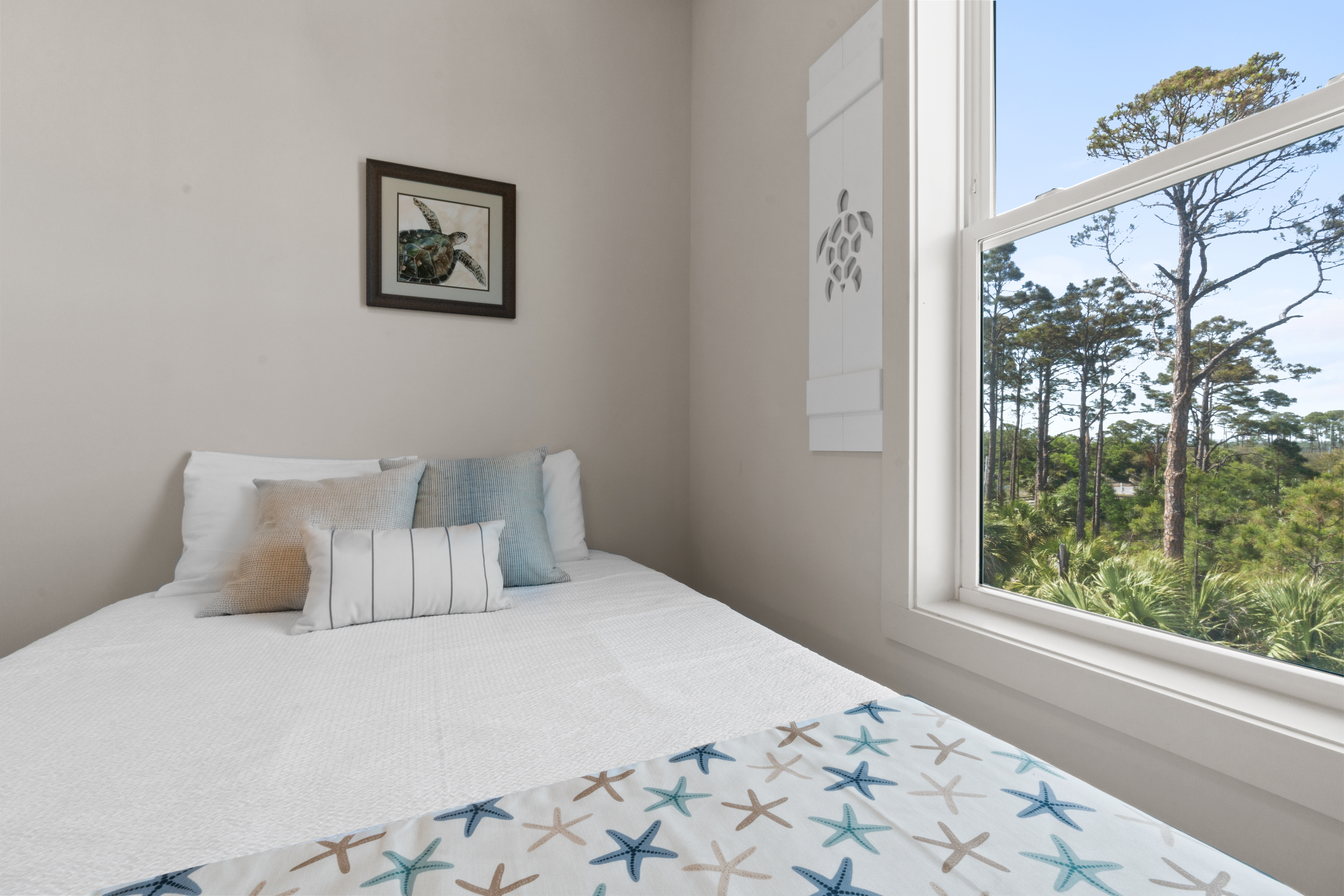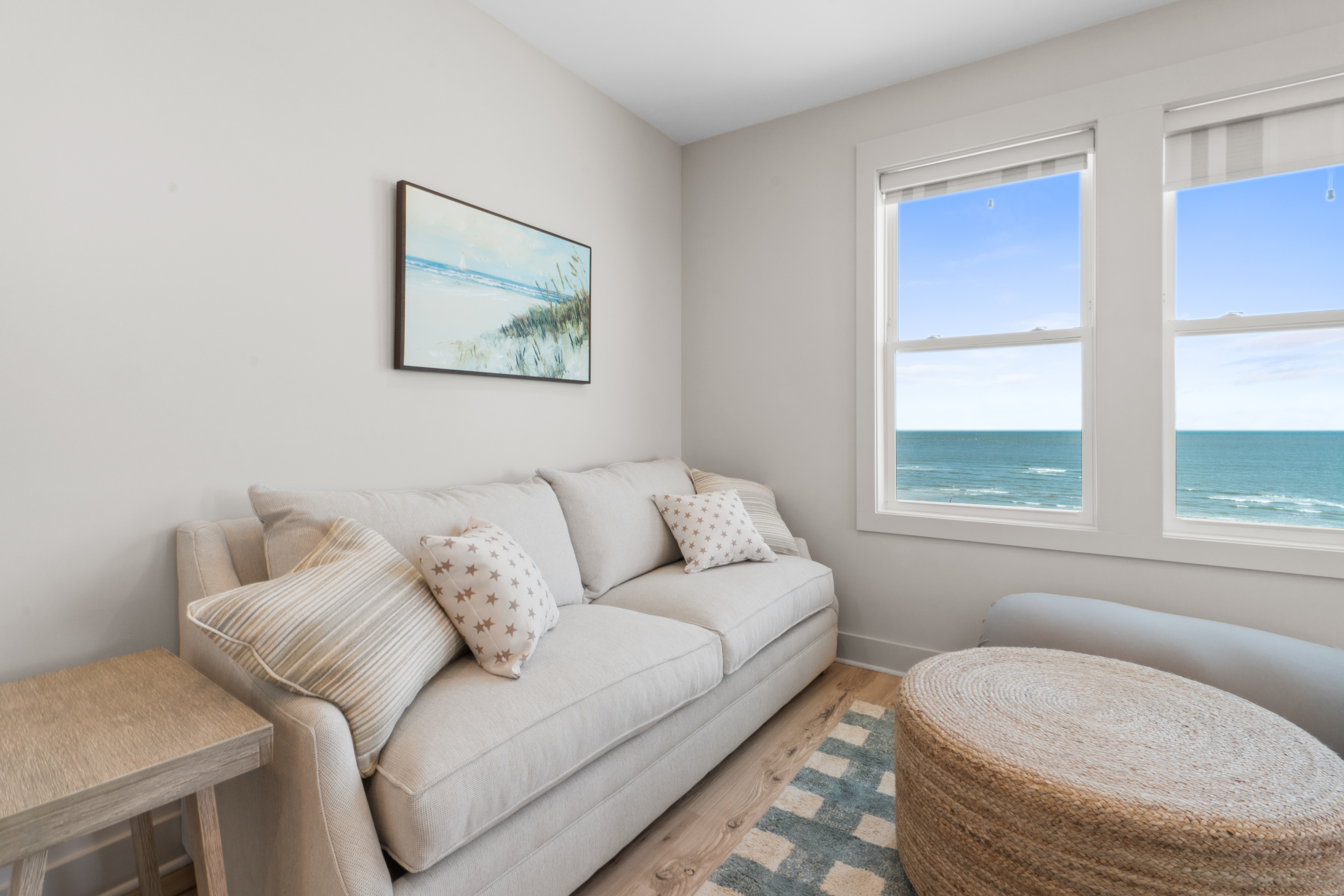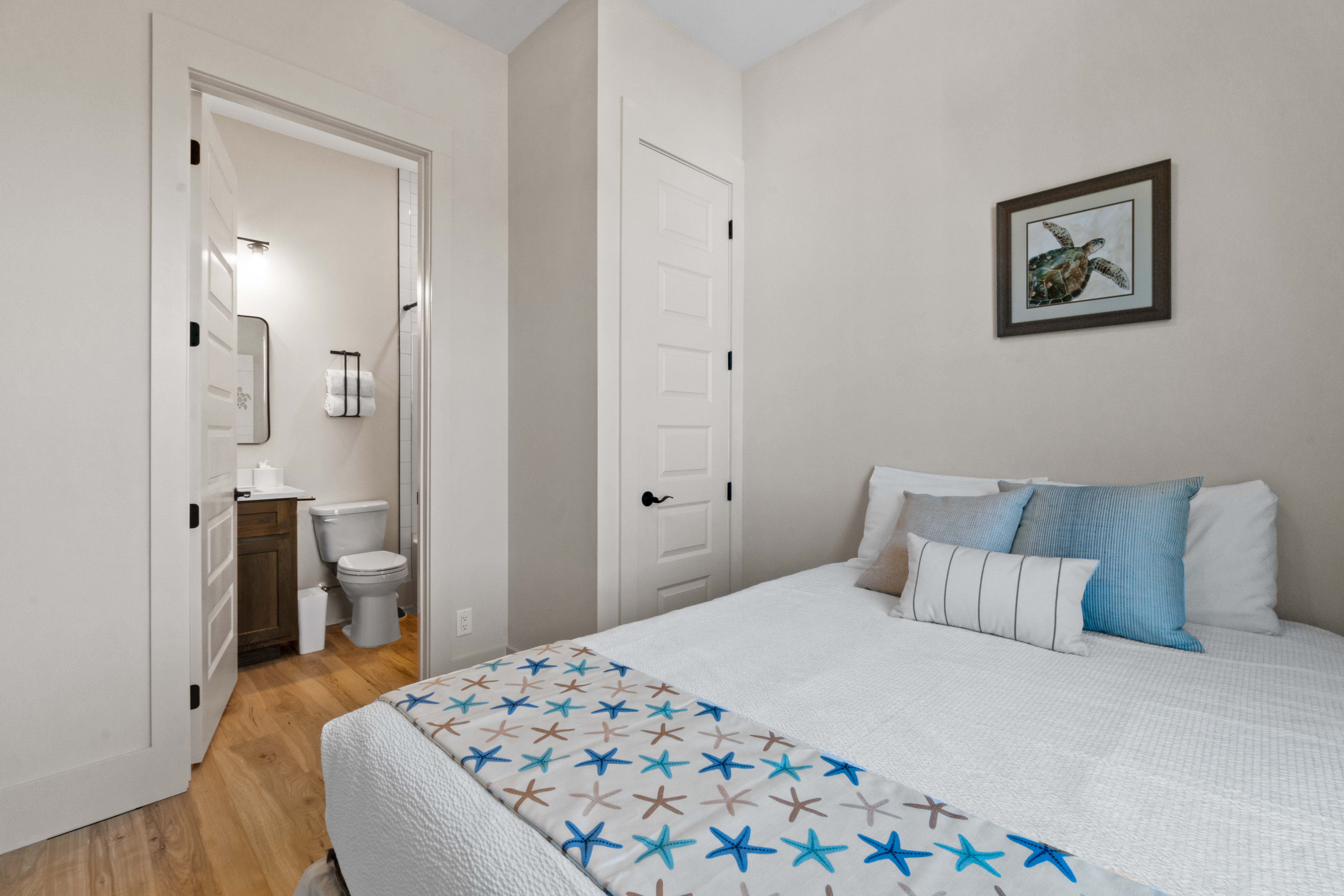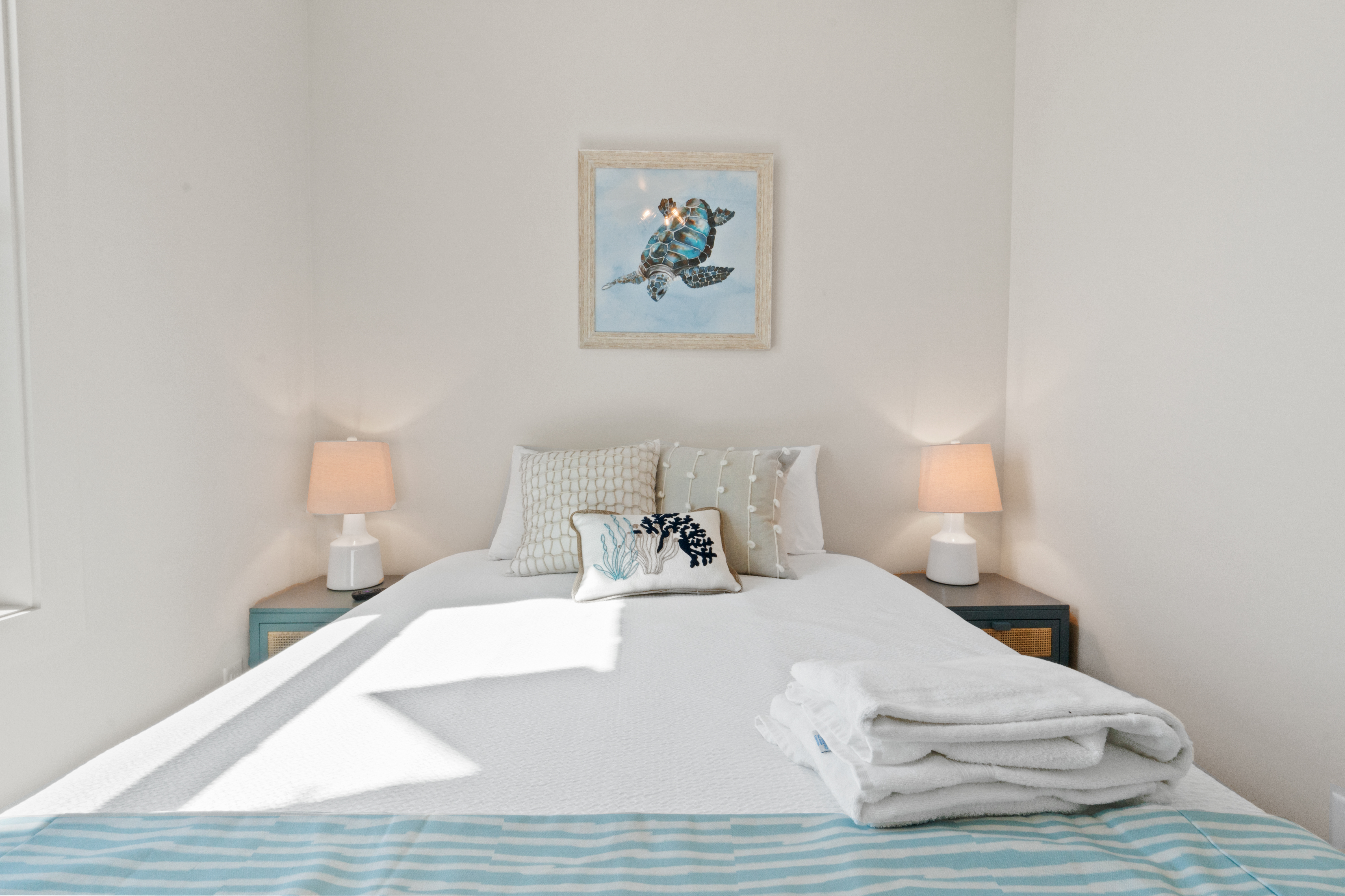 3 queen bedrooms, each thoughtfully designed with a calming coastal vibe