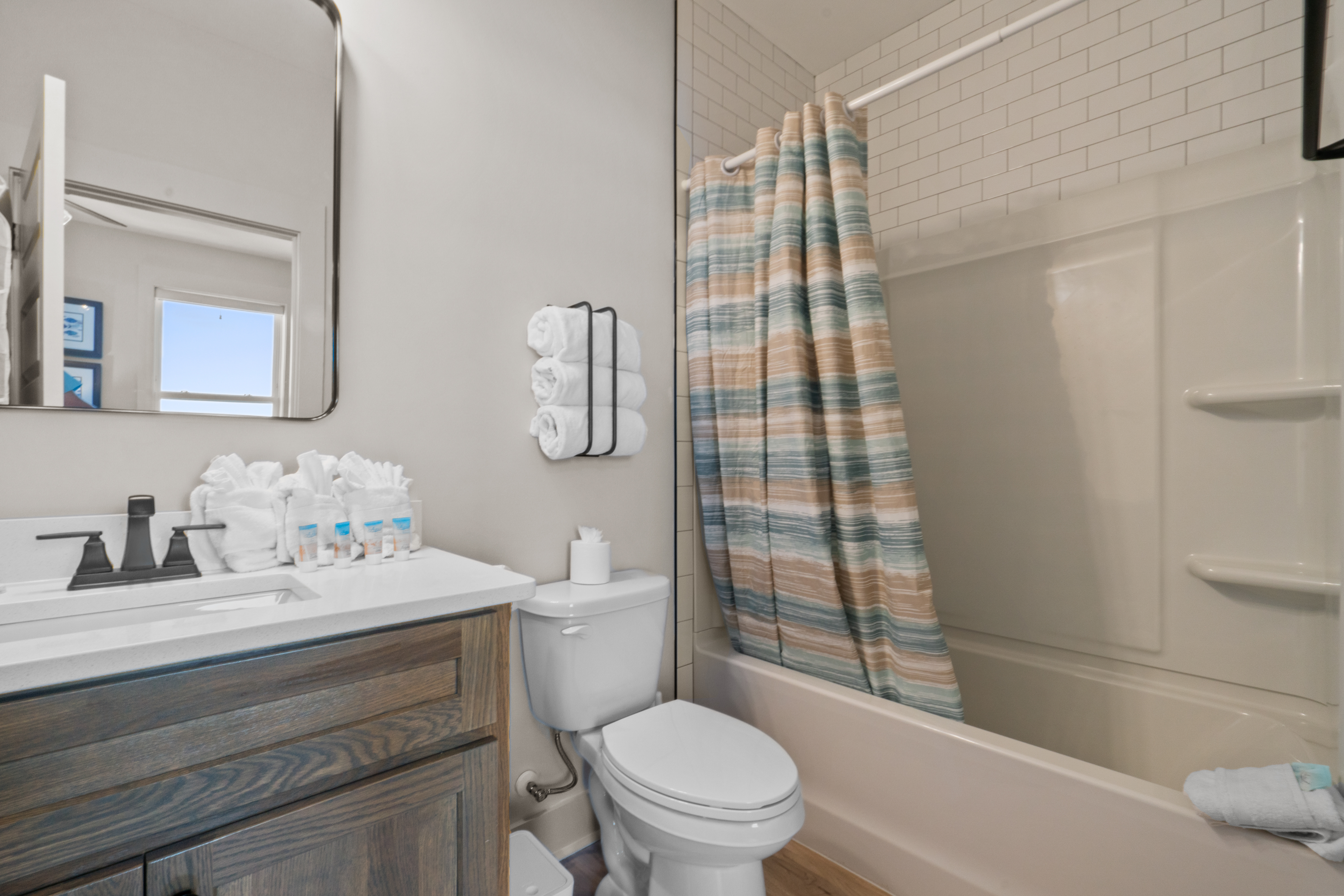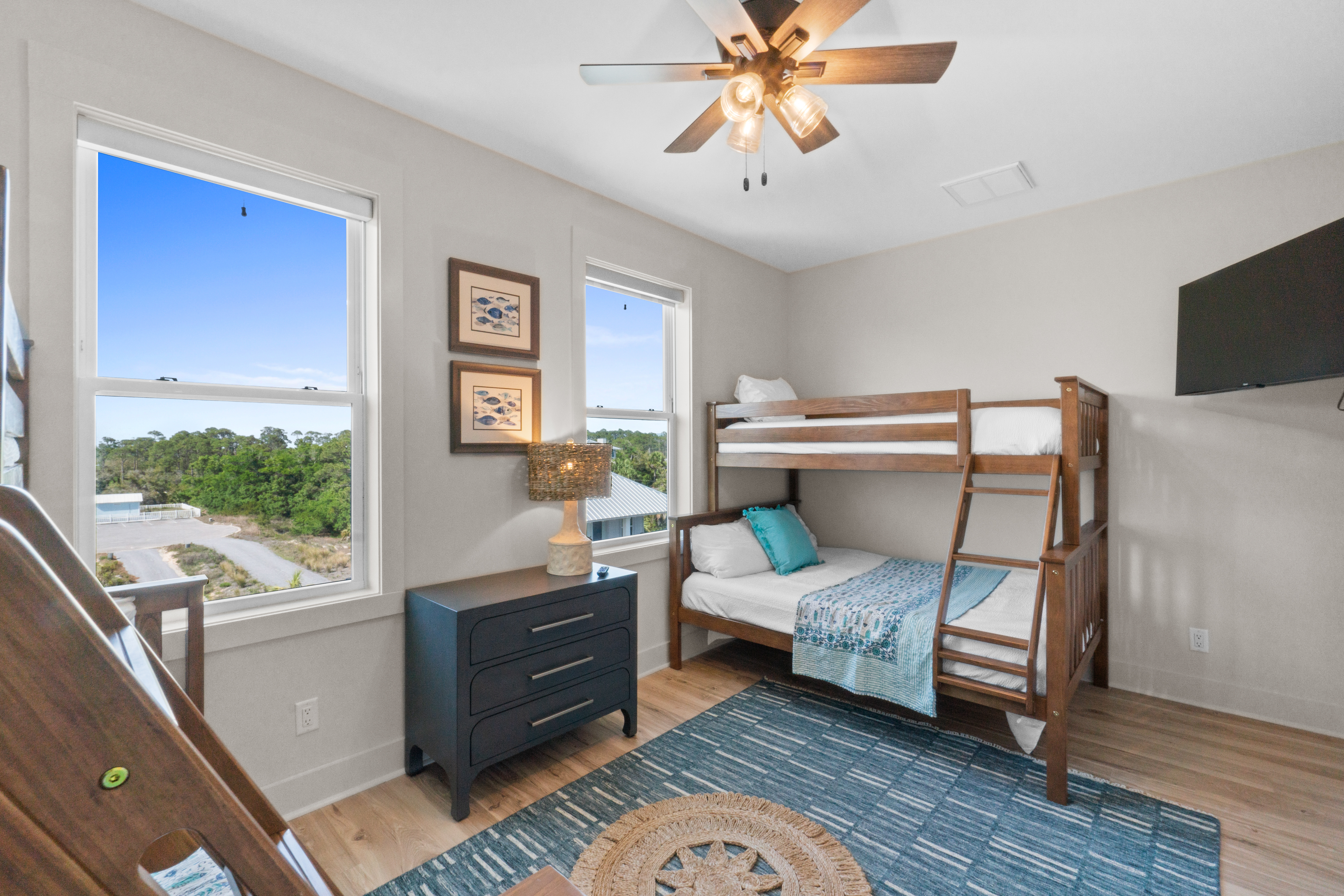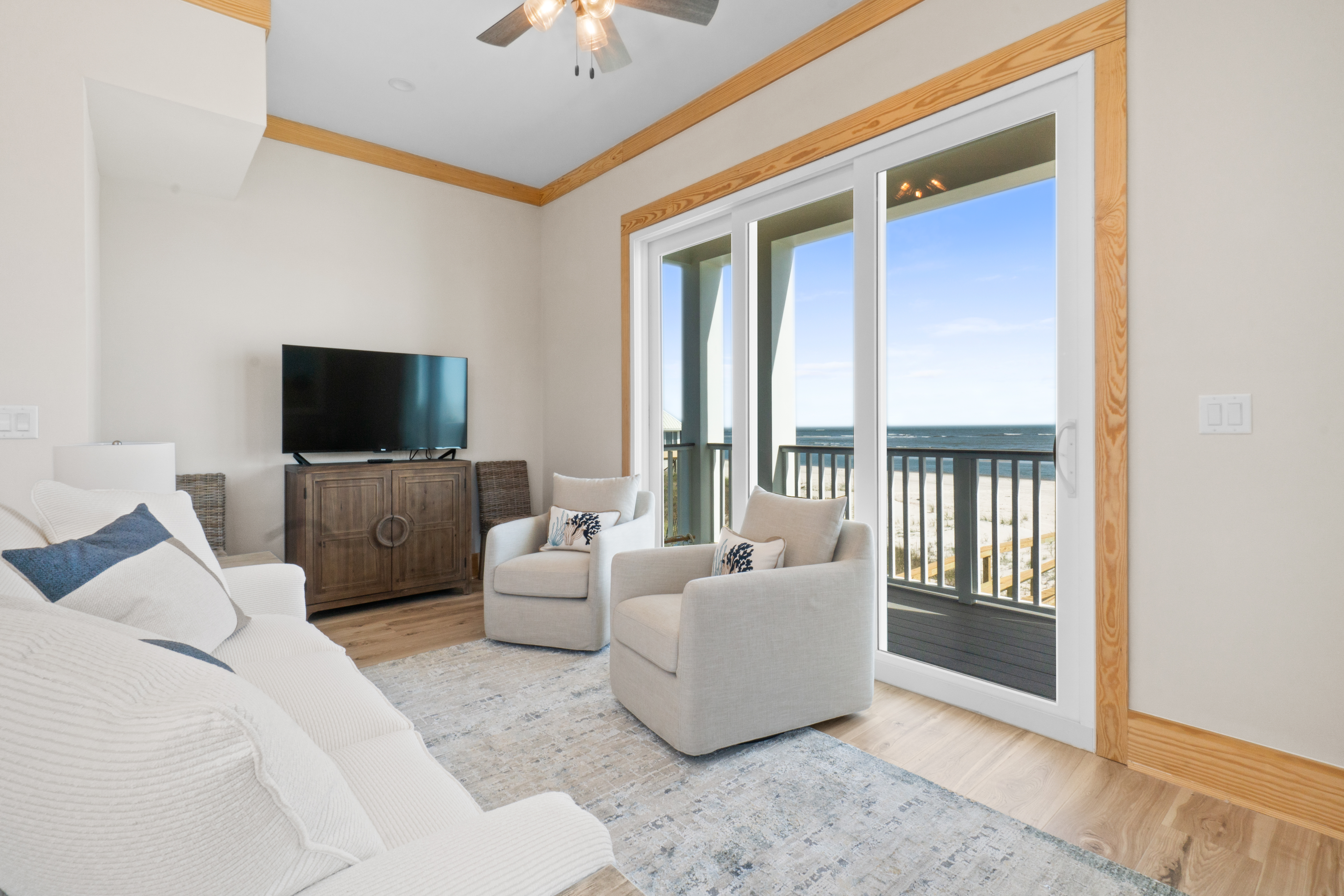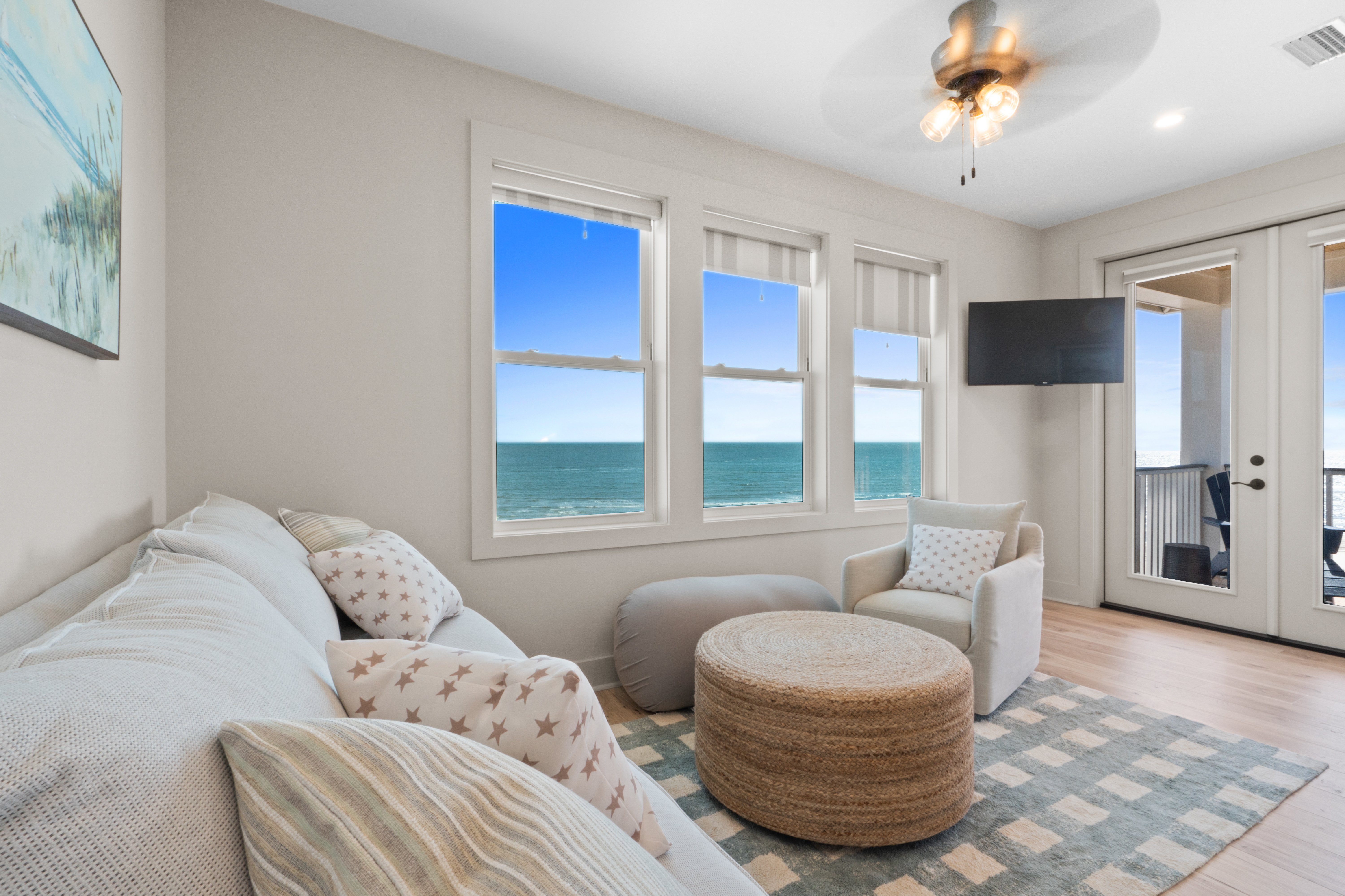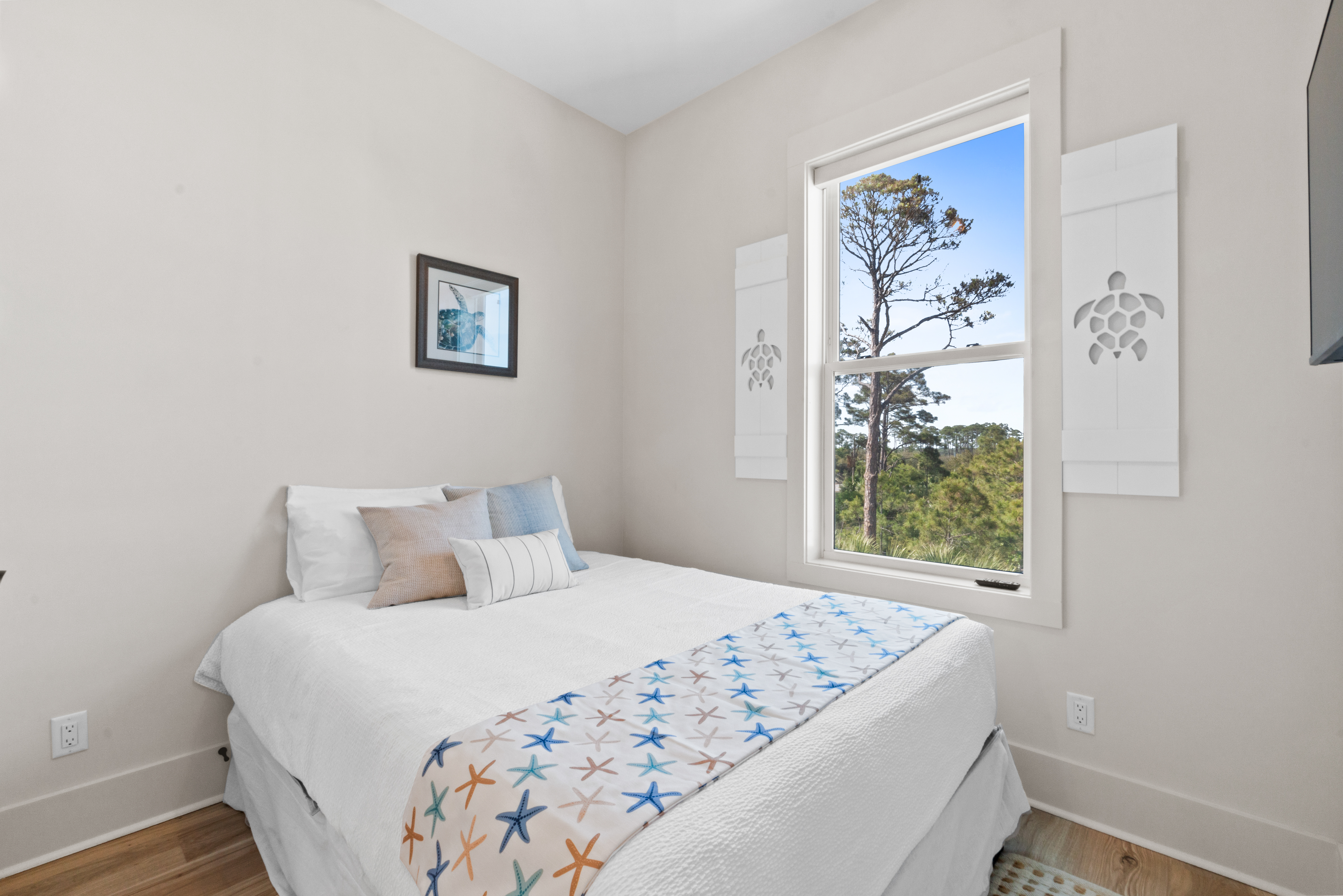 3 queen bedrooms, each thoughtfully designed with a calming coastal vibe