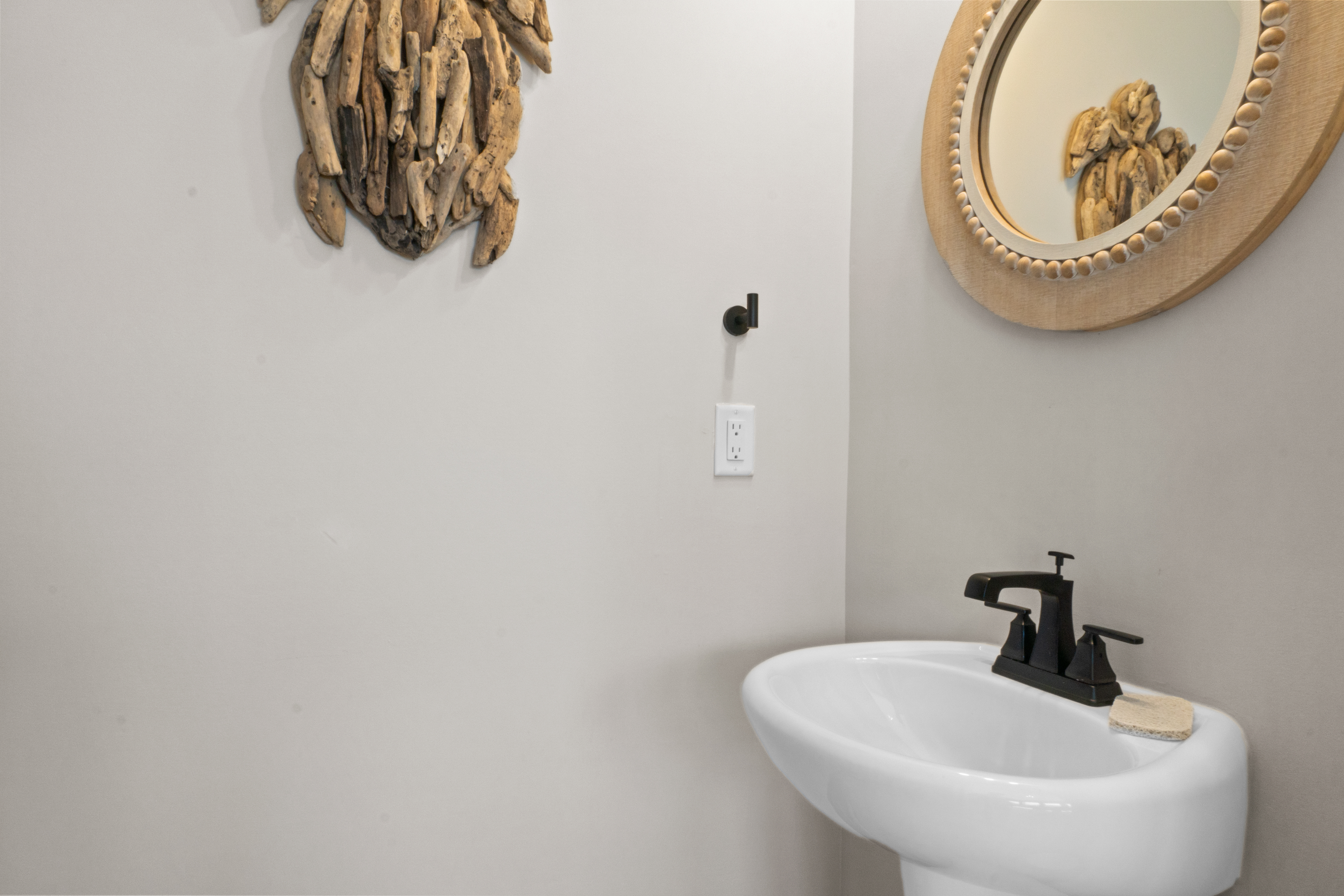 Main level: Powder room with pedestal sink and toilet