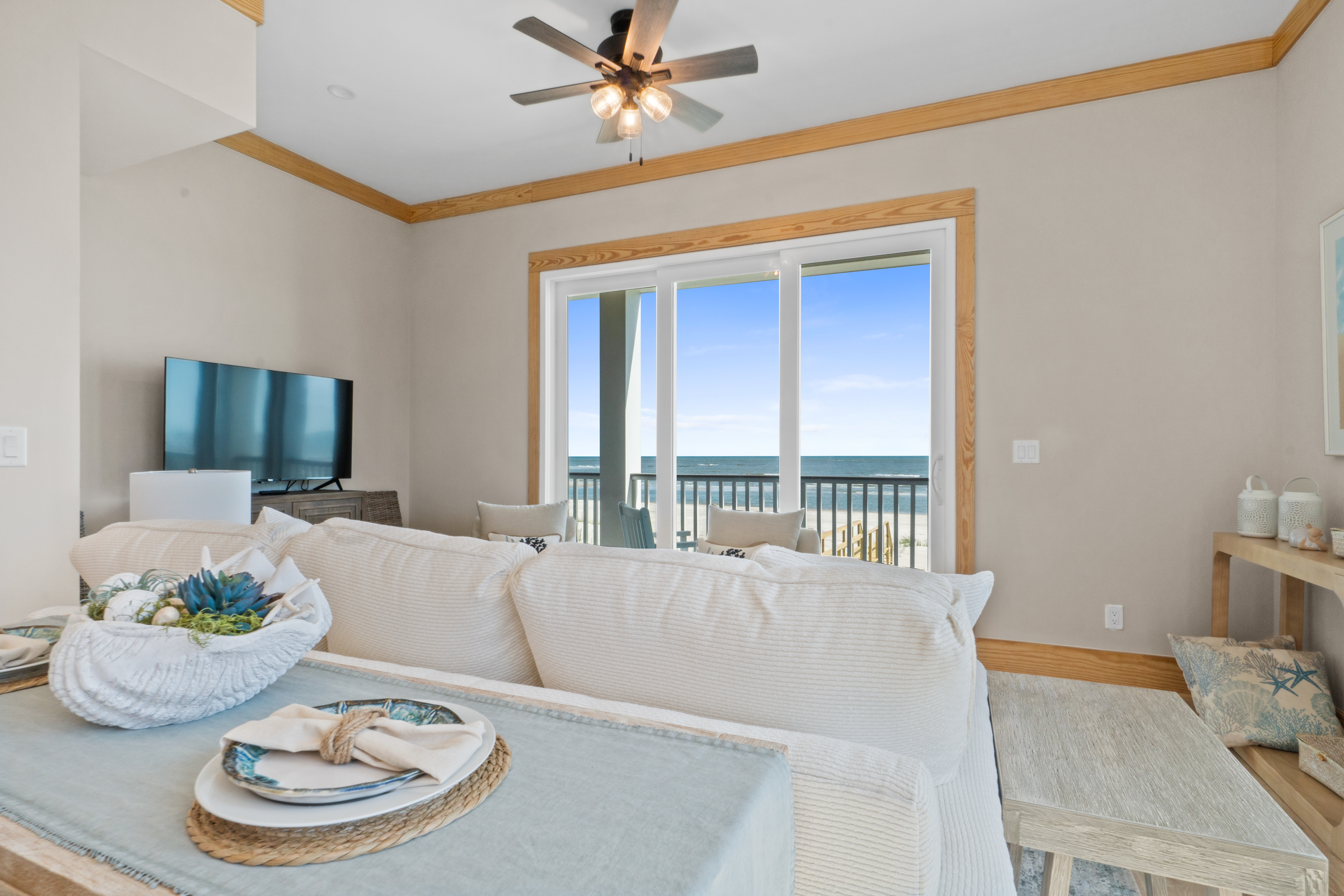 Each of the home's three expansive levels opens up to furnished decks, perfect for sipping your morning coffee, enjoying sunset cocktails, or dining alfresco with the sea breeze as your backdrop.