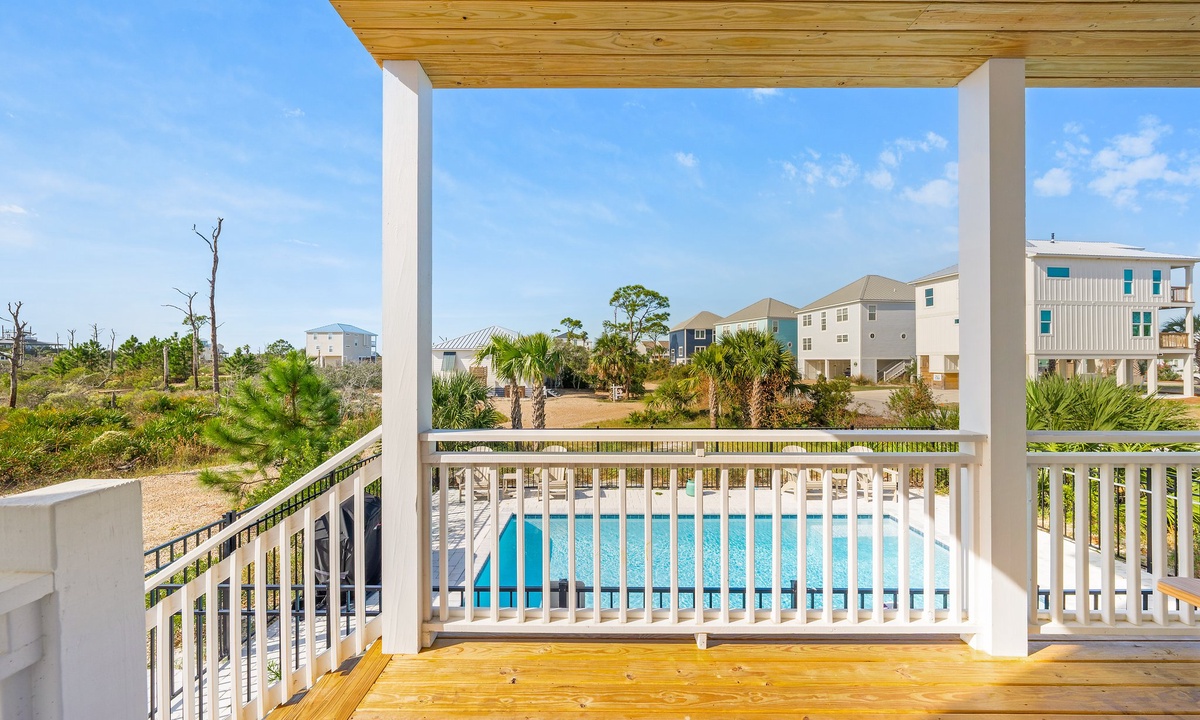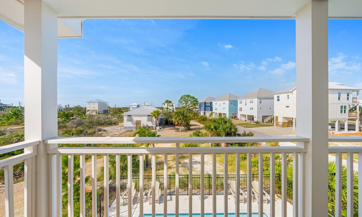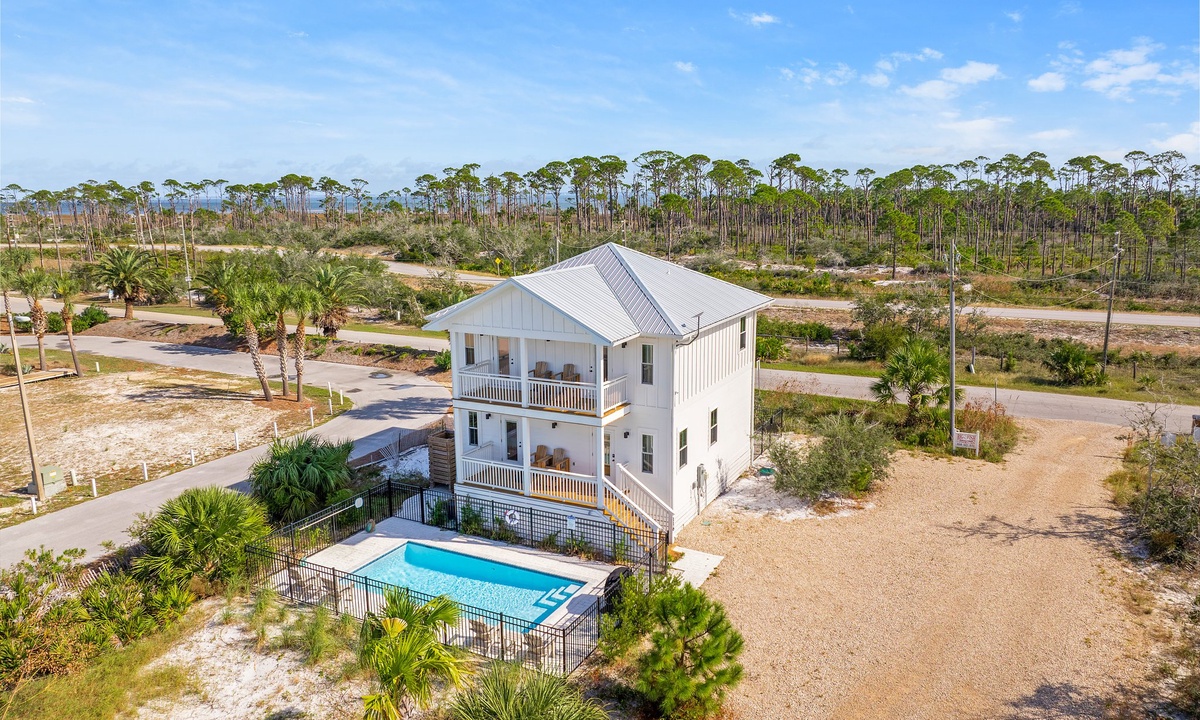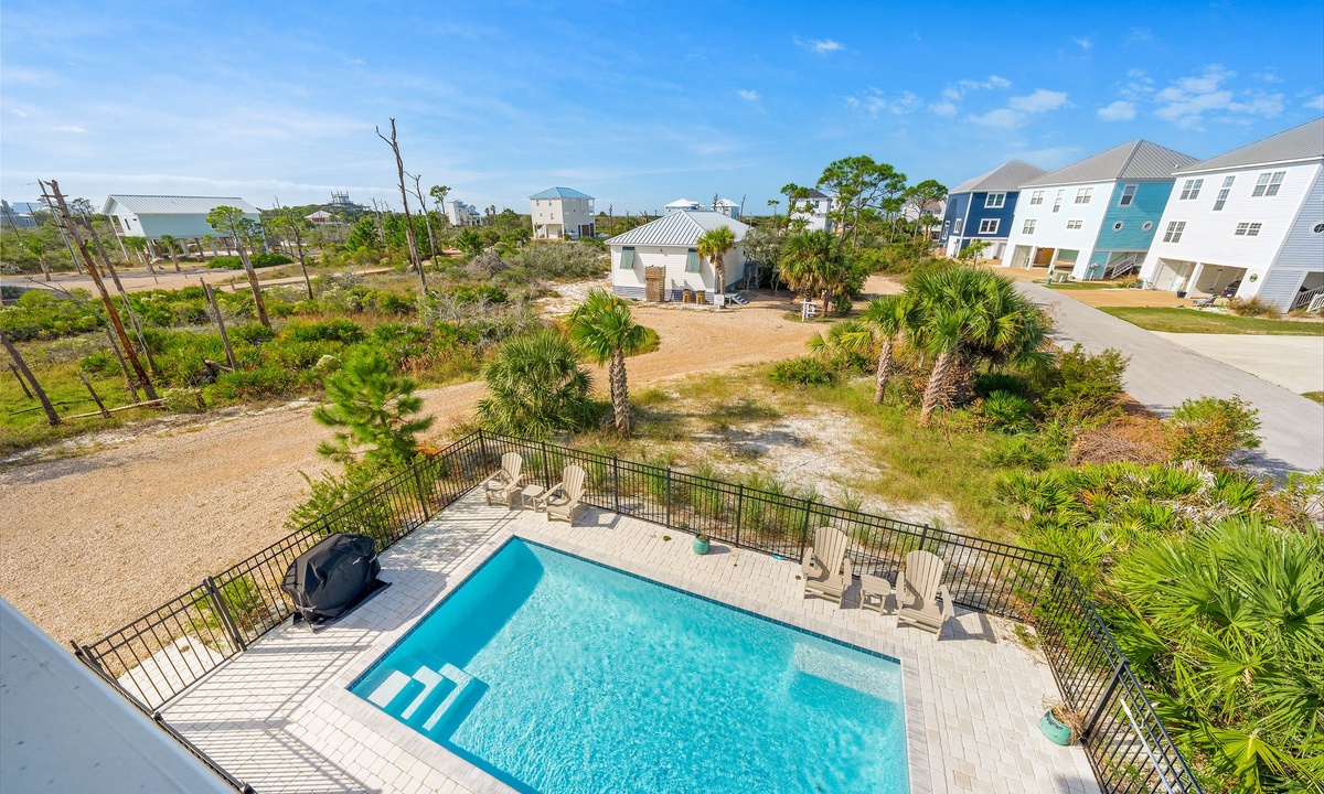 We booked this property for fall break (early Oct) and it was absolutely wonderful. The Cape San Blas area is quiet and secluded. This rental is in a great location near the main gate of St Joseph Peninsula State Park. The house sits off the beach, but has a private gravel path to the boardwalk over to the beach. The pool is intelligently located to allow the water to get warmed up by the sun daily. The pool deck has sufficient room and also includes an outdoor shower, grill and hose to wash off sandy toes. Both the front and back of the house have decks/balconies on the main and 2nd floors. There is a small fenced area for your fury friends to do their business. The main floor has a master bedroom with en suite bathroom, living area, laundry room, and kitchen/dining area. The 2nd floor features another bedroom with ensuite bathroom, two bedrooms with shared bathroom, and a small living space with pull out couch. The house was wonderful, the Cape is beautiful, and the communiity is full of active, friendly residents. This was a great choice for our family vacation.