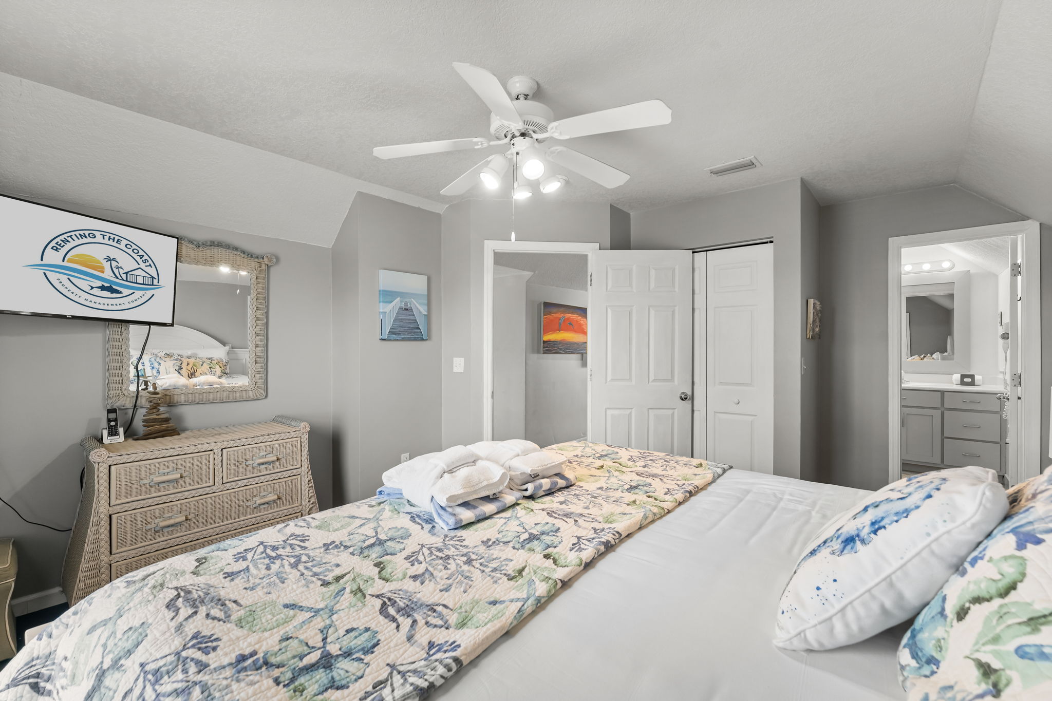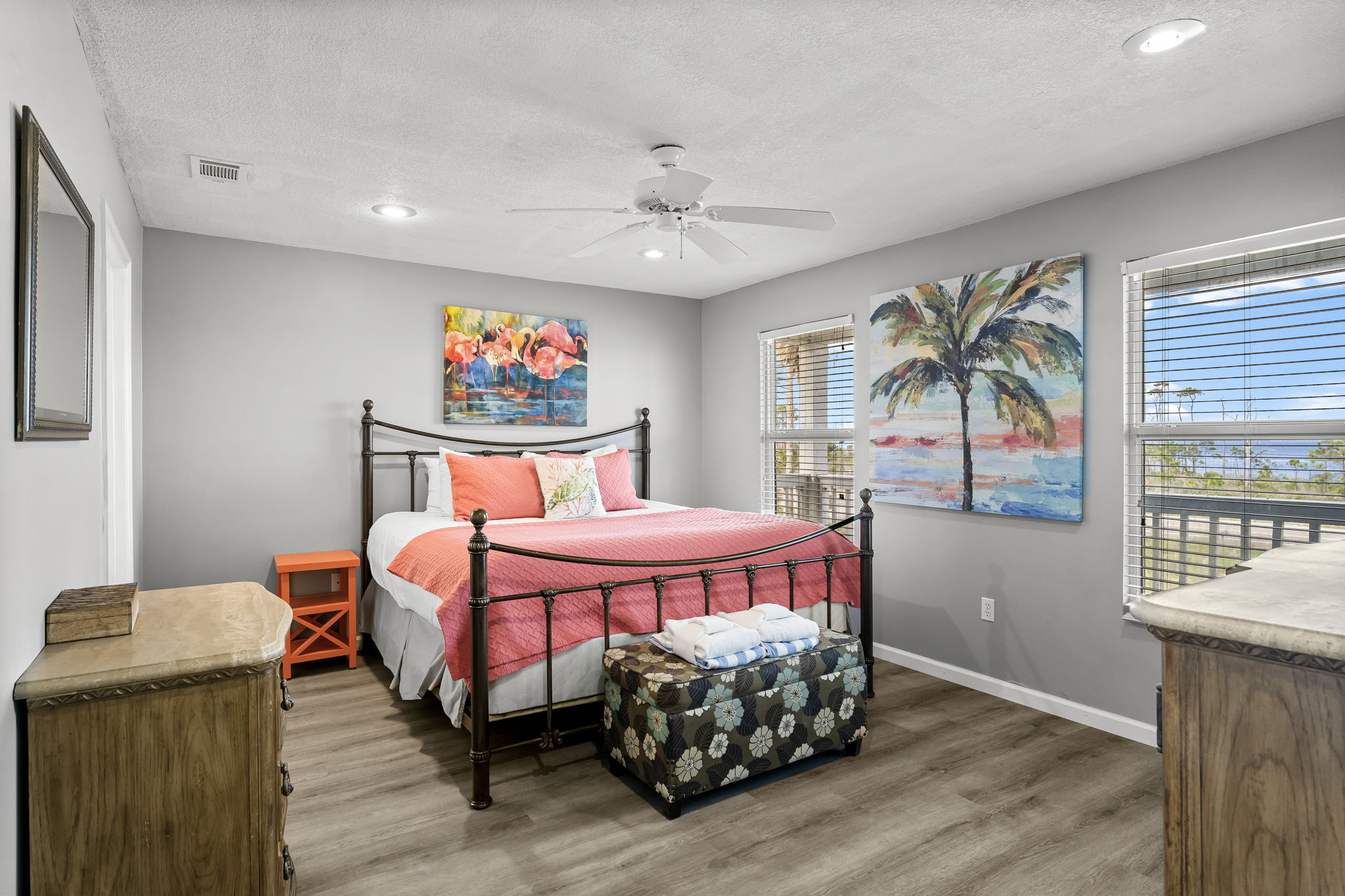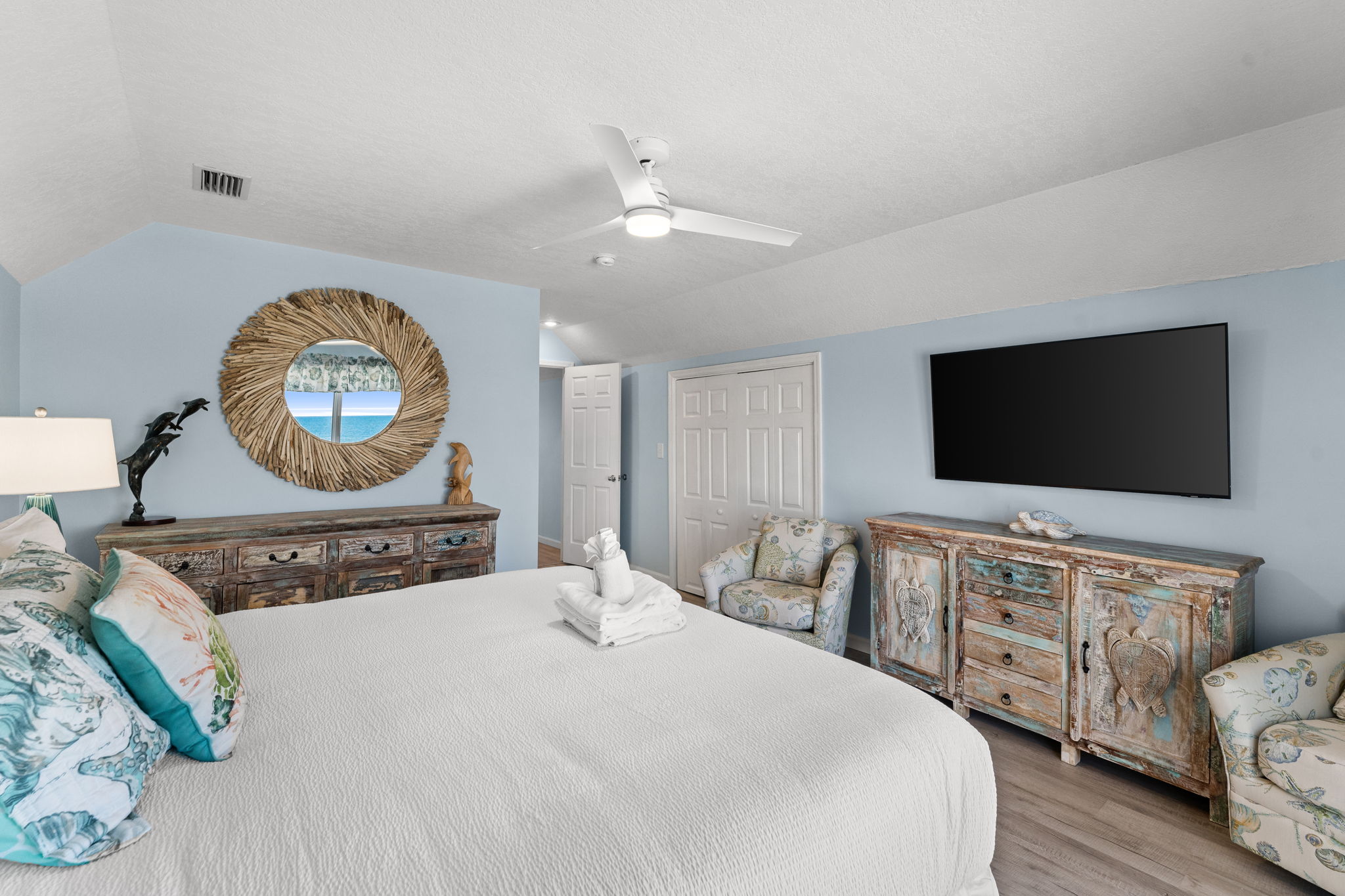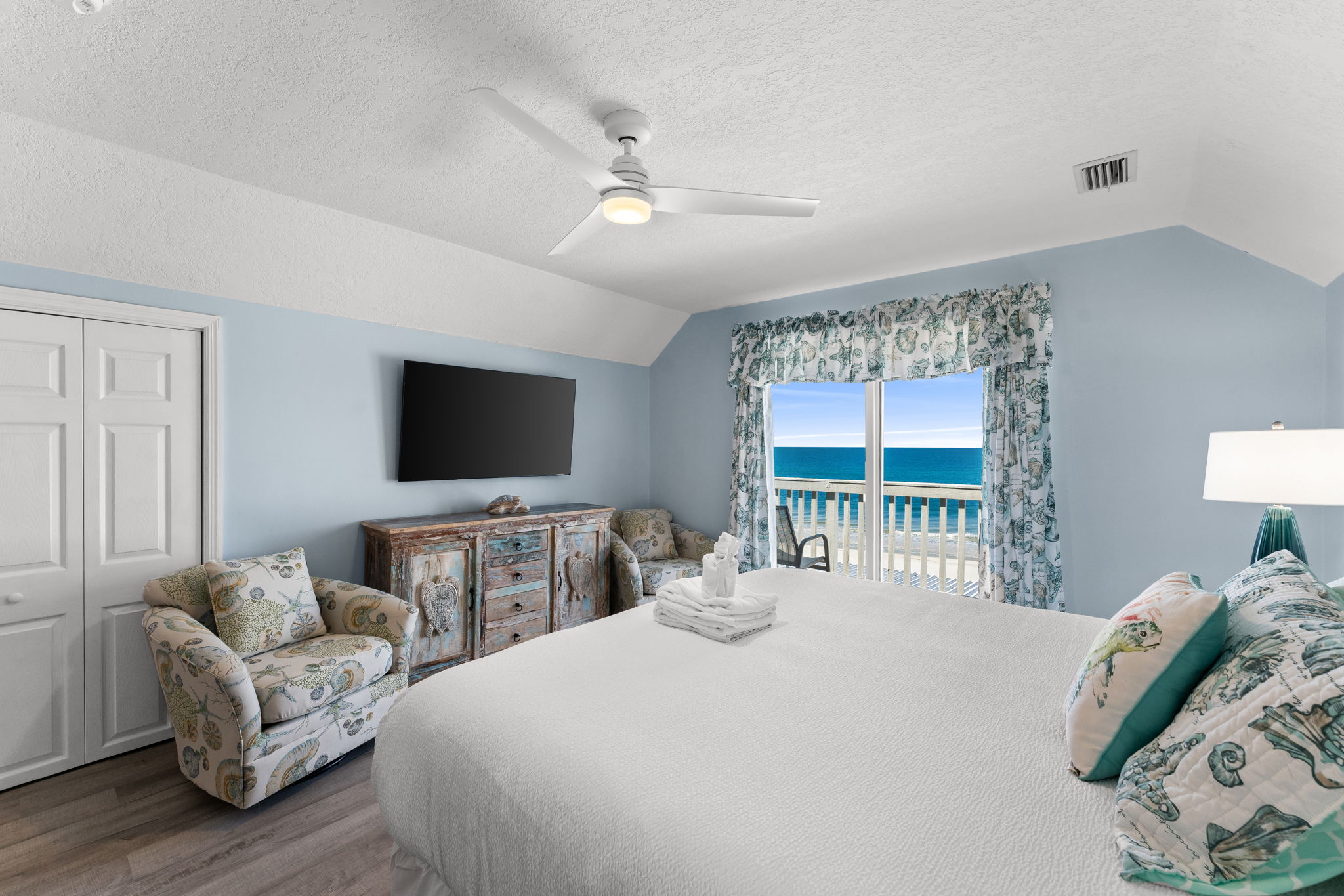 - King Primary with breathtaking Gulf views, private balcony, and beautiful en suite bath