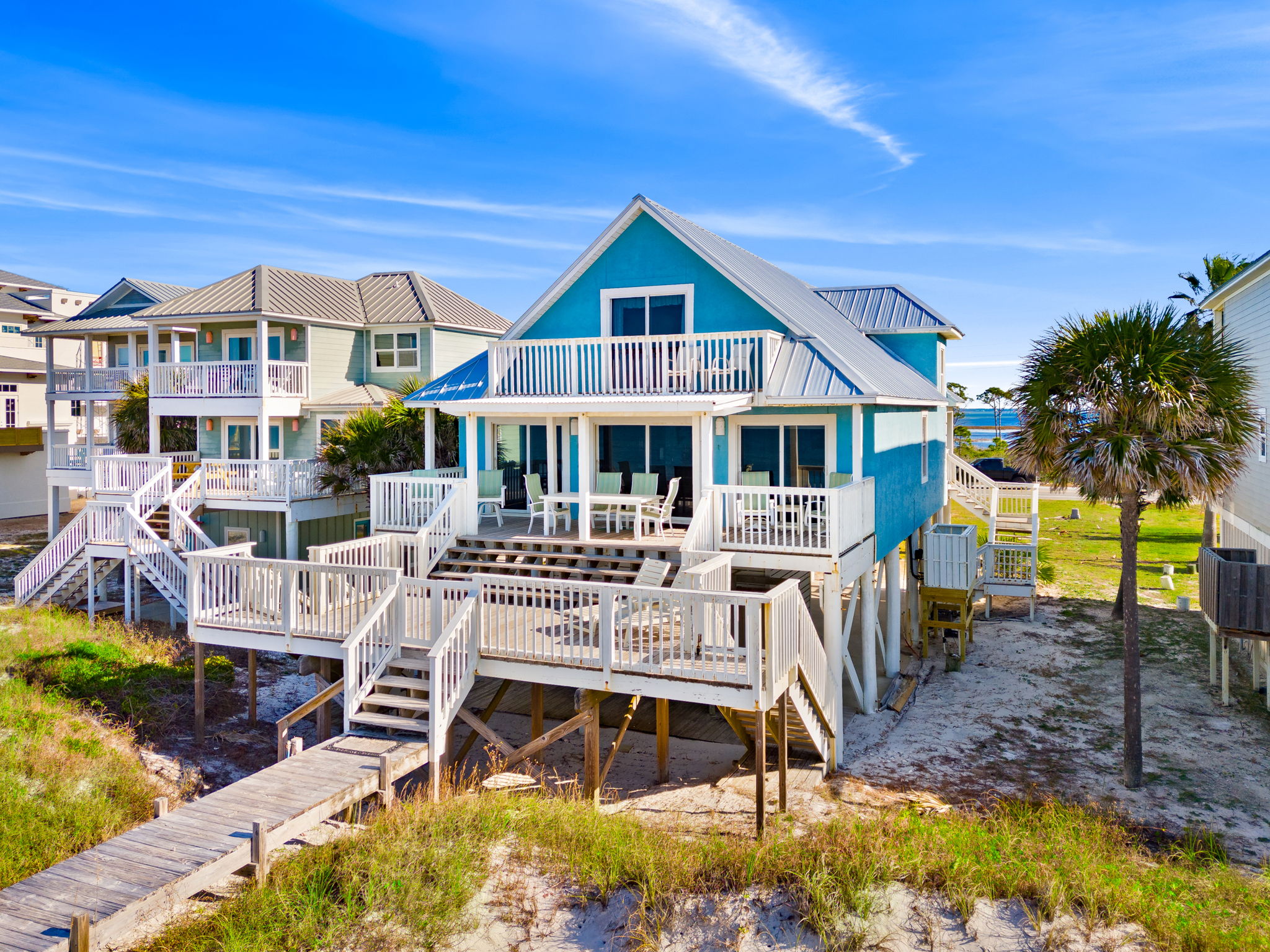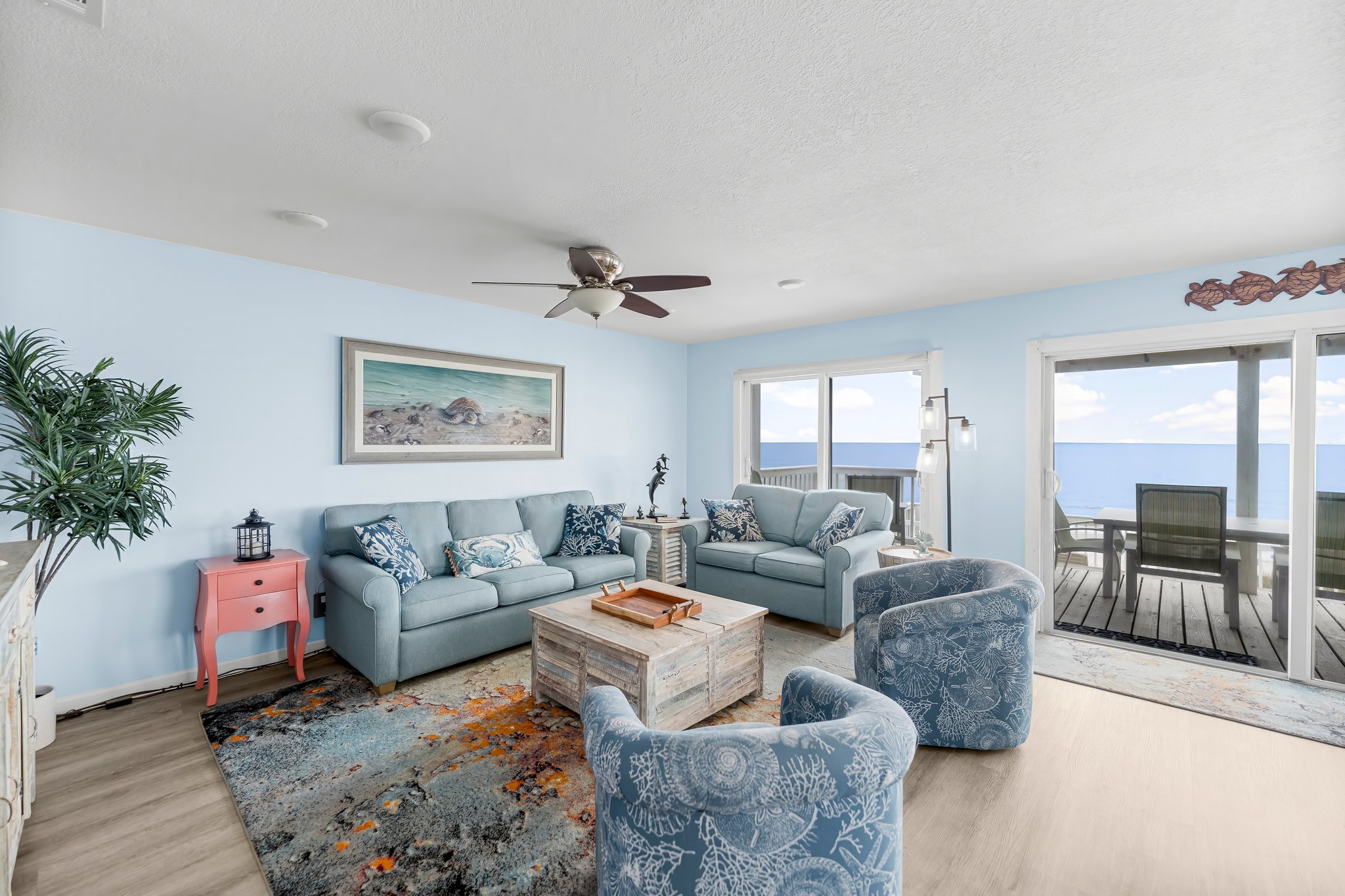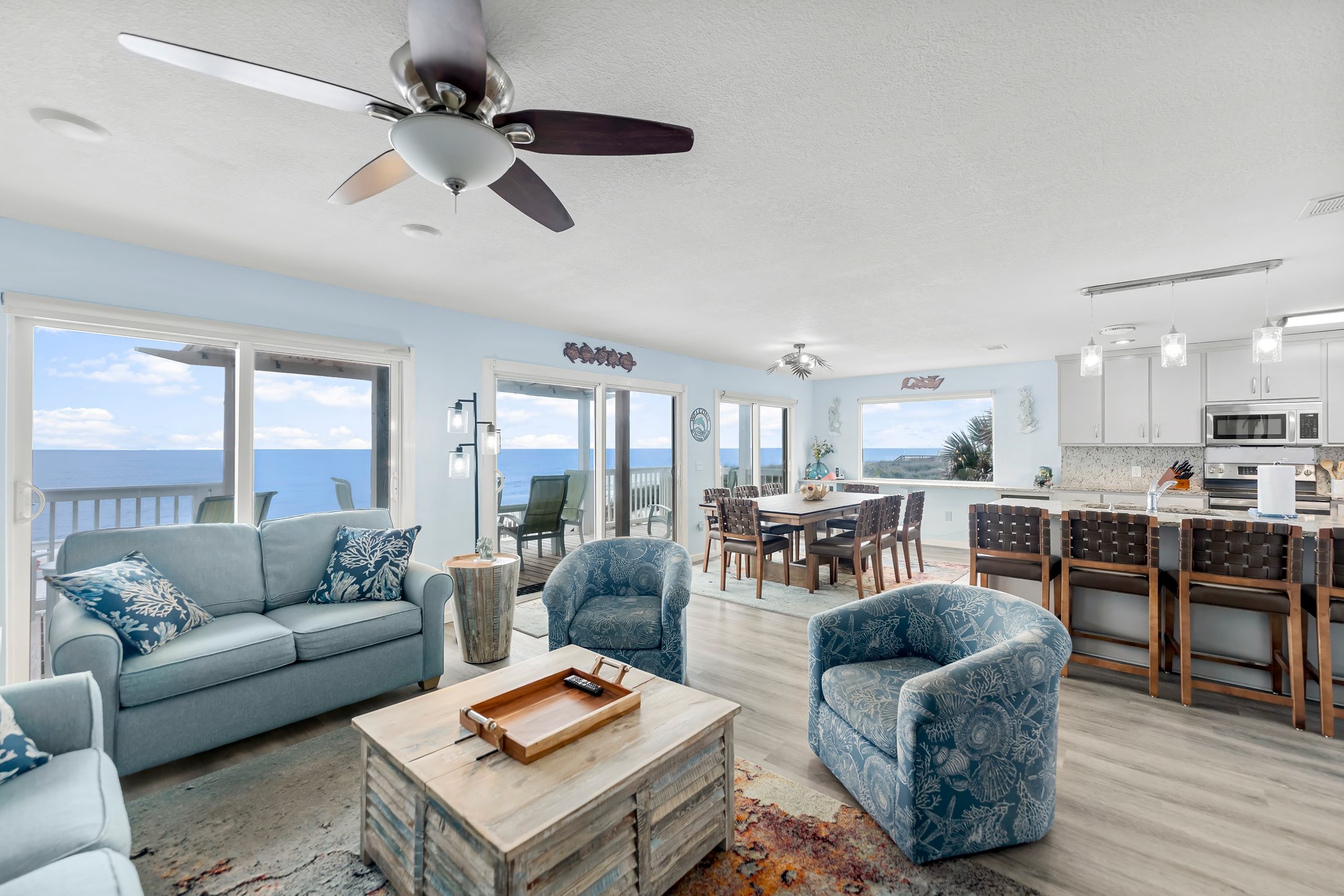 - Three sliding doors to the main beachfront deck
