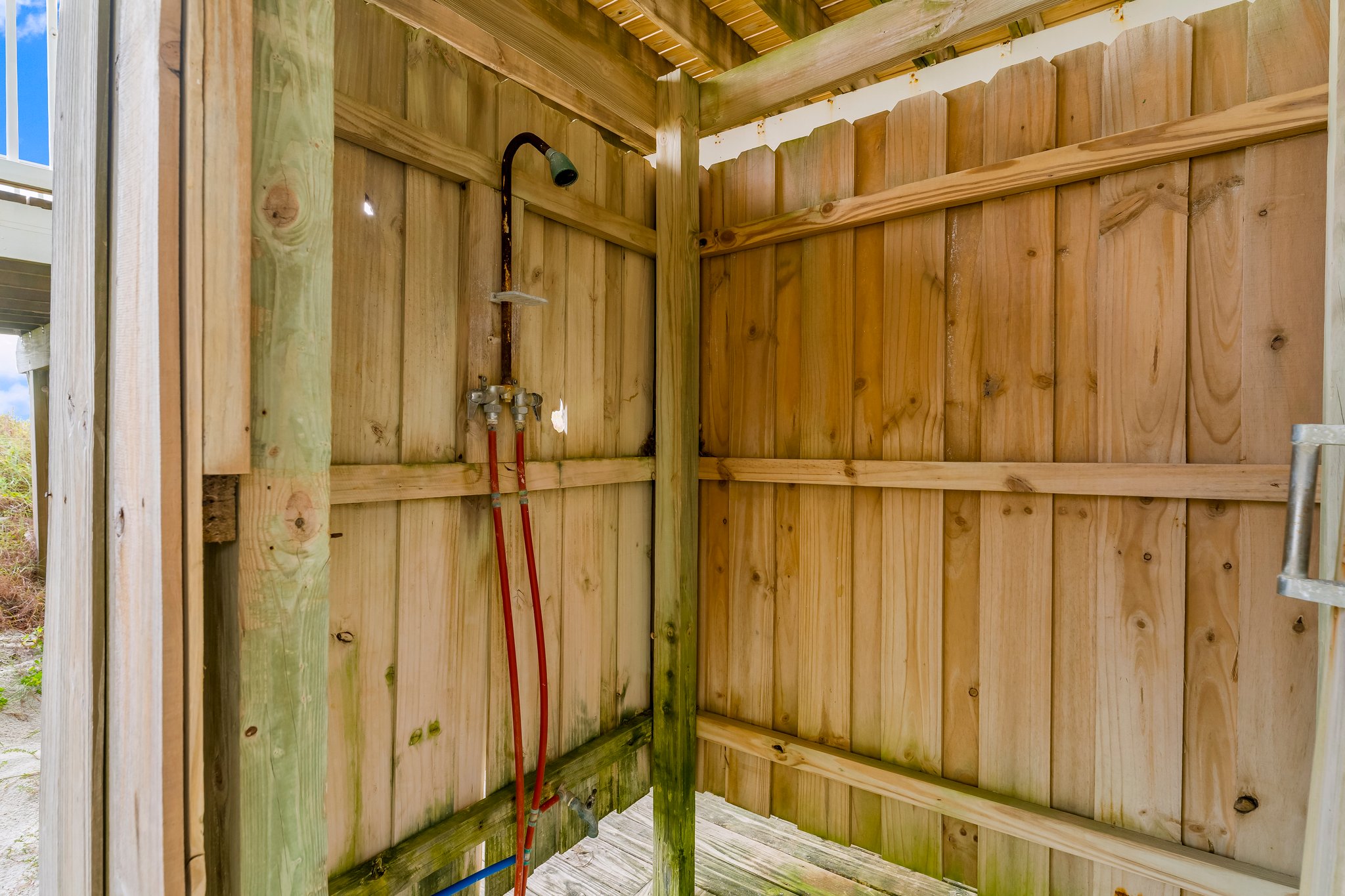- Outdoor shower features a convenient foot and pet wash station.