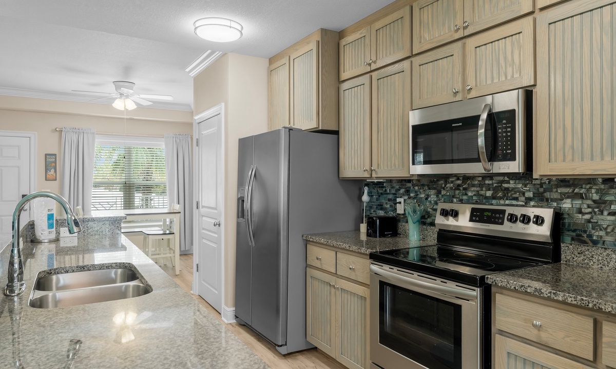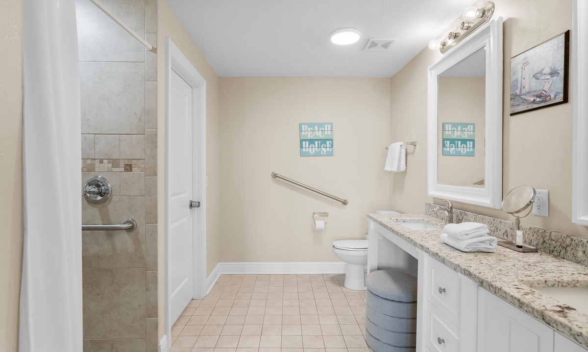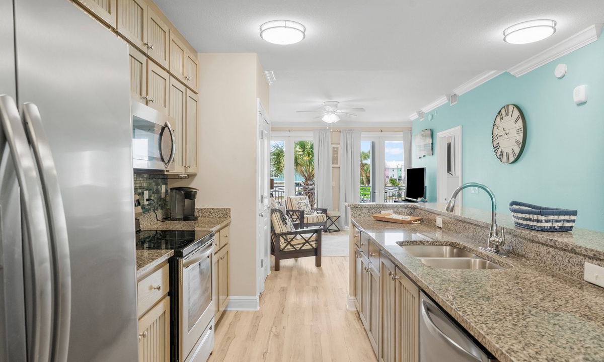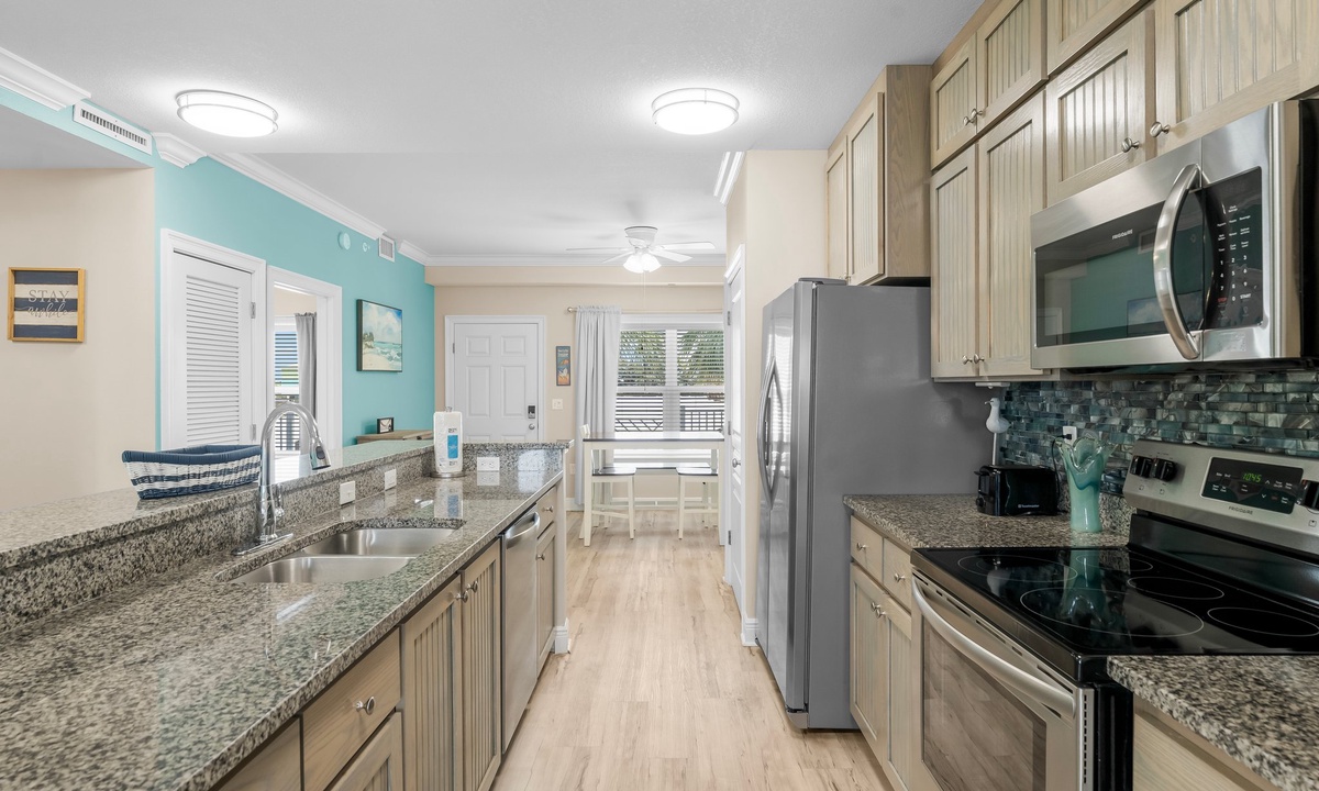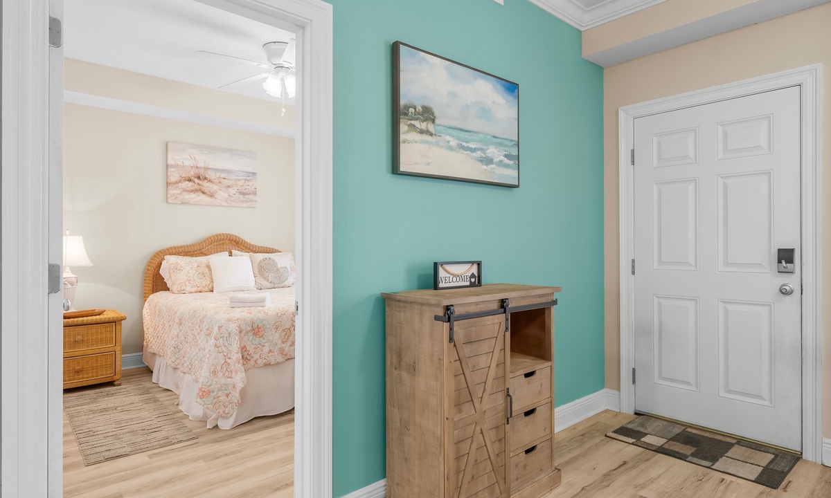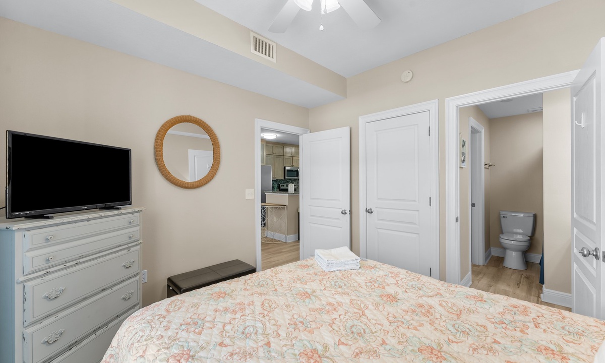 The two bedrooms exude tranquility, with the master bedroom featuring a king-size bed, ensuite bathroom, and a private balcony overlooking the Gulf. The second bedroom offers a cozy queen-size bed and convenient access to the second bathroom.