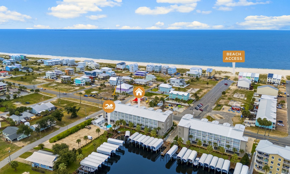 Enjoy the comfort of a master suite with a private balcony and a guest bedroom, both thoughtfully designed. Dive into relaxation with a pool and hot tub. This condo seamlessly combines beach living, boating convenience, and resort-style amenities for an unforgettable Gulf Coast experience.