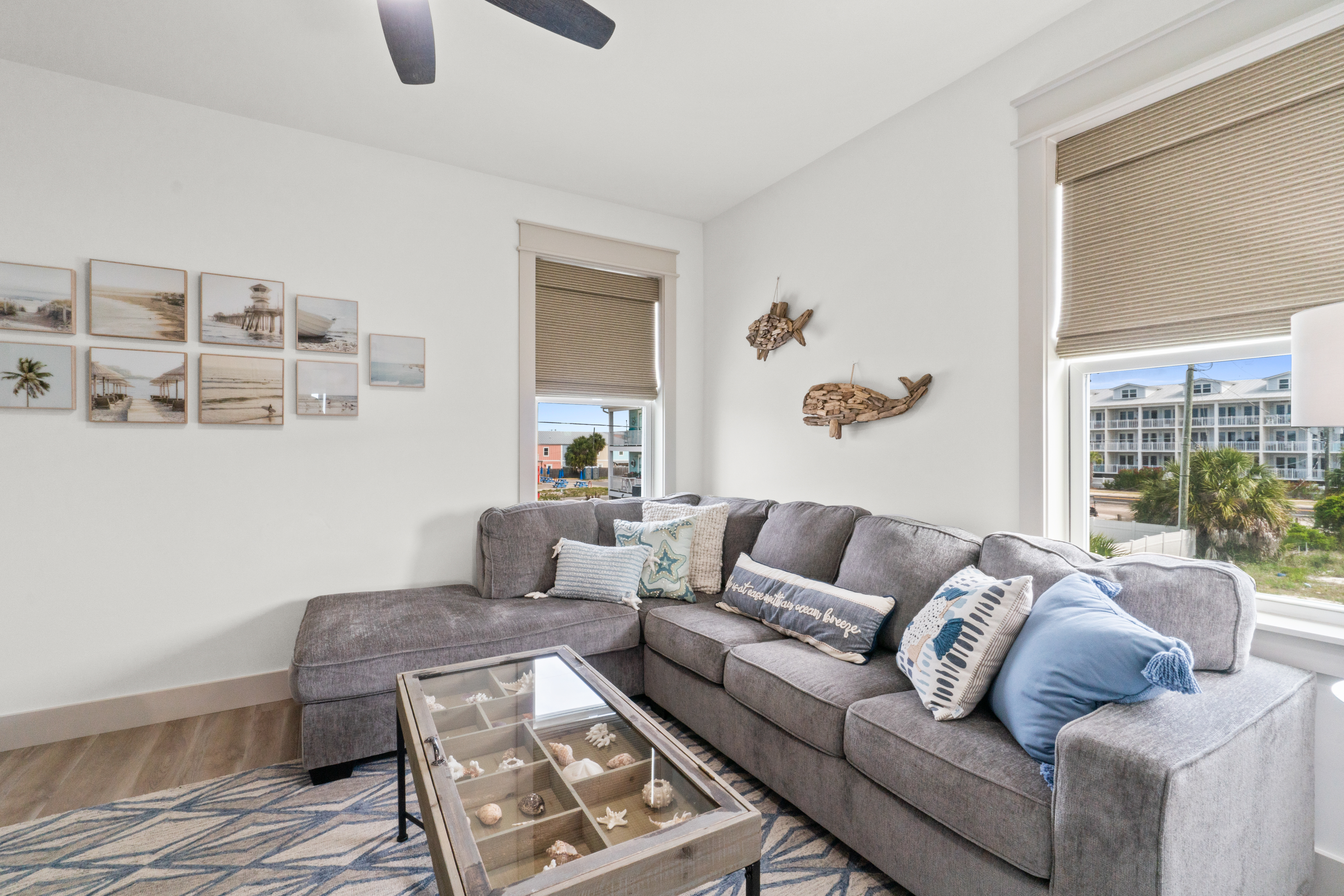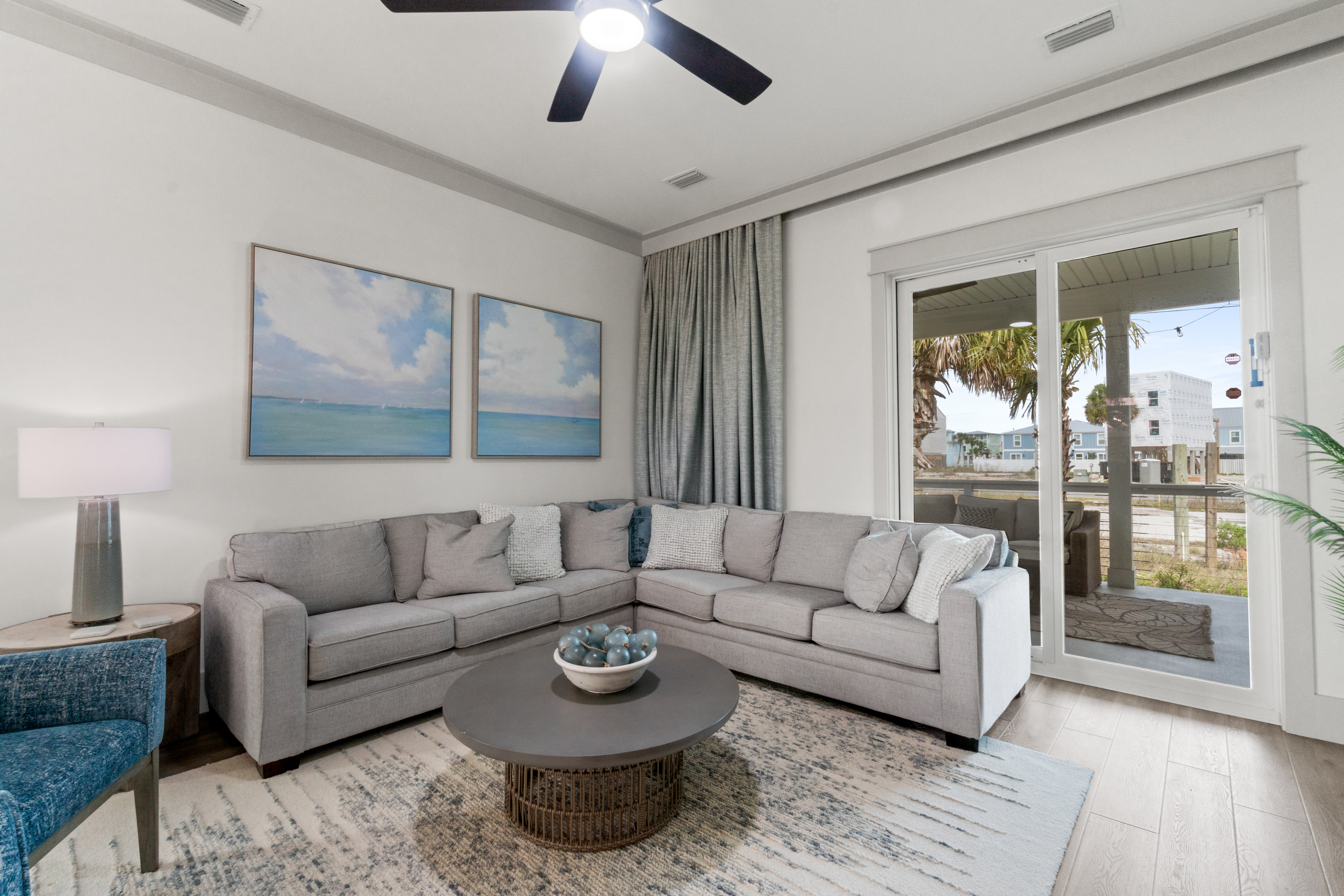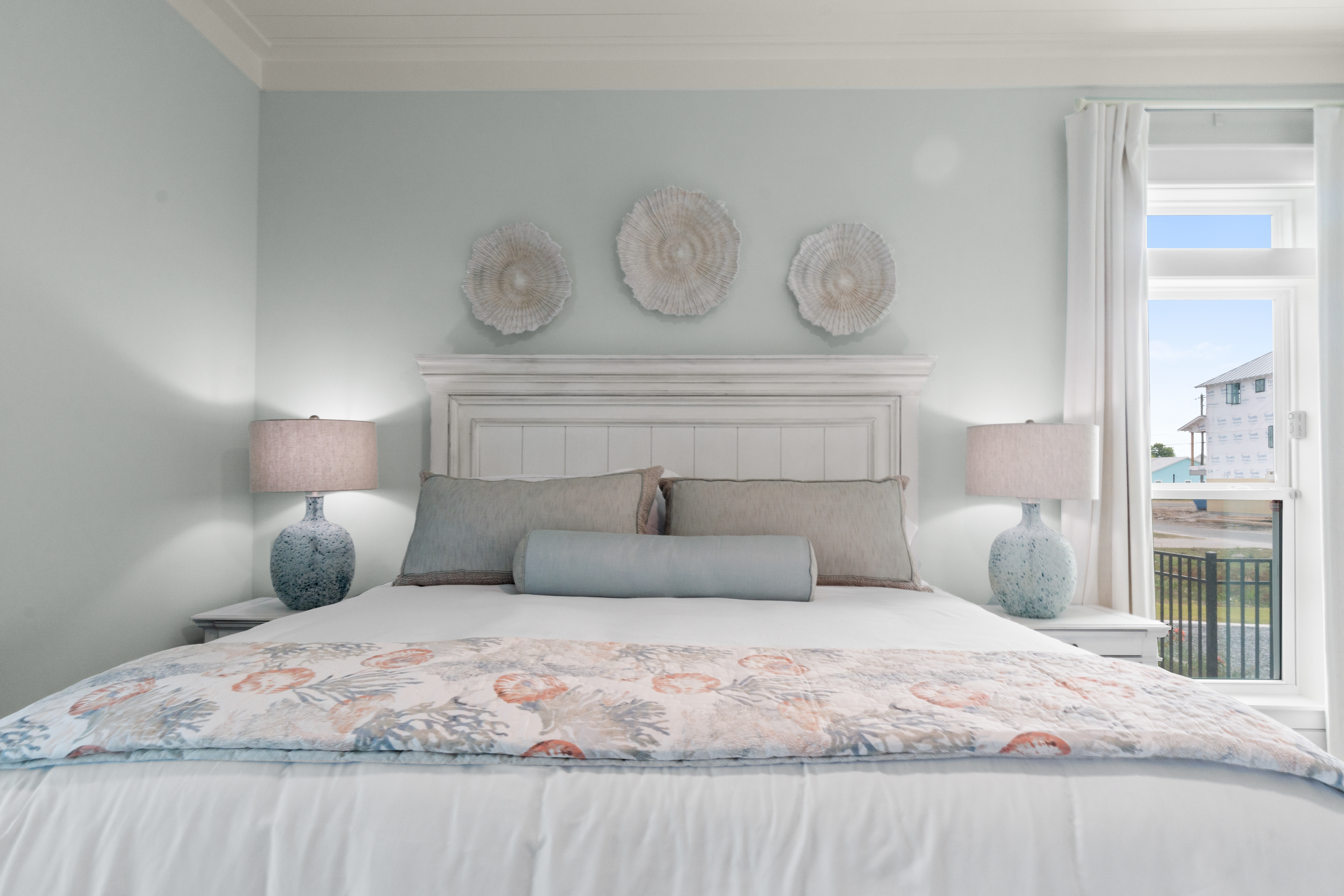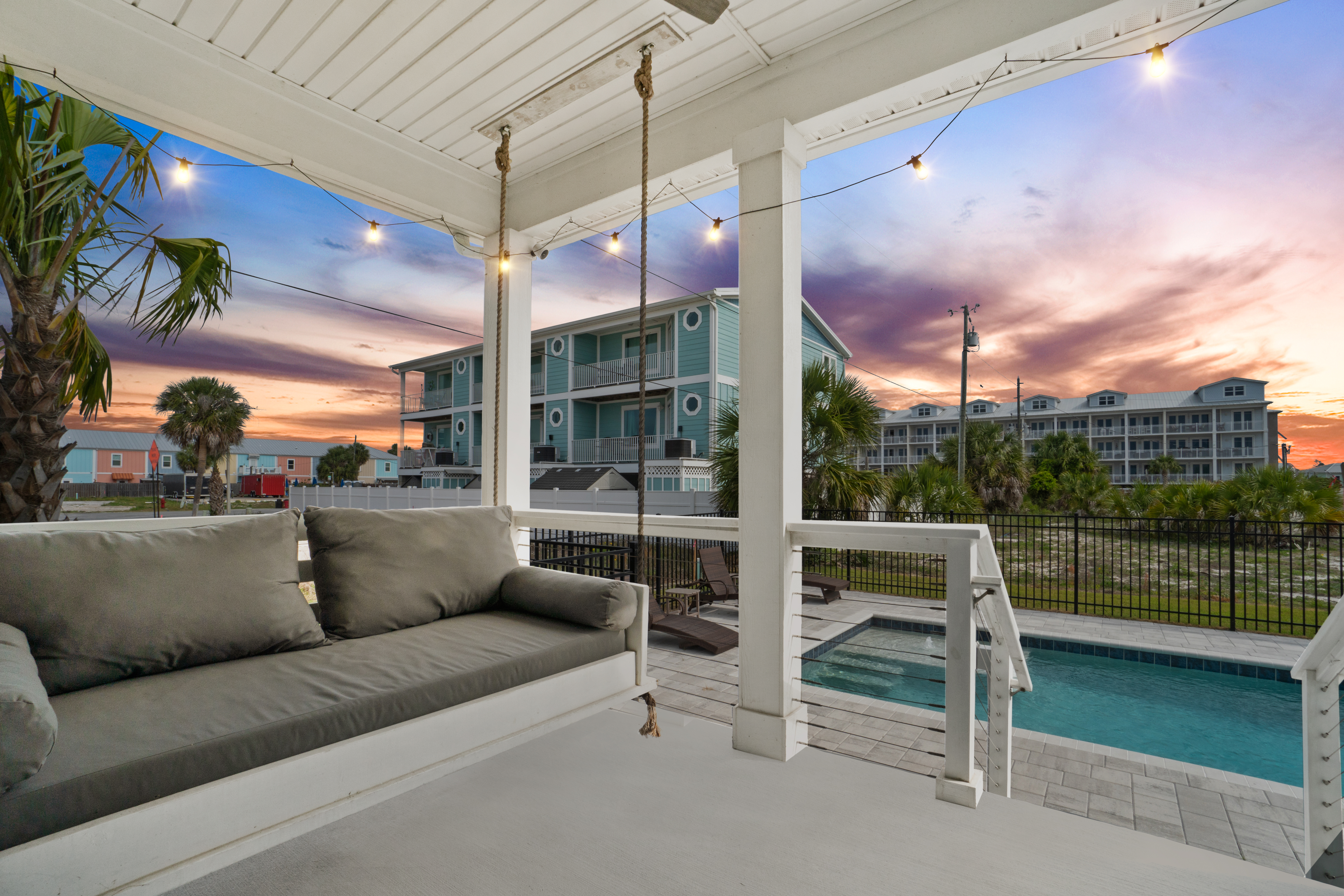 Enjoy gulf views from the comfort of your front and back balconies, each styled with outdoor furniture and a dreamy sofa swing made for lazy afternoons. Front and back porches create perfect places to unwind after a day at the beach or your private pool.