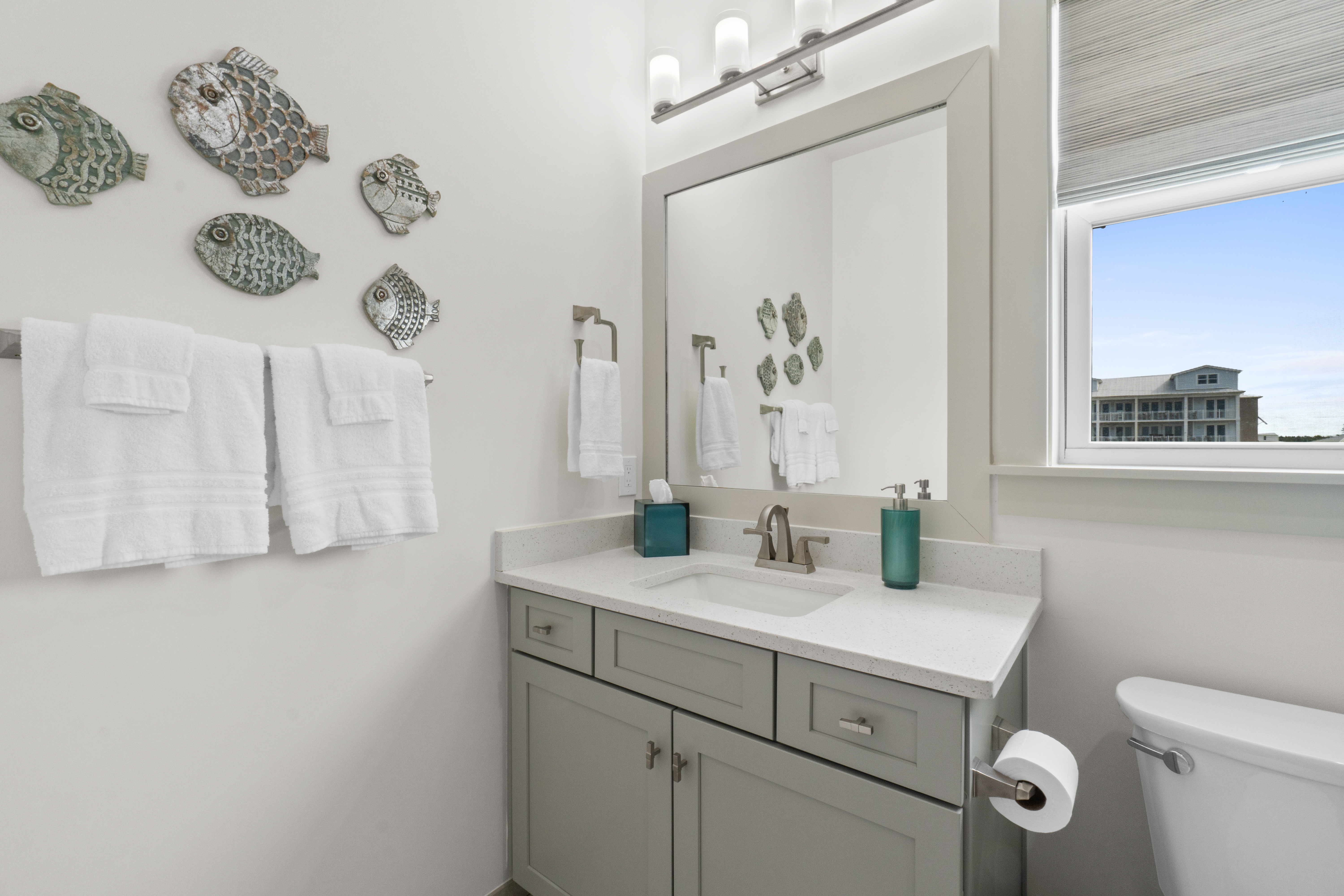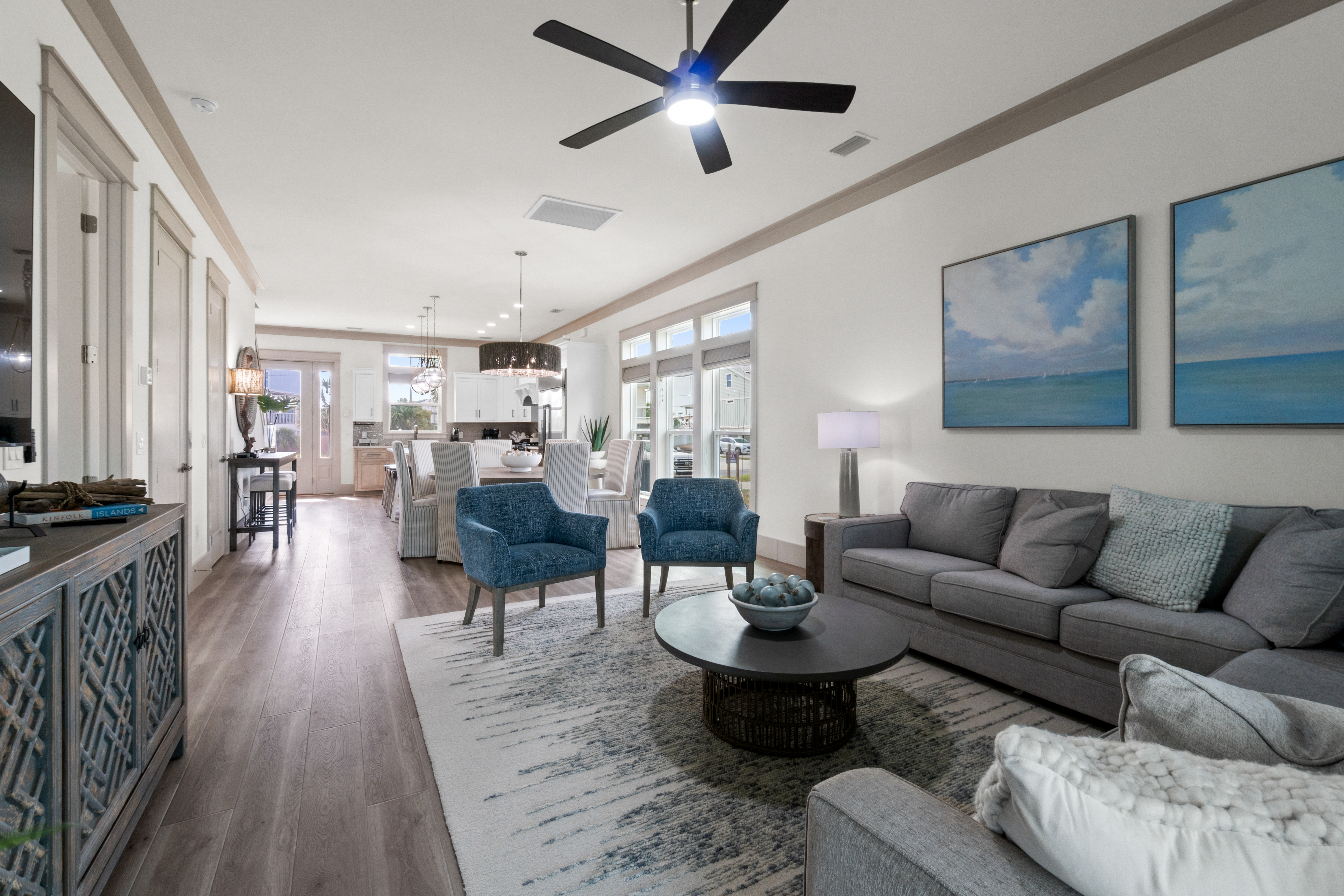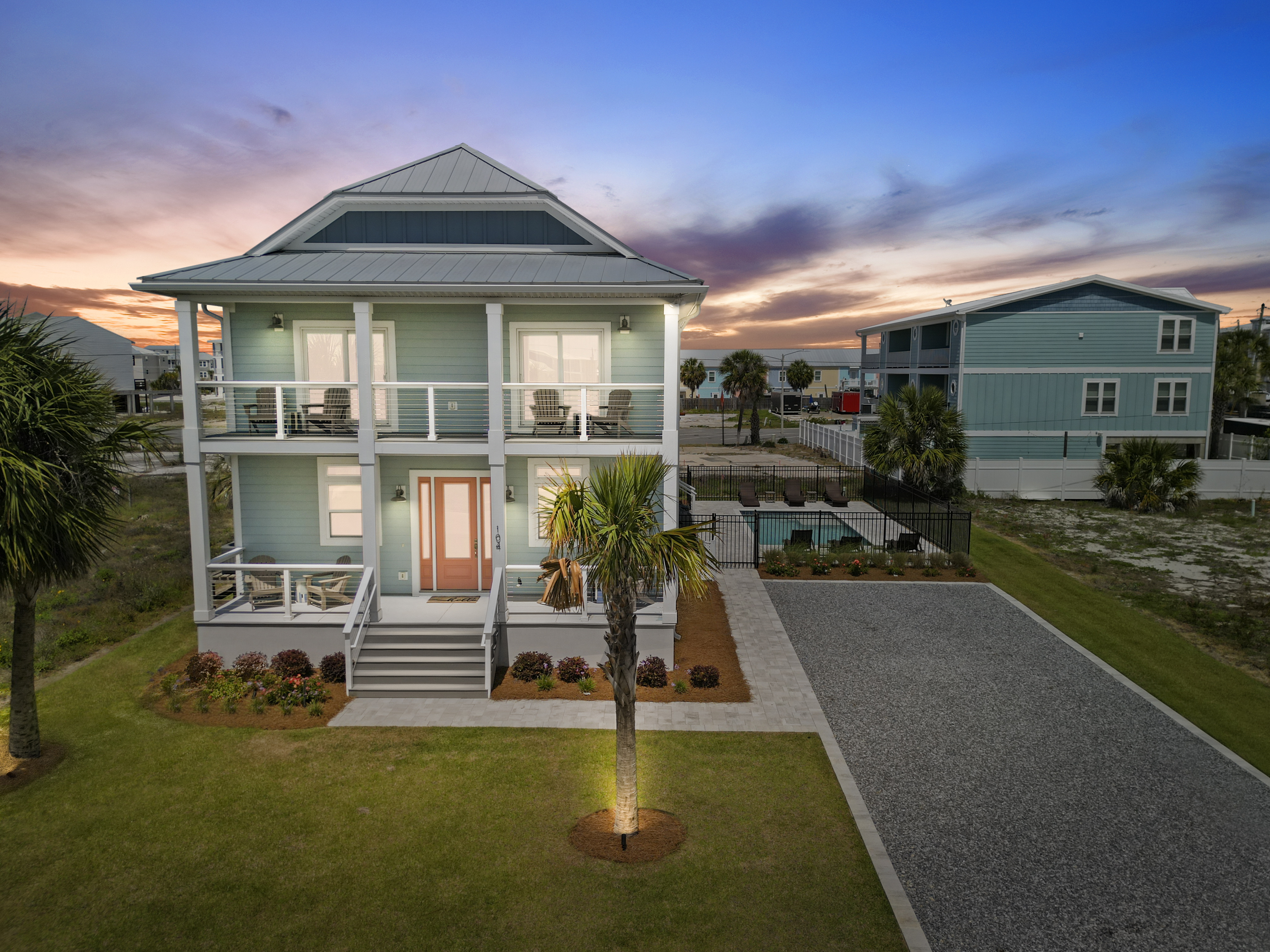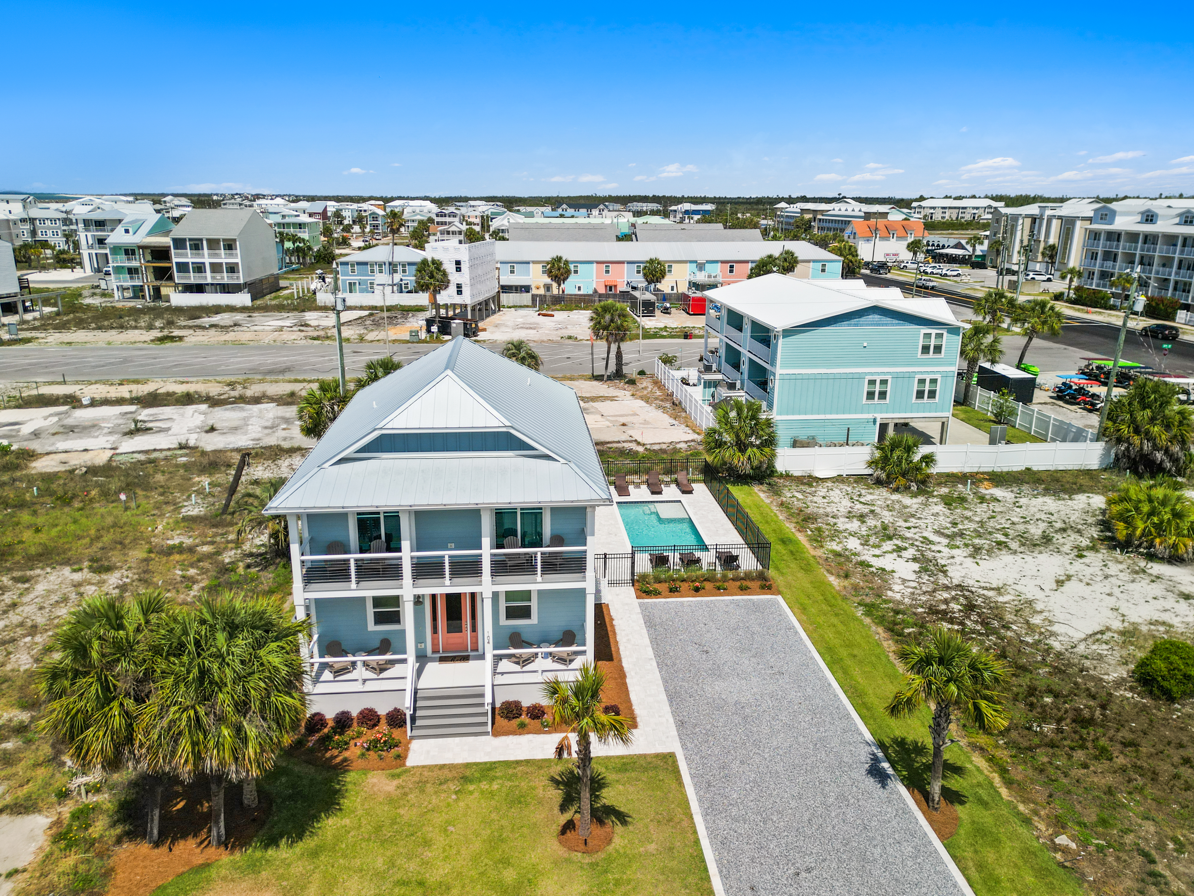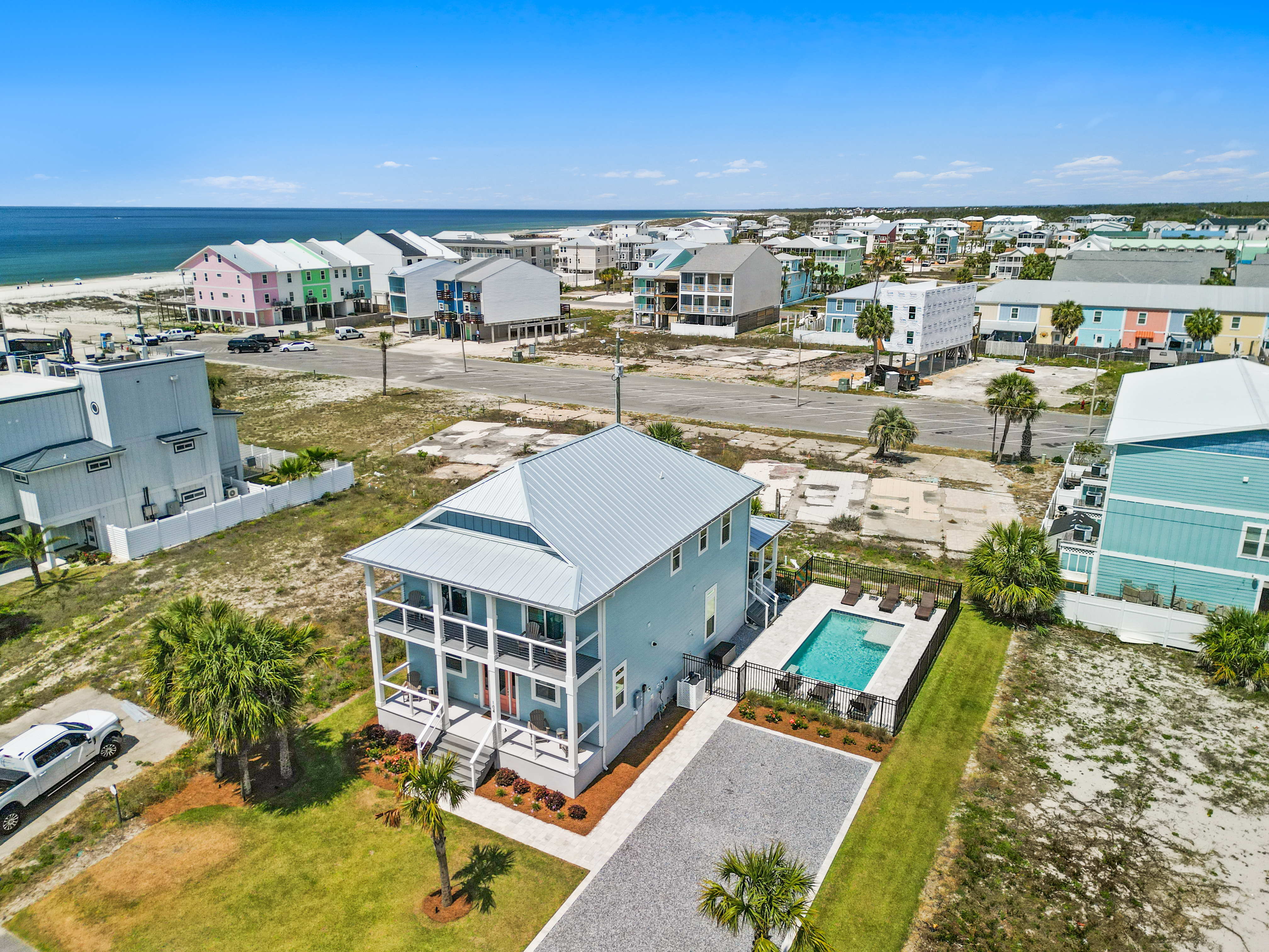 Enjoy gulf views from the comfort of your front and back balconies, each styled with outdoor furniture and a dreamy sofa swing made for lazy afternoons. Front and back porches create perfect places to unwind after a day at the beach or your private pool.