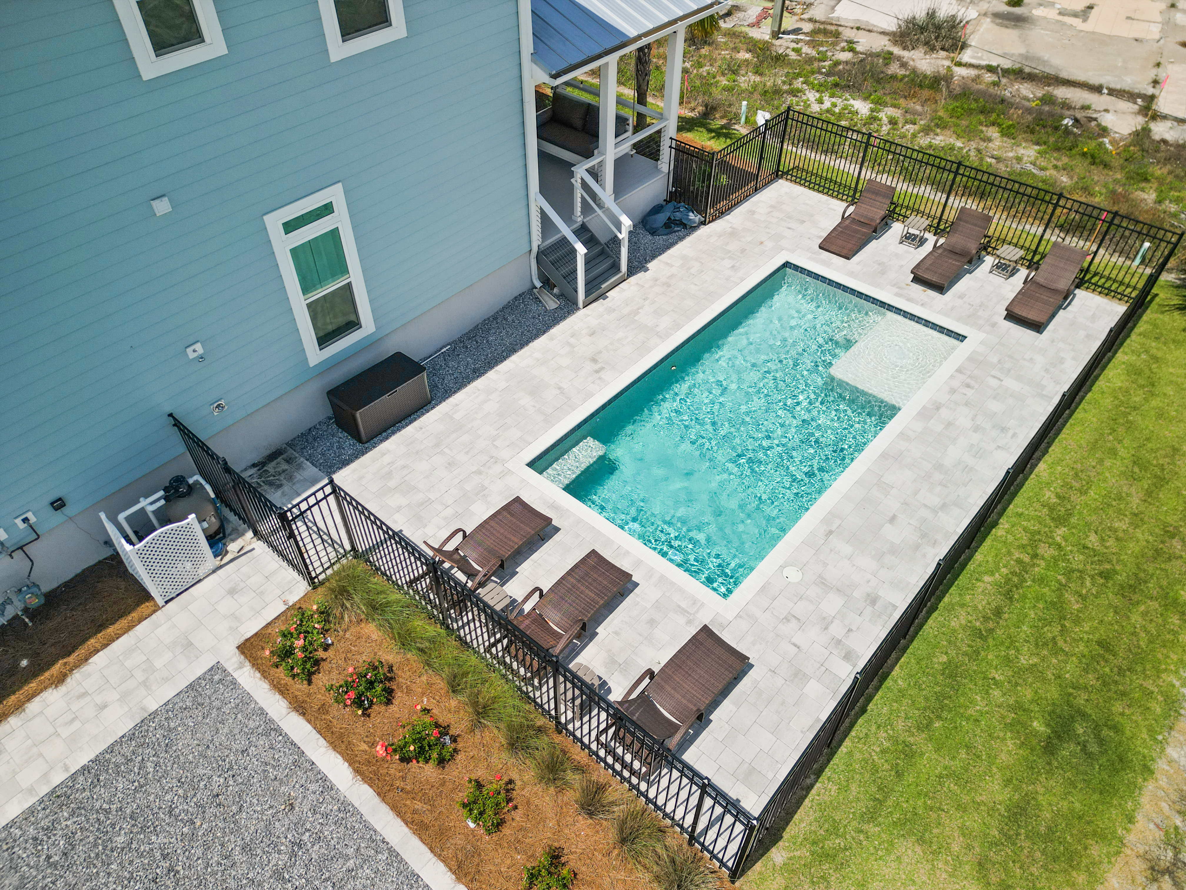 Step into your private, fenced-in oasis complete with a refreshing pool and a peaceful, private yard for lounging or outdoor play — a true sanctuary of your own.