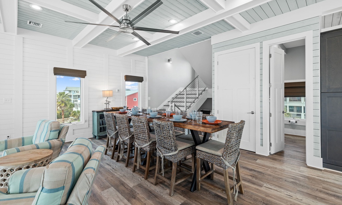 *Dining table plus 3 kitchen island bar stools—plenty of room to gather and enjoy