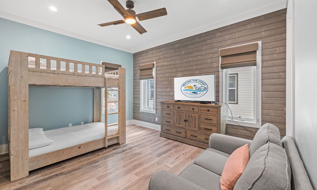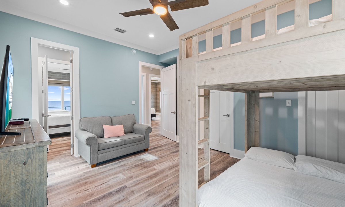 *Street-side Bunk Room with Full-over-Full beds and twin sleeper sofa