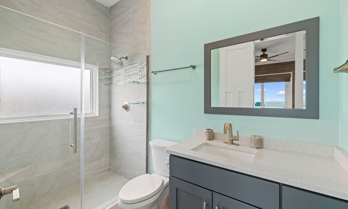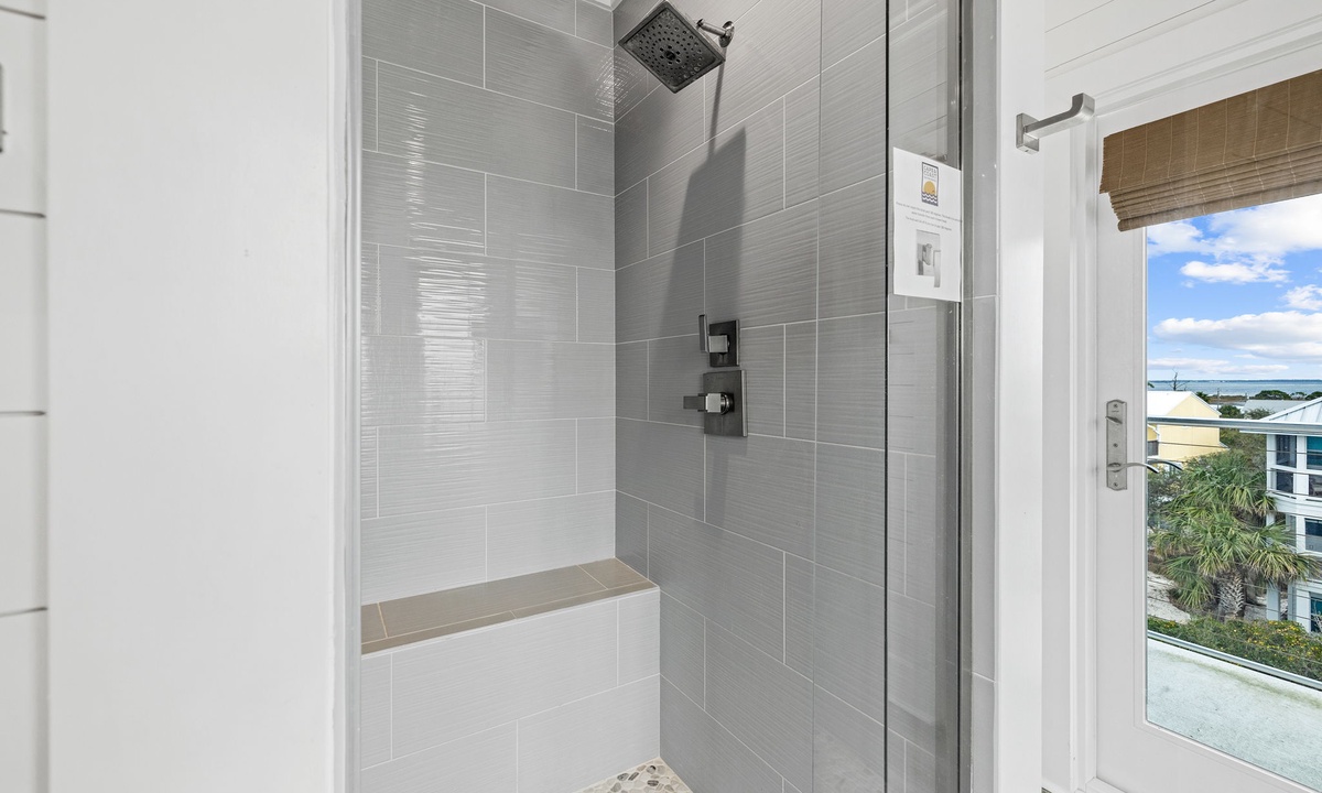 *Gulf-front King bedroom with en suite bath + step-in shower and deck access
