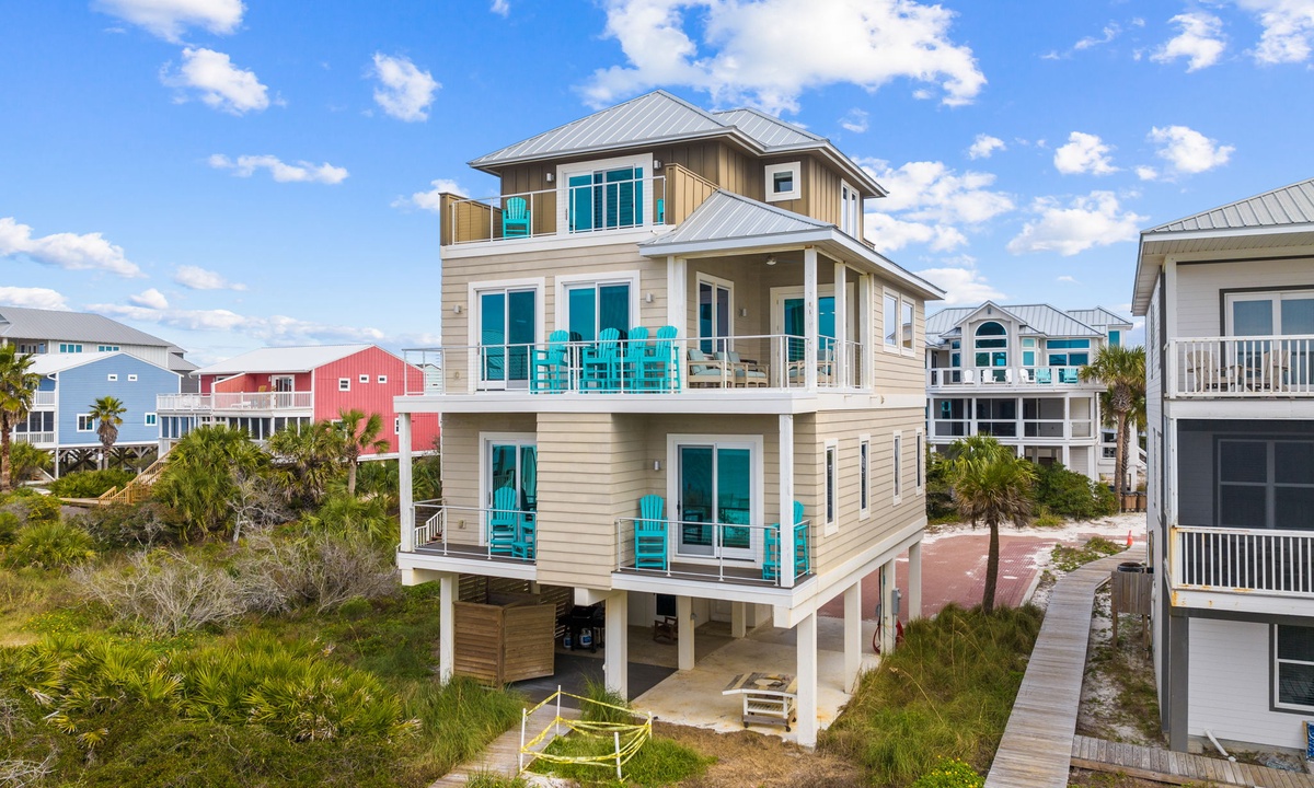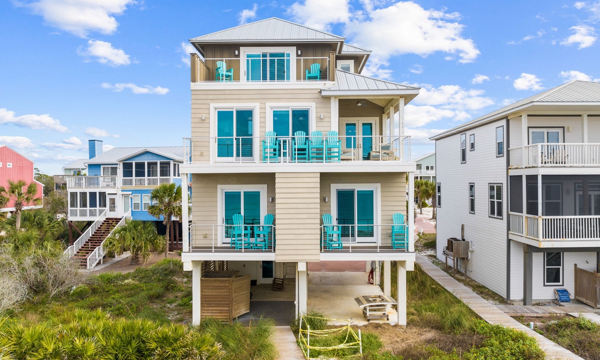 Nestled on the shimmering shores of the Gulf of Mexico, Singing Waves (formerly known as Mar-A-Lago) offers a serene and stylish retreat on North Cape San Blas. Designed with comfort and relaxation in mind, this beautifully appointed beachfront home now features a cozy fire pit — perfect for gathering under the stars after a day at the beach.