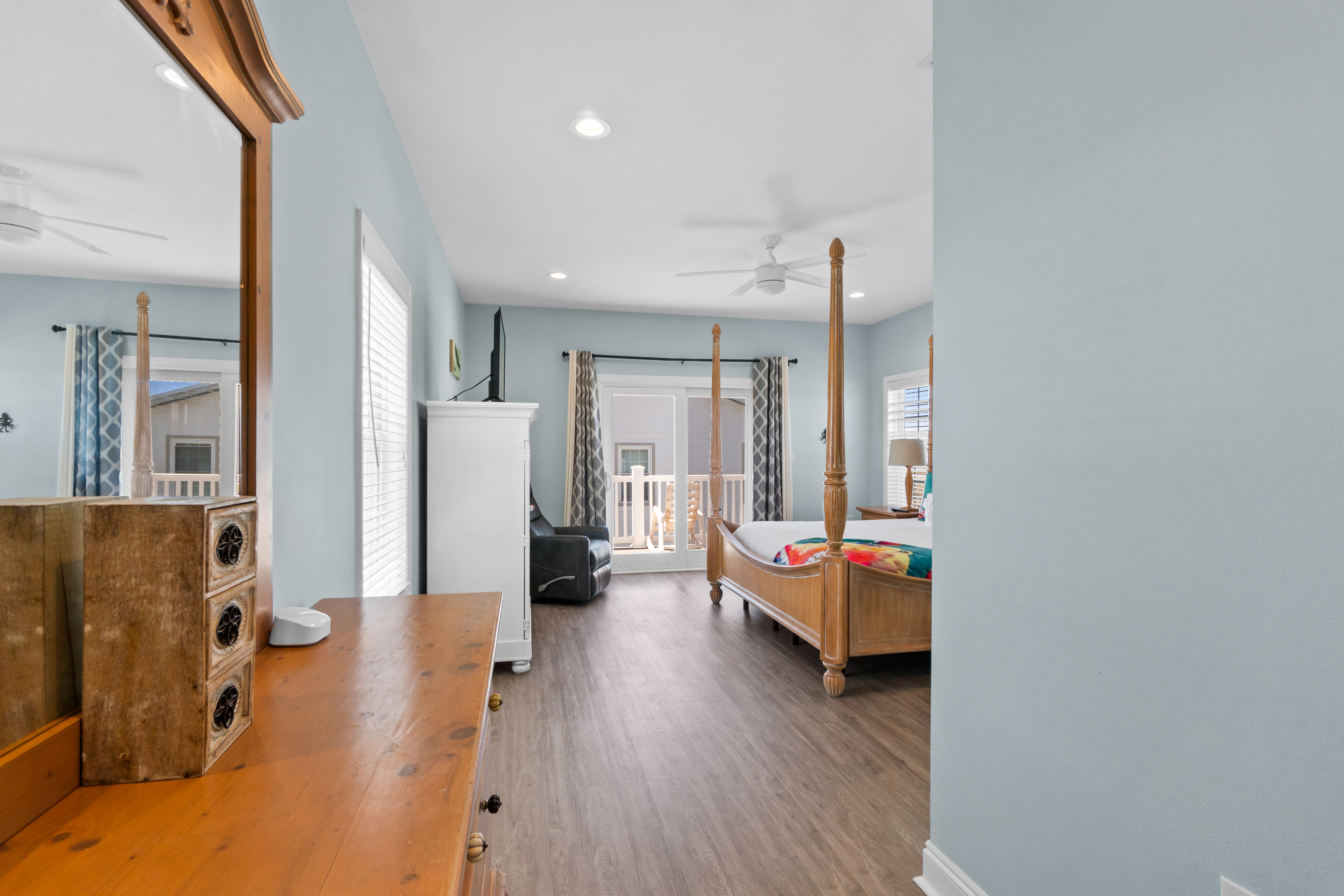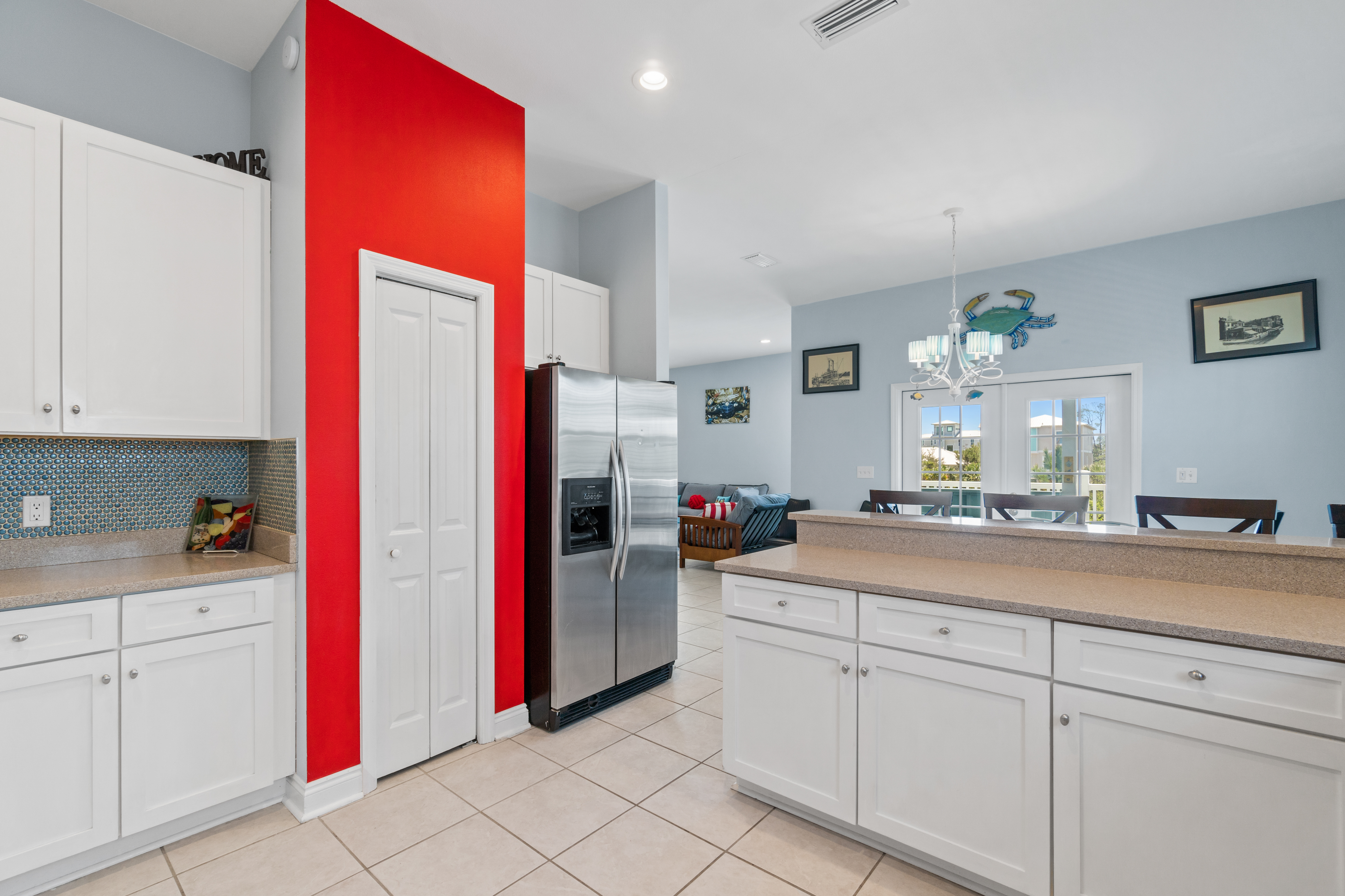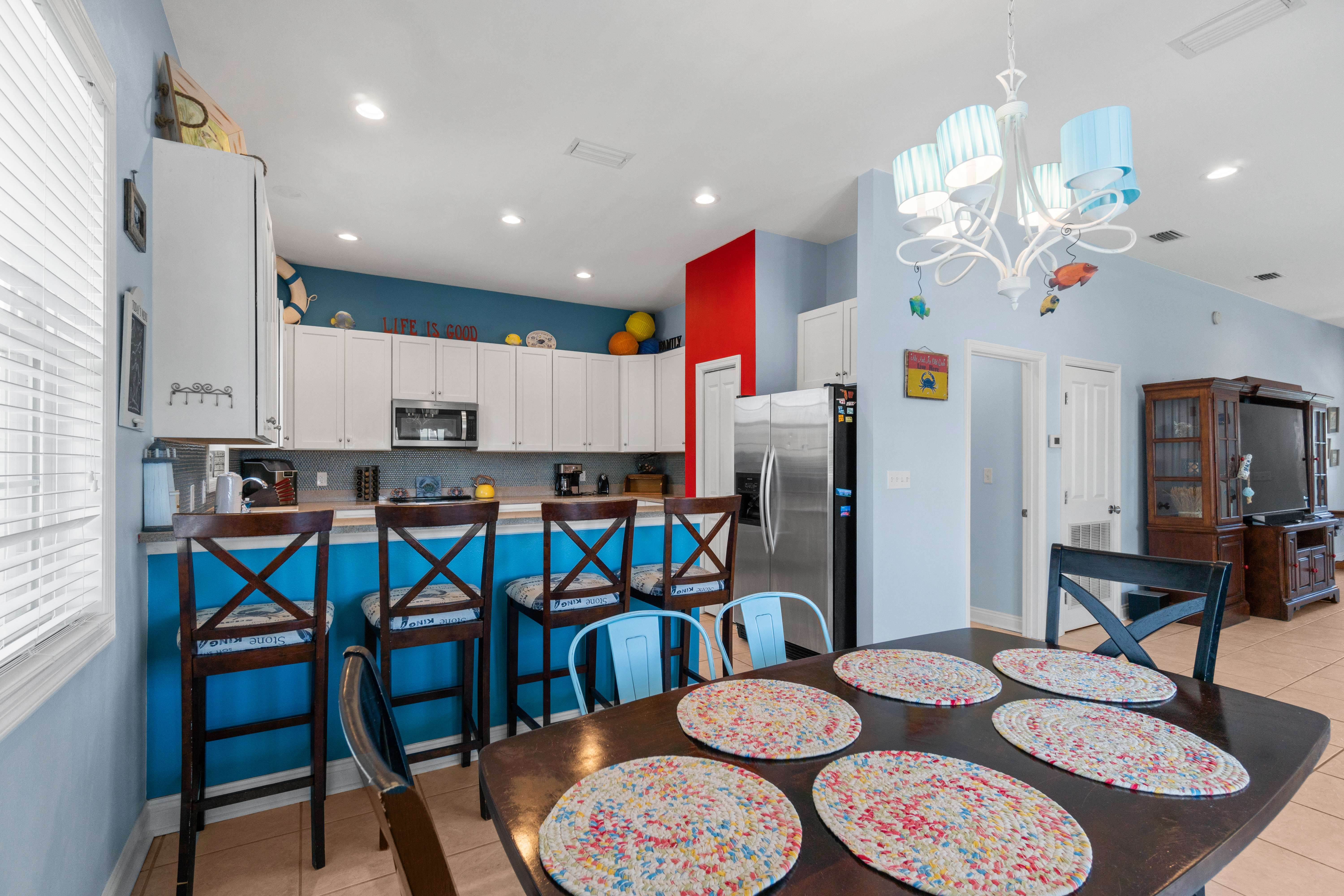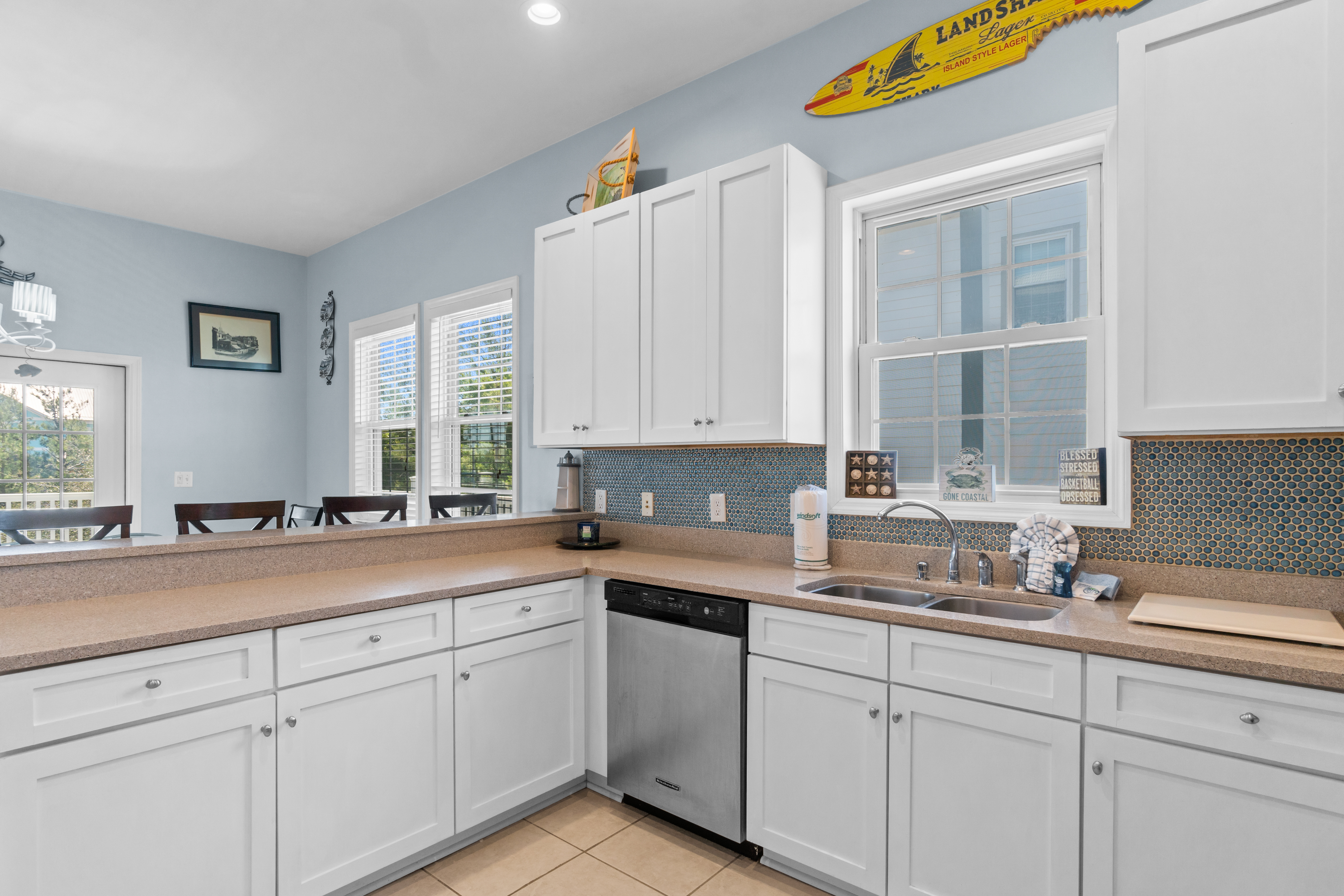Fully Equipped Kitchen: Cooking is a breeze with a fully stocked kitchen, featuring modern appliances and everything you need to prepare meals with ease. There's also a Blackstone griddle for grilling up your favorite beach meals.