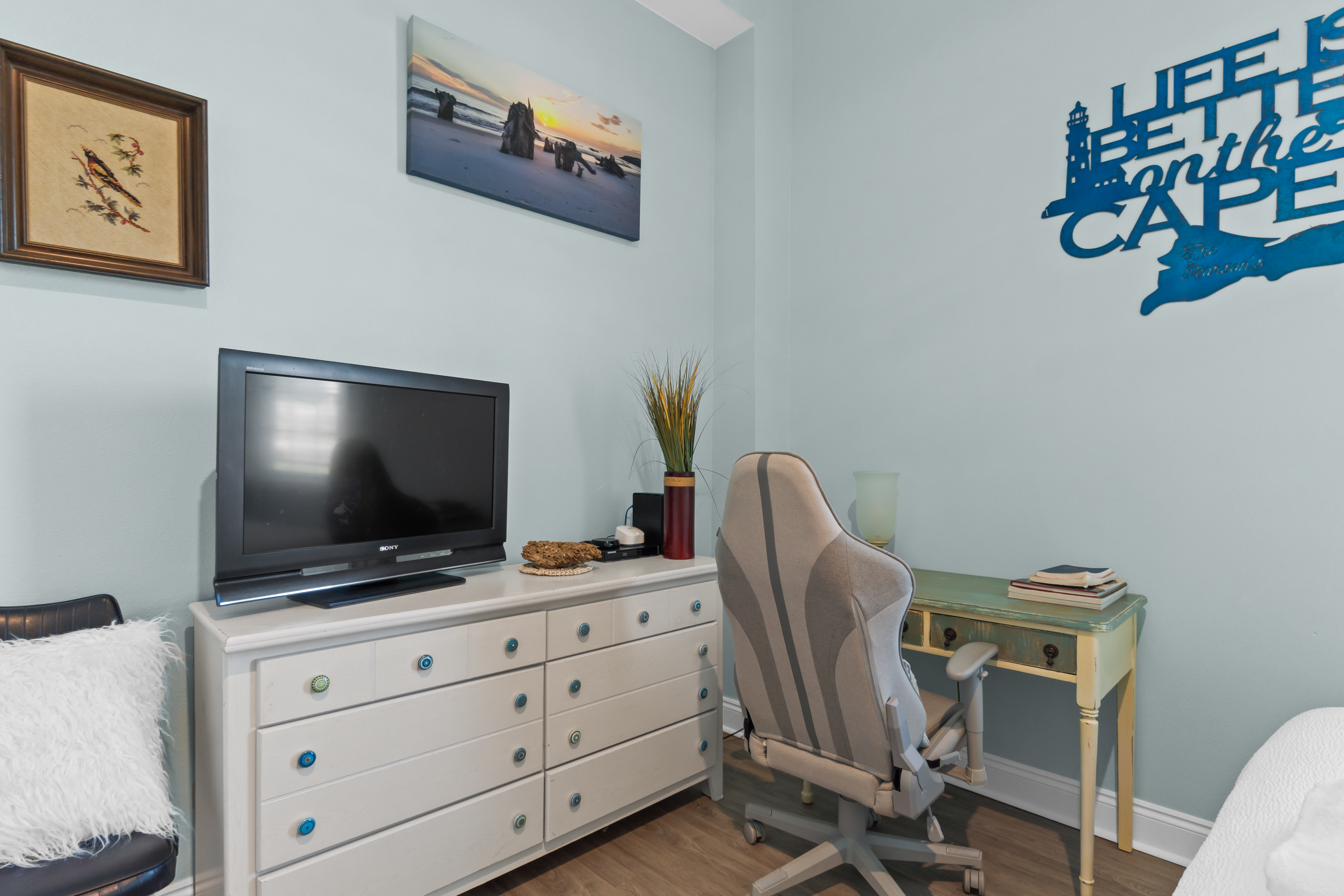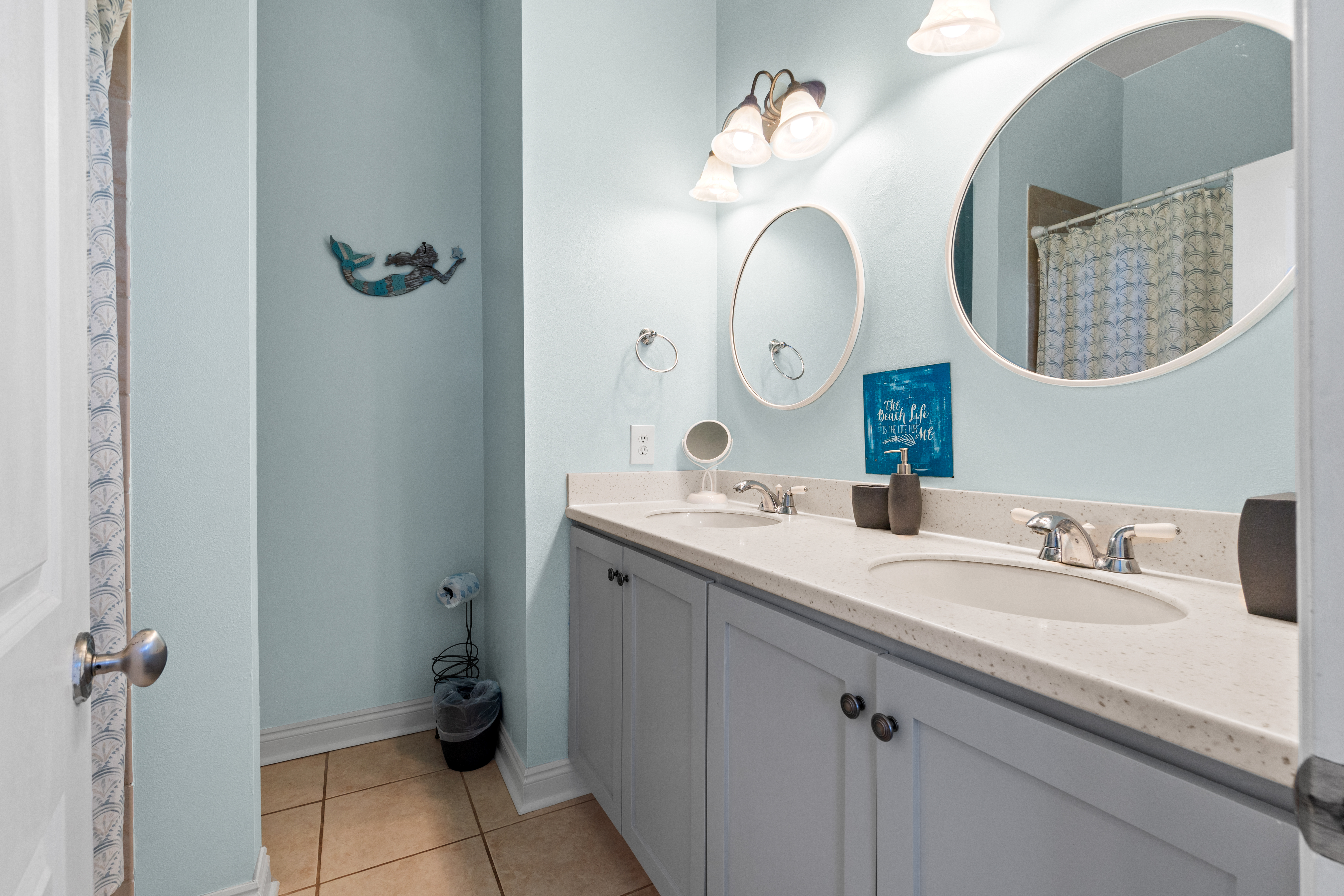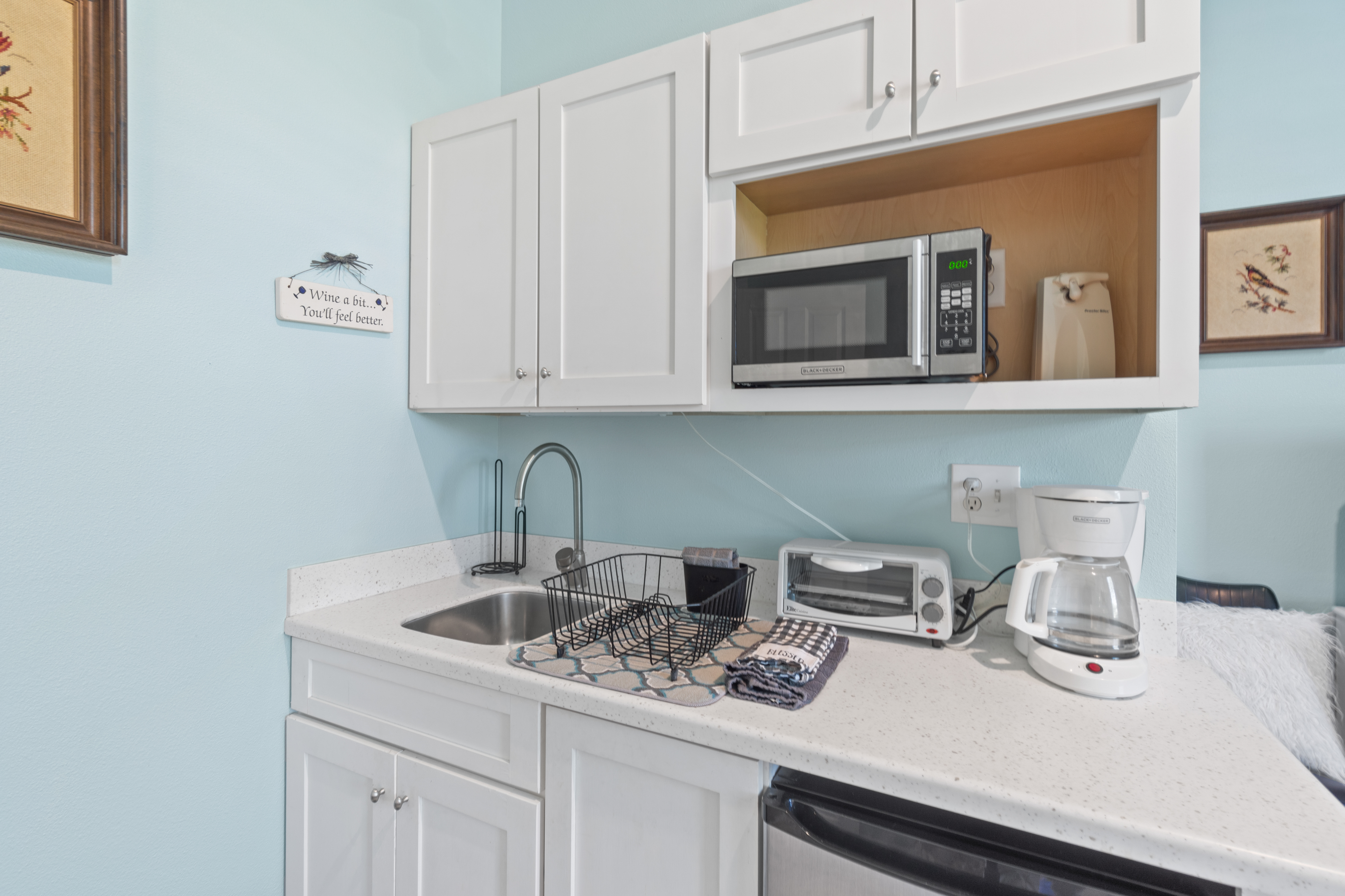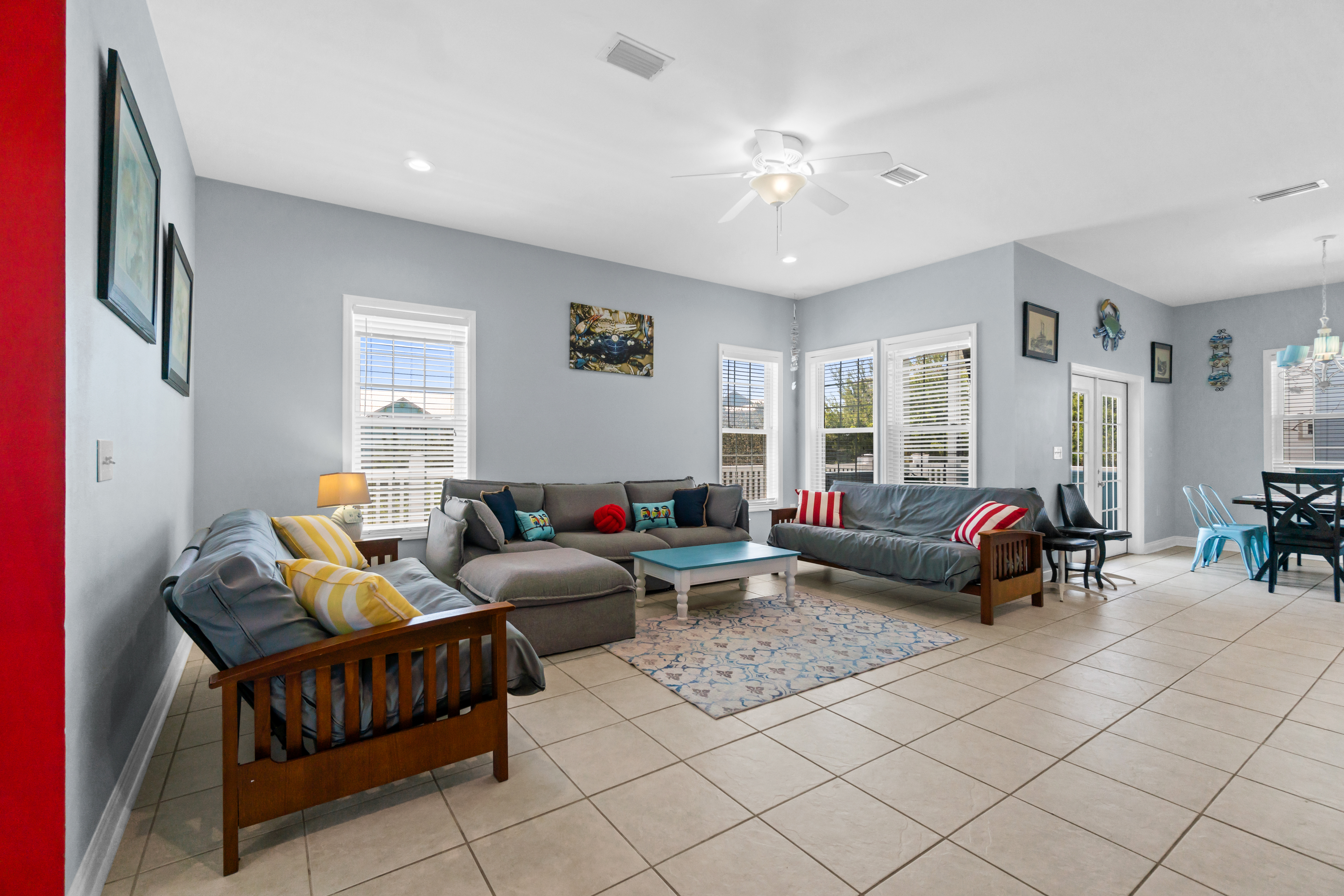 Fully Equipped Kitchen: Cooking is a breeze with a fully stocked kitchen, featuring modern appliances and everything you need to prepare meals with ease. There's also a Blackstone griddle for grilling up your favorite beach meals.