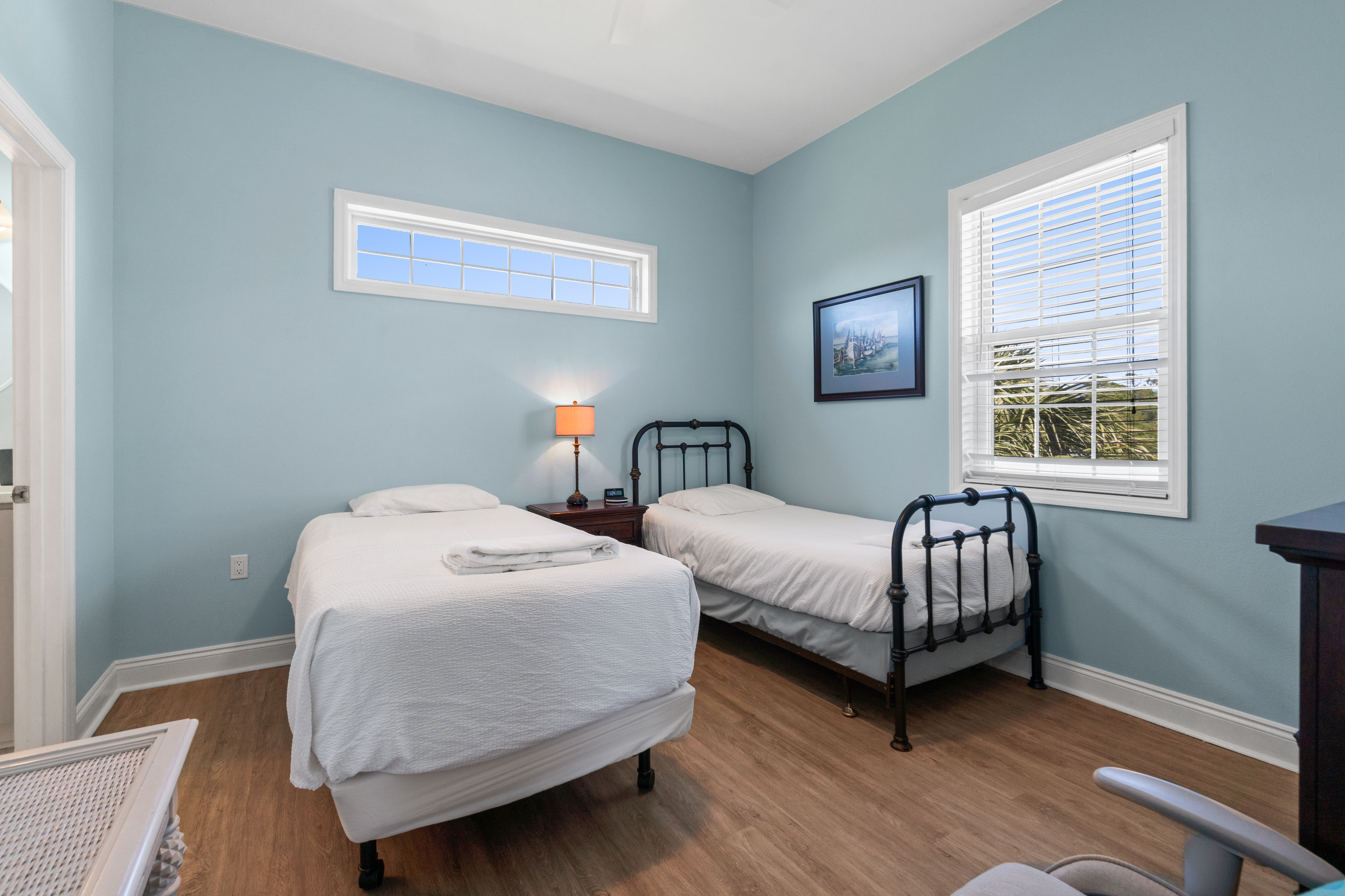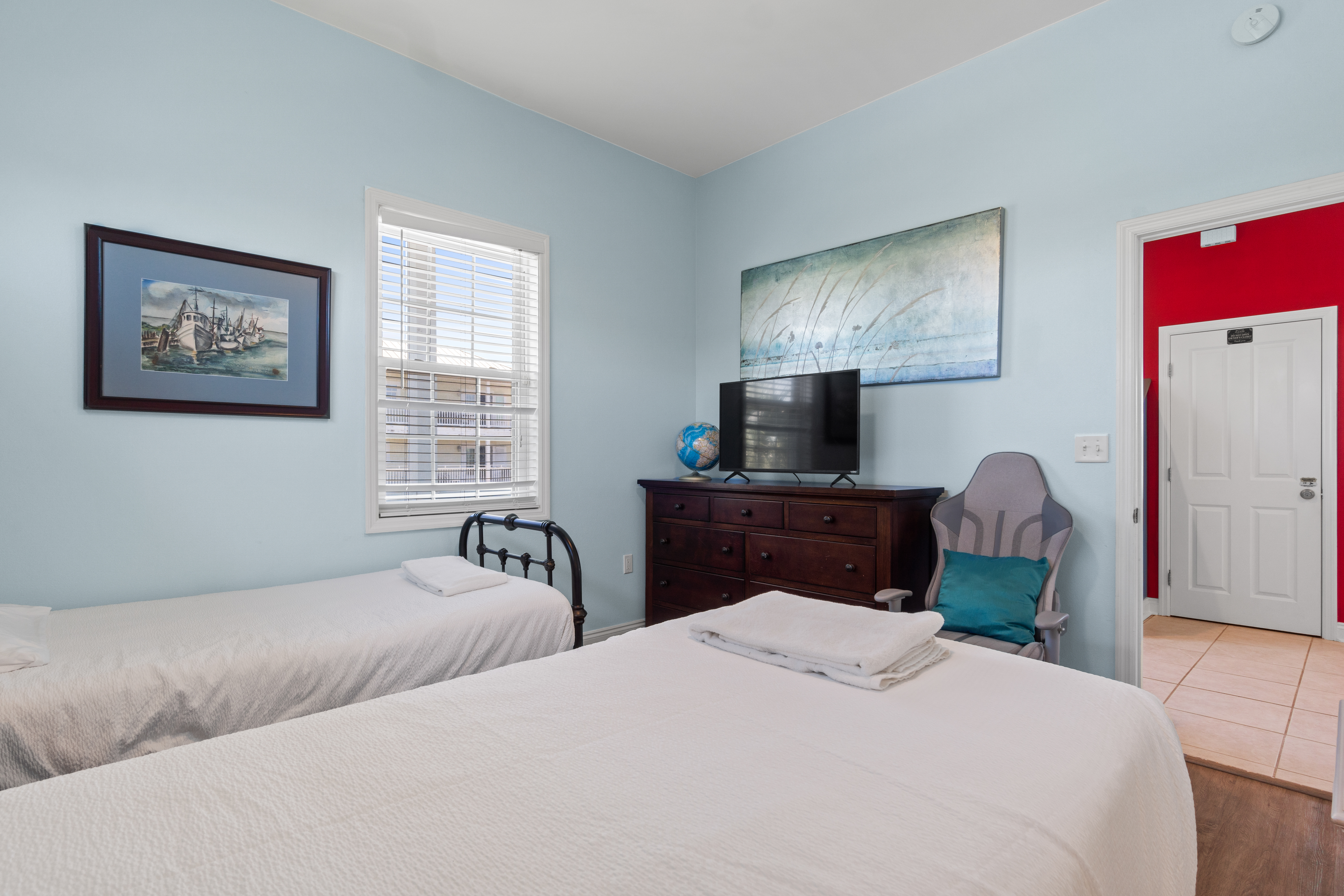 Two XL Twin Bedroom: Ideal for siblings or friends, this room offers two XL twin beds, a desk, and a chair, making it perfect for both rest and productivity.