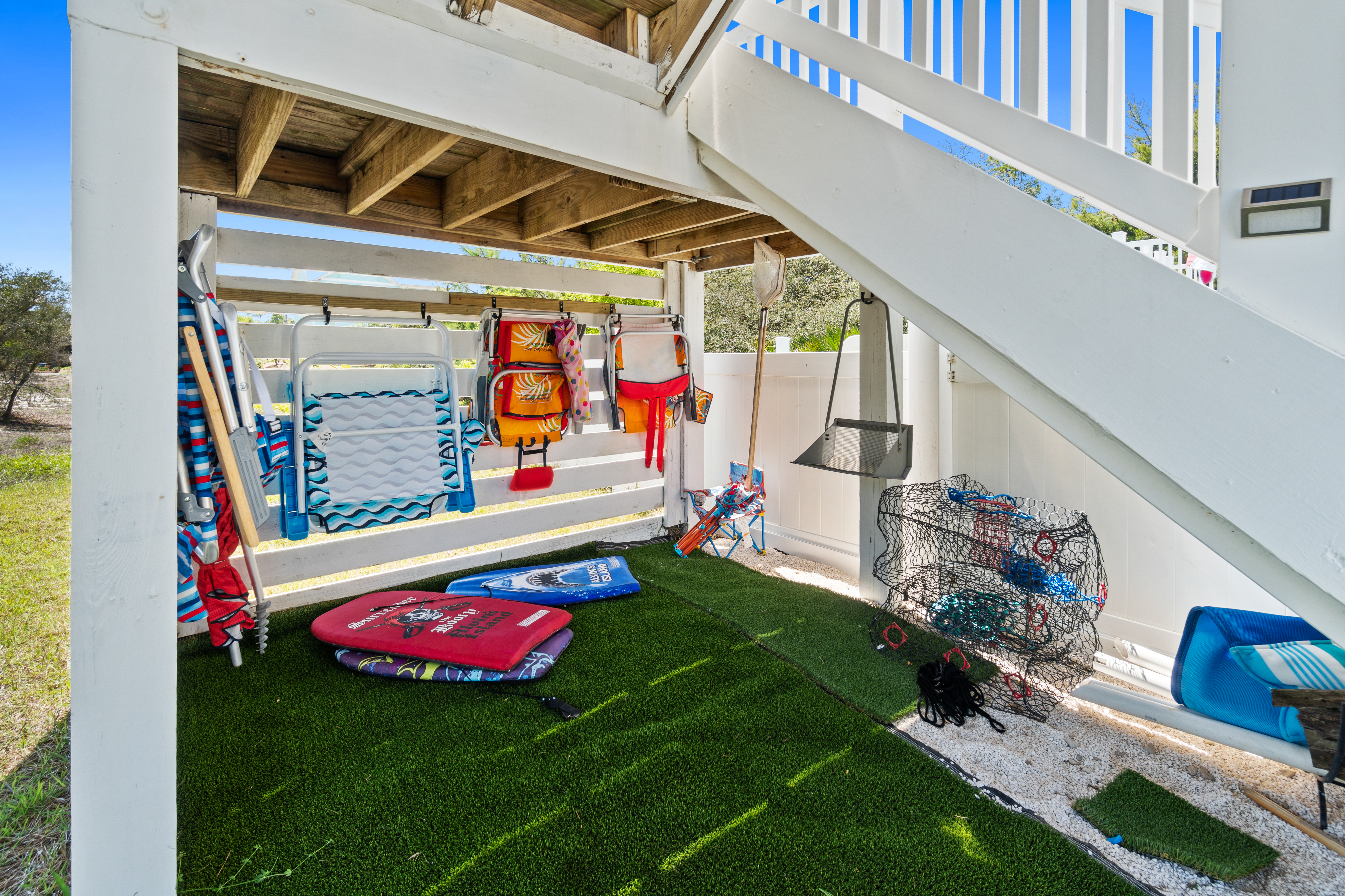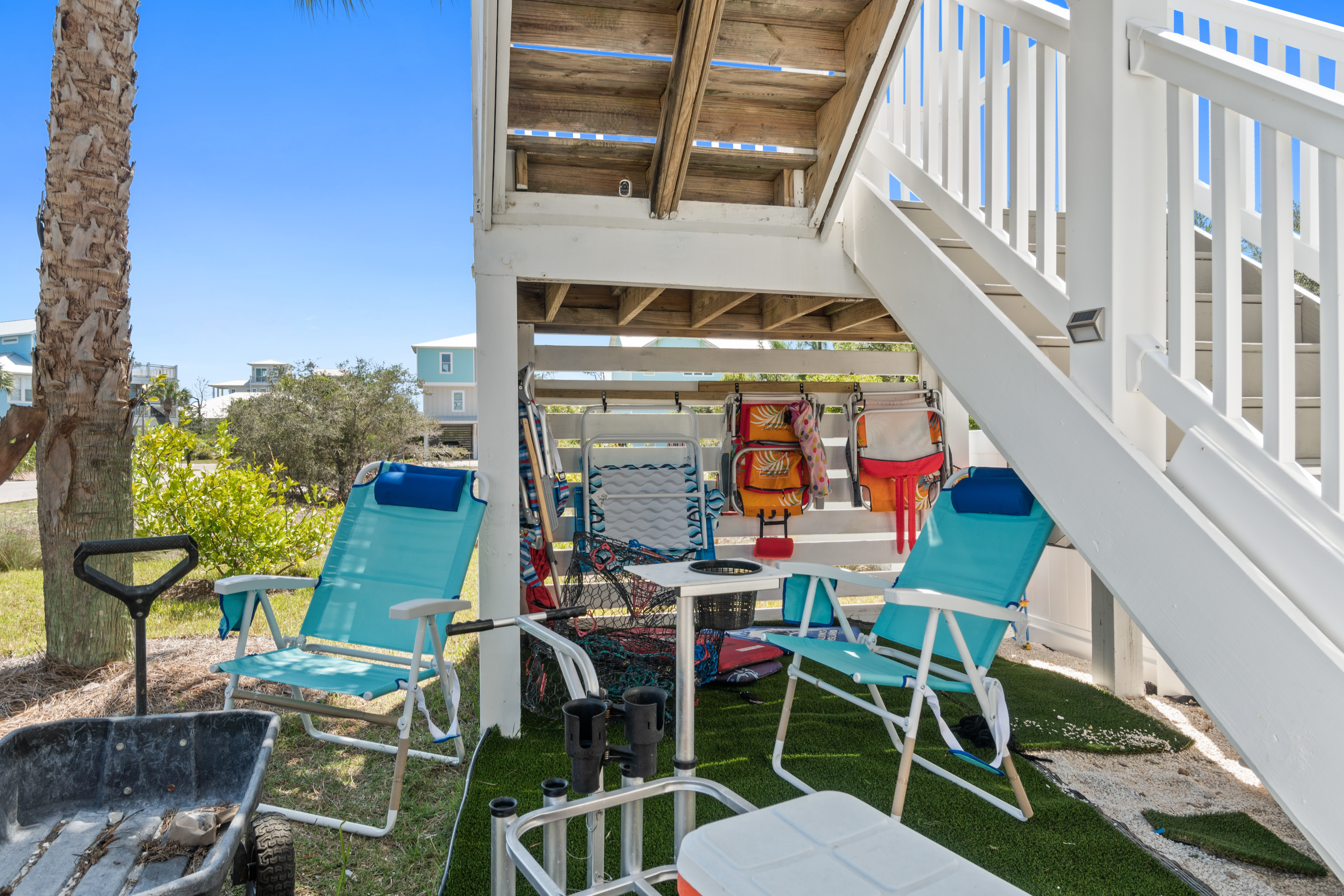 Convenience: Parking is a breeze with space for up to 5 cars. The home also comes equipped with beach chairs, an umbrella, a cart, beach toys and even a kayak for your beach adventures.
