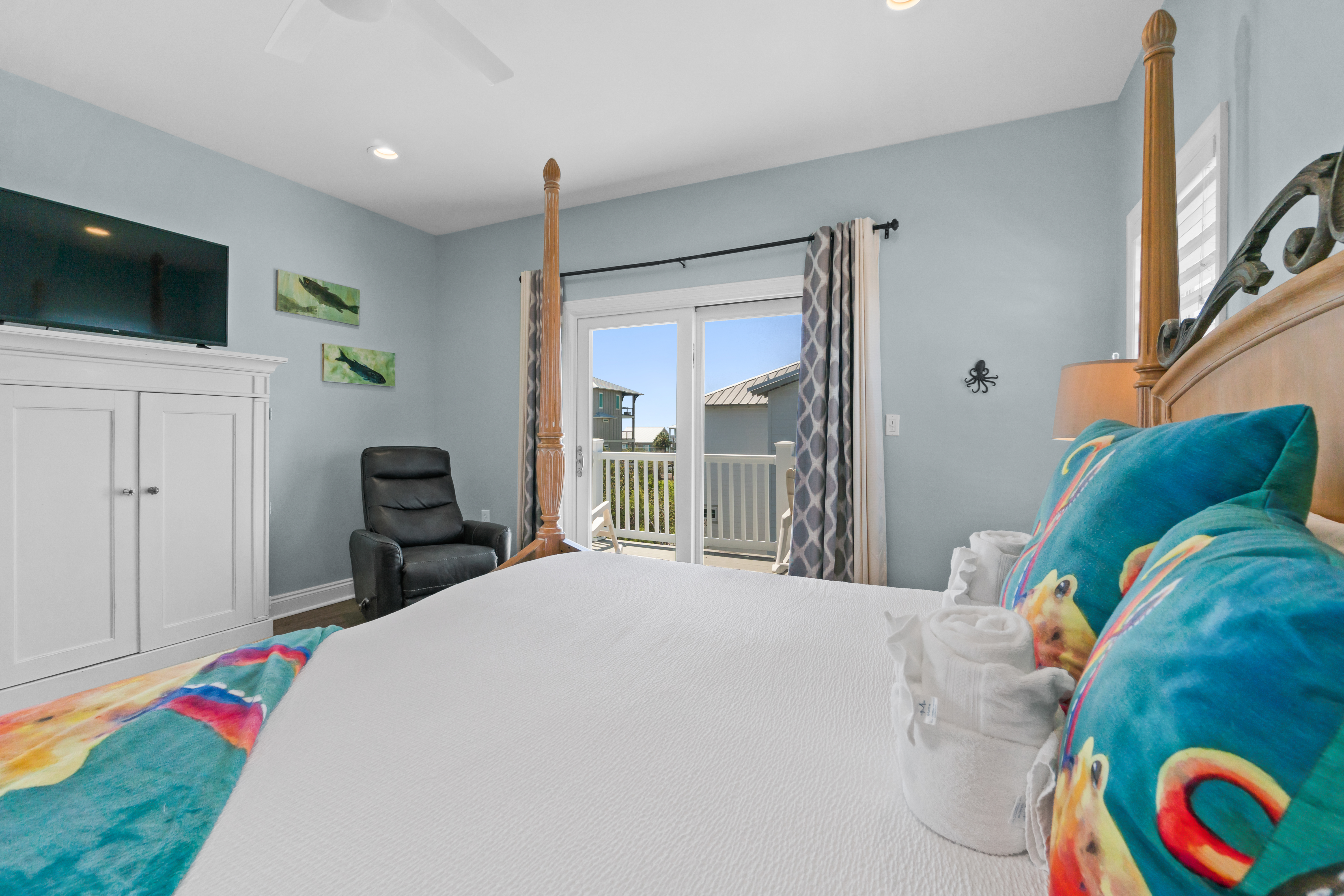 Adjustable Split King Bedroom: This versatile room offers a split king bed, allowing for the perfect setup whether you prefer one large bed or two smaller beds. The full bath includes a double vanity, and the room opens to a deck with breathtaking Gulf views, offering a peaceful spot to start and end your day.