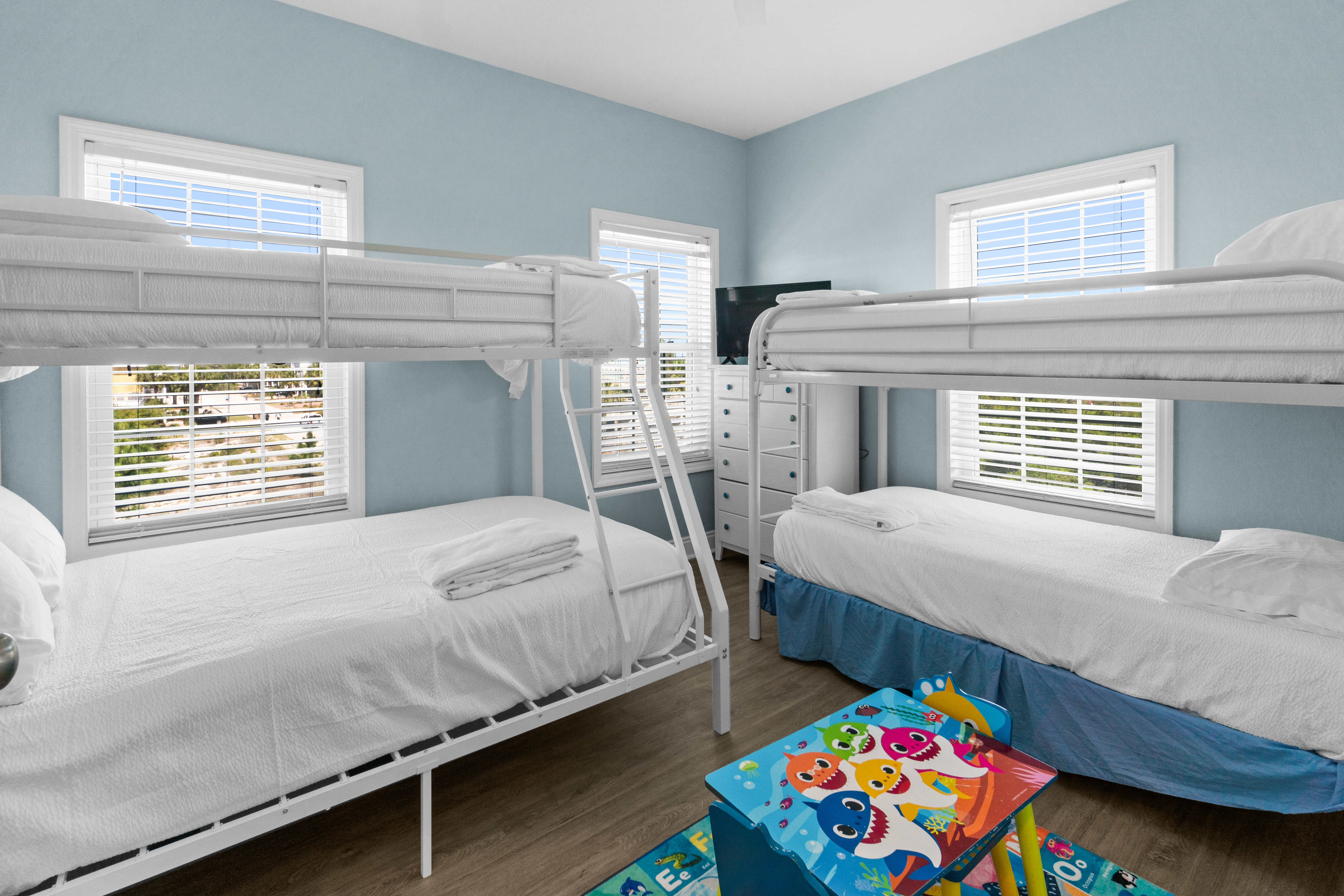 Bunk Bedroom: A spacious, fun room for the kids or extra guests, featuring a twin-over-twin bunk bed and a twin-over-full bunk bed. The room is comfortably equipped with a full bath and boasts incredible views of the Gulf and Bay, allowing you to unwind while soaking in the natural beauty outside.