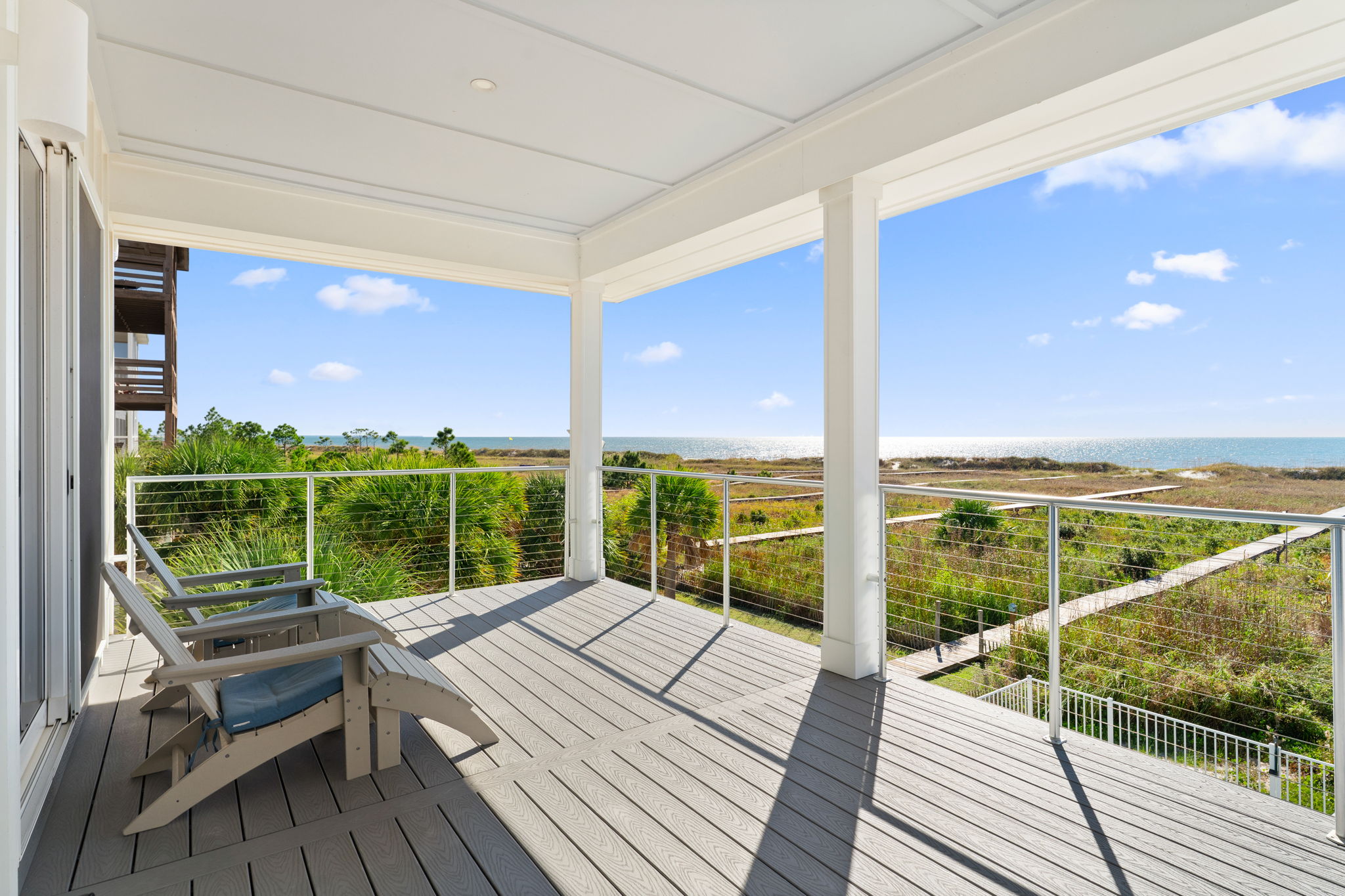 Covered balcony with loungers & panoramic Gulf views