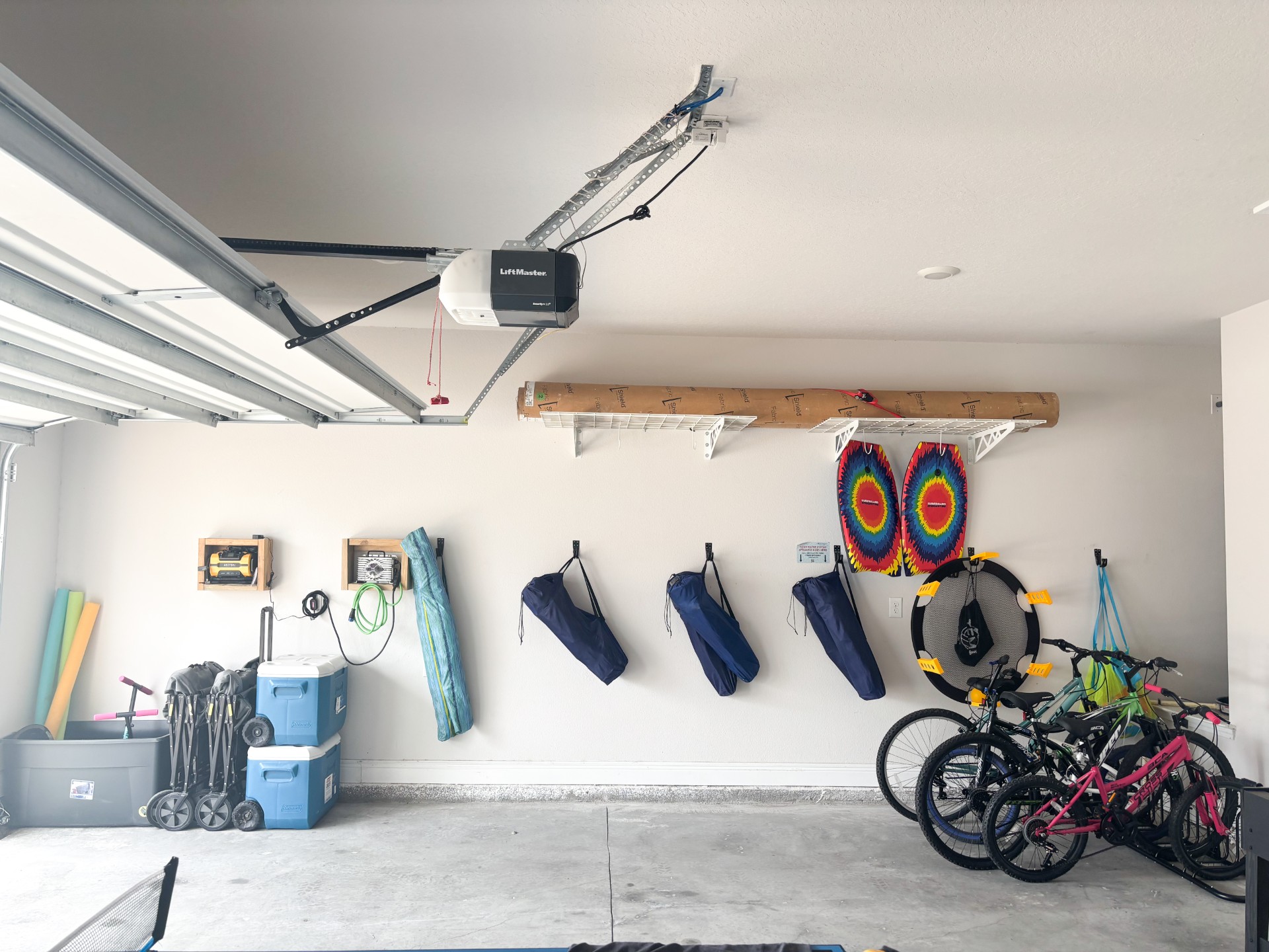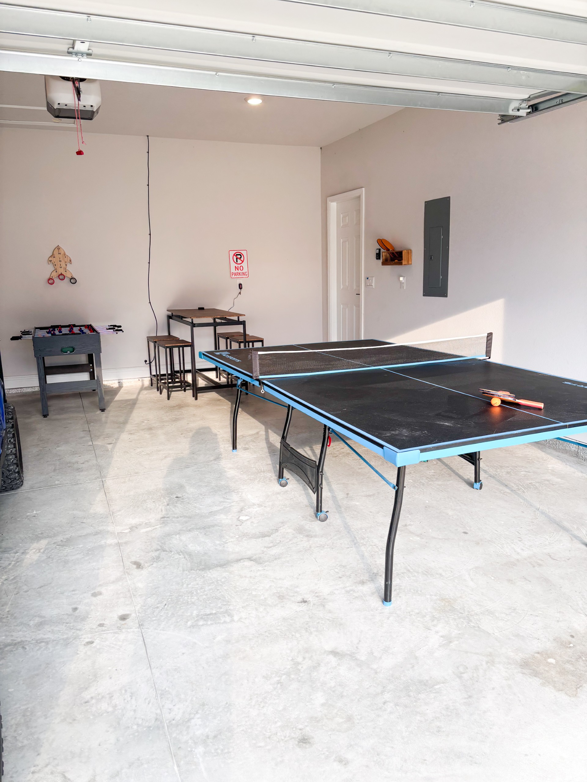 *An outdoor shower for rinsing sand off is located on the side of the garage.