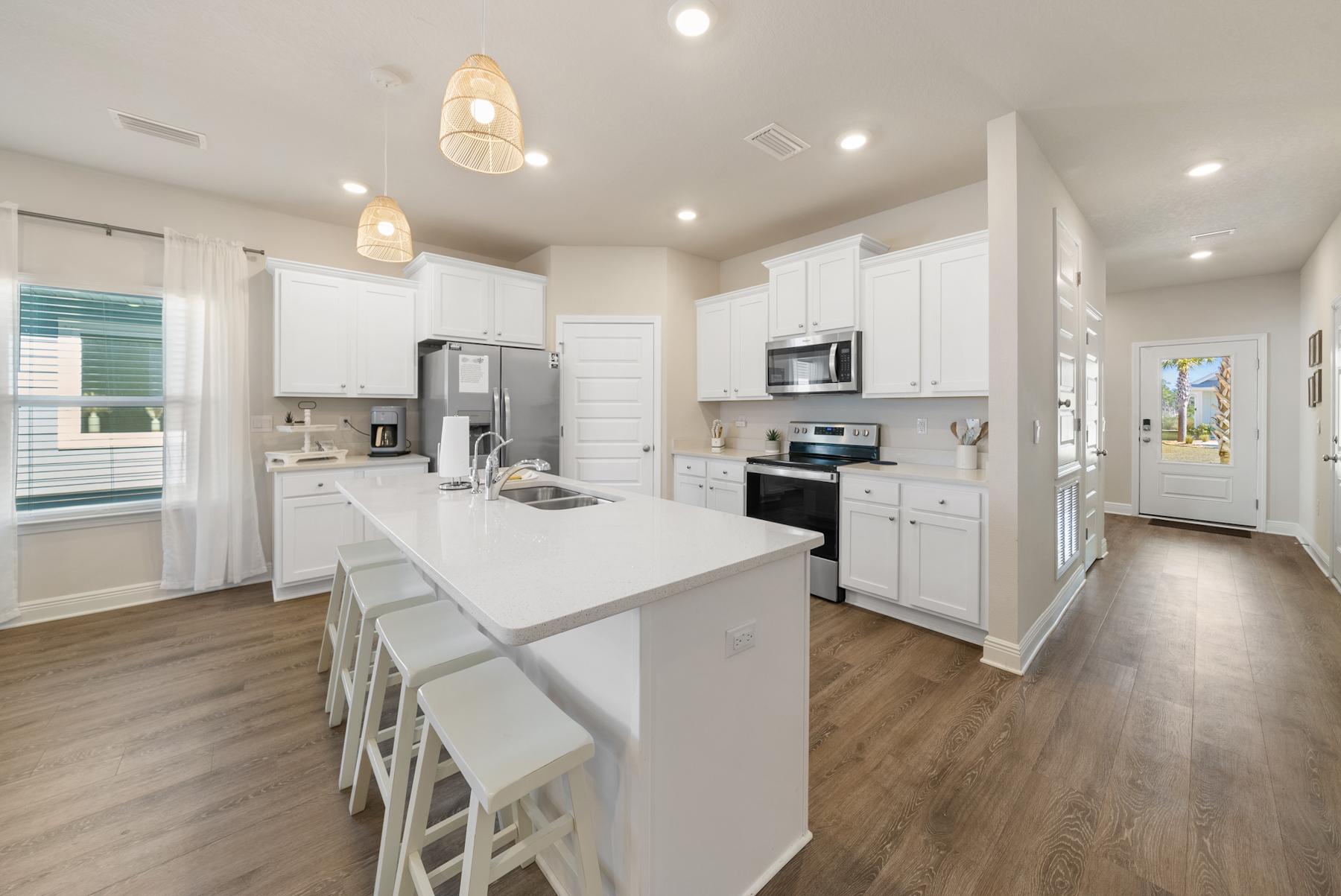 Our family enjoyed the Avocado House. We had ample space.. the extra kitchen and apartment-like separate bedroom was ideal for two families (private but still very much a part of the whole house experience). The kids hung out in the garage playing ping pong & table football most of the time we weren’t out at the beach. We took them on nightly golf cart rides, occasionally making stops to catch the sunset & collect shells at Windmark beach. It seemed like there might have been more cameras surveilling the house than we thought from the listing - this didn’t both me but it might be something to consider for guests who want more privacy in that regard. Kam & the management team were very nice & helpful, even recommending local family friendly events to attend in the area. All in all, it was a great trip! The house was really nice inside. Quiet beach, good local food - Bruno’s for Pizza, Pepper’s for Mexican, Hunt’s on St. Joe Bay for Seafood. We would def stay again!- Meg from Jefferson, Georgia, Posted: 7/8/2025