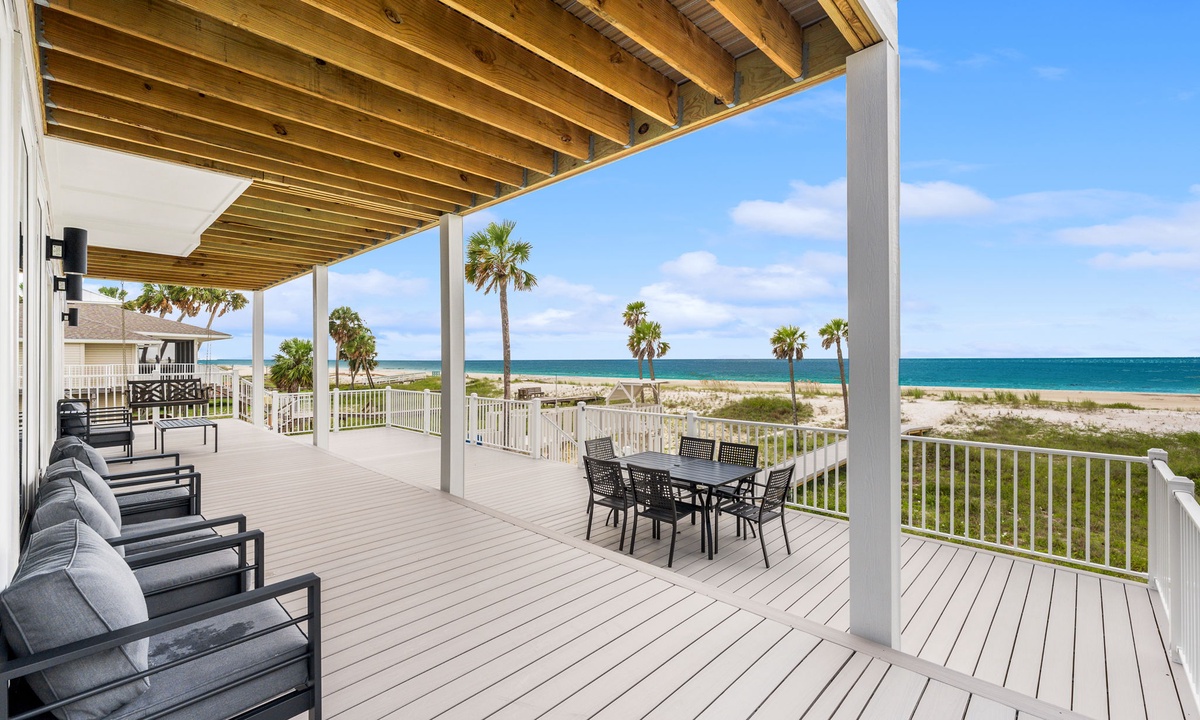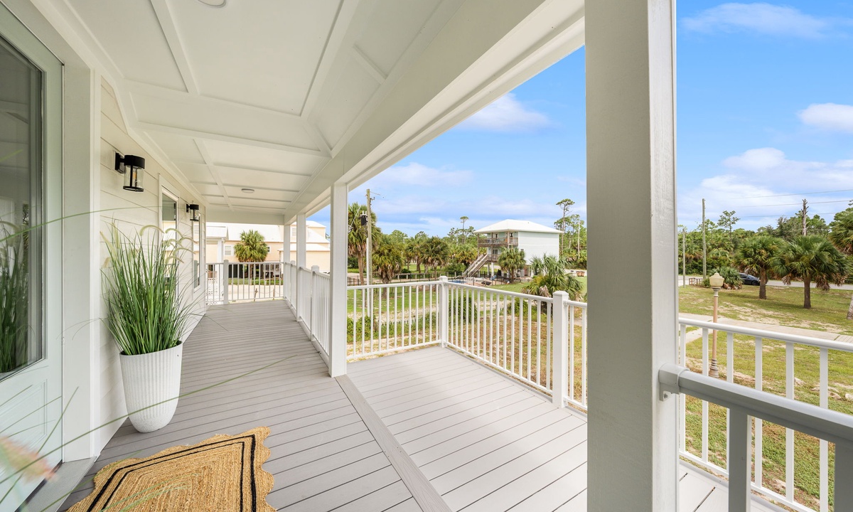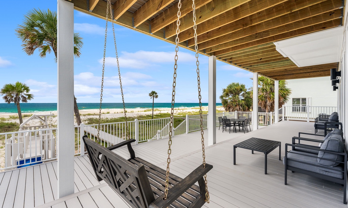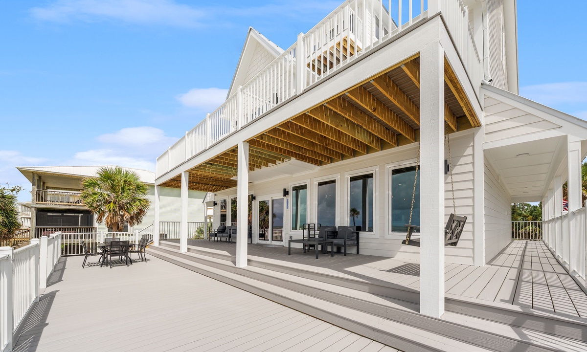 * Wrap-around balcony w/ dining, lounge seating & porch swing