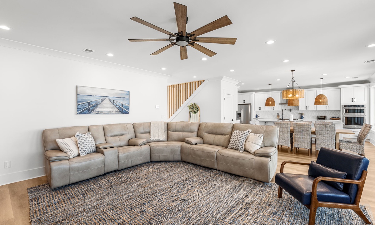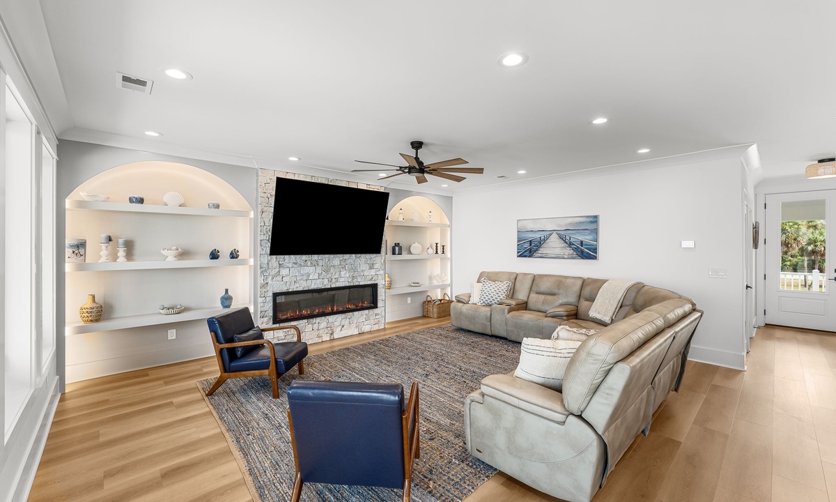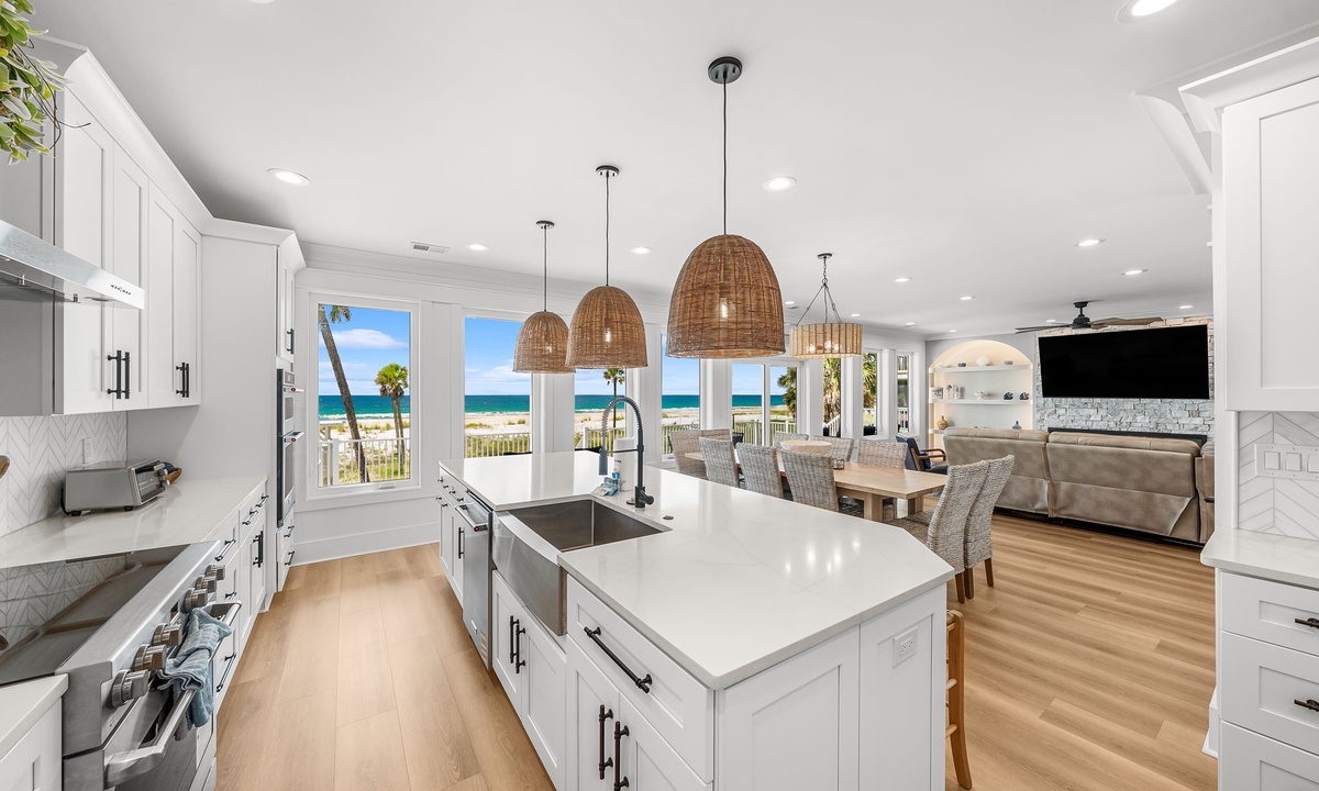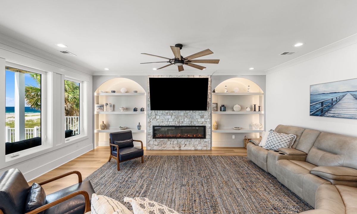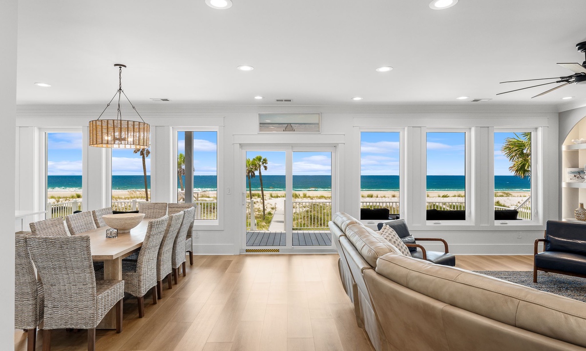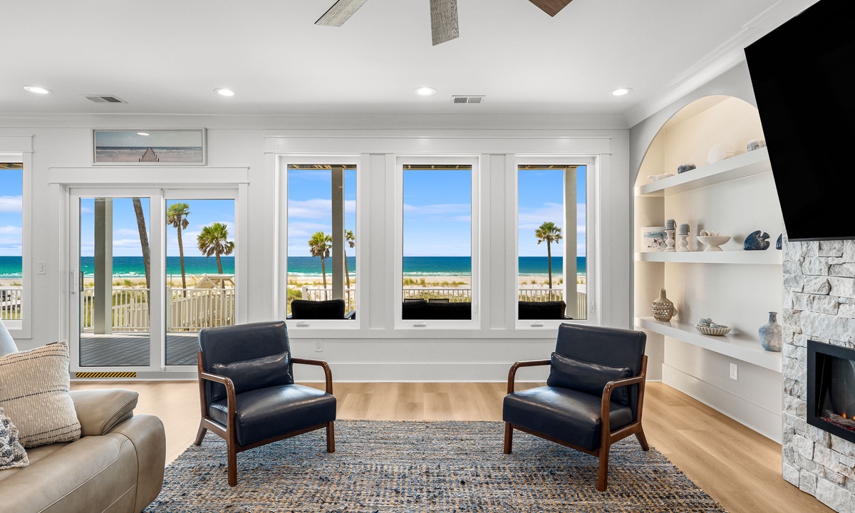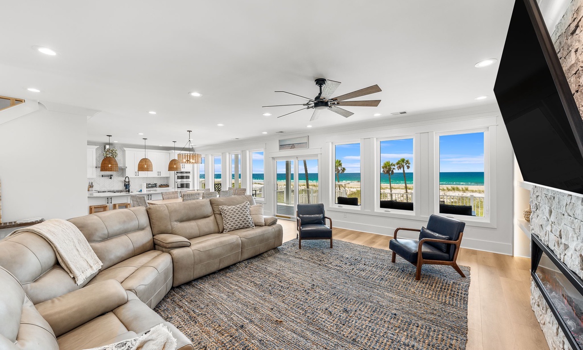 * Open-concept living room w/ panoramic Gulf backdrop