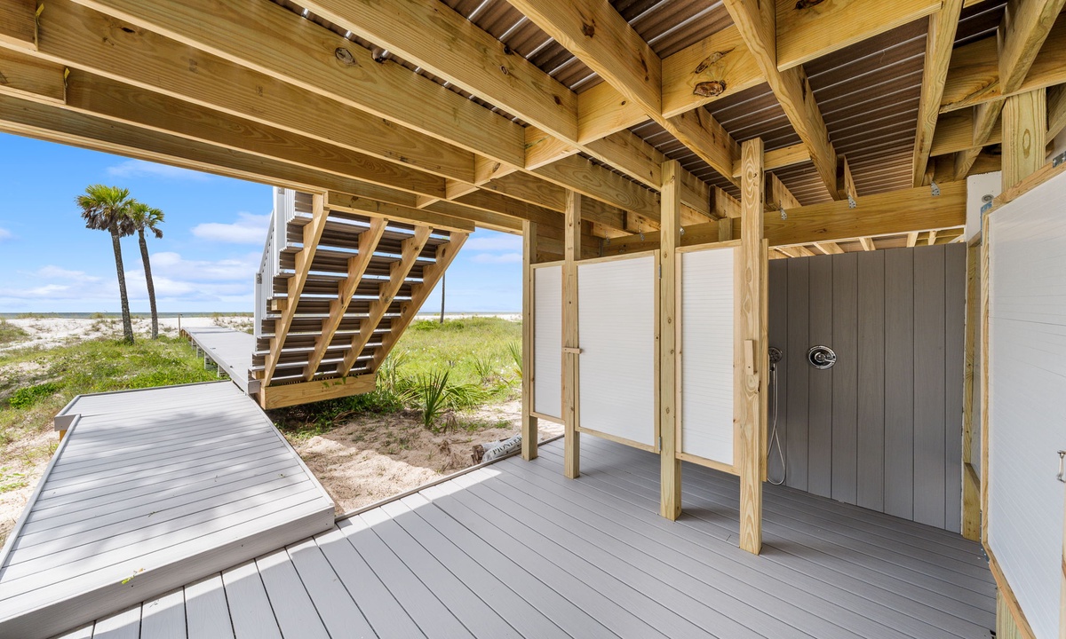 * Foot wash station at private boardwalk
