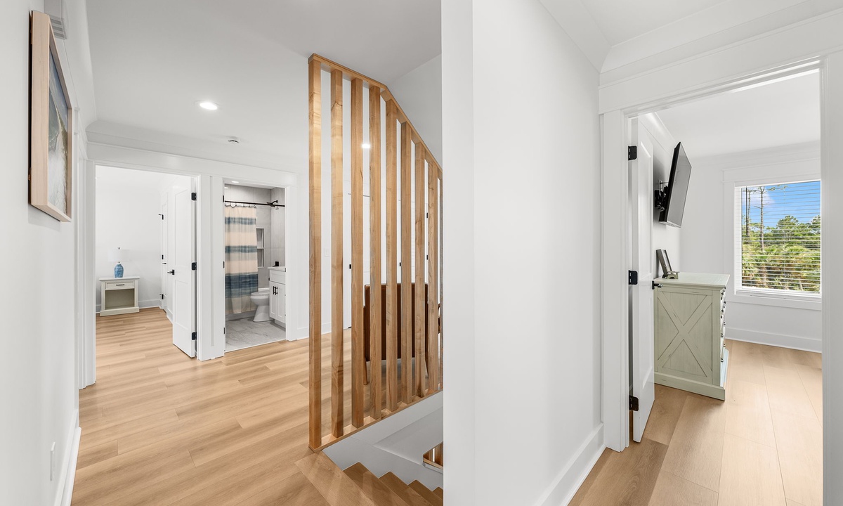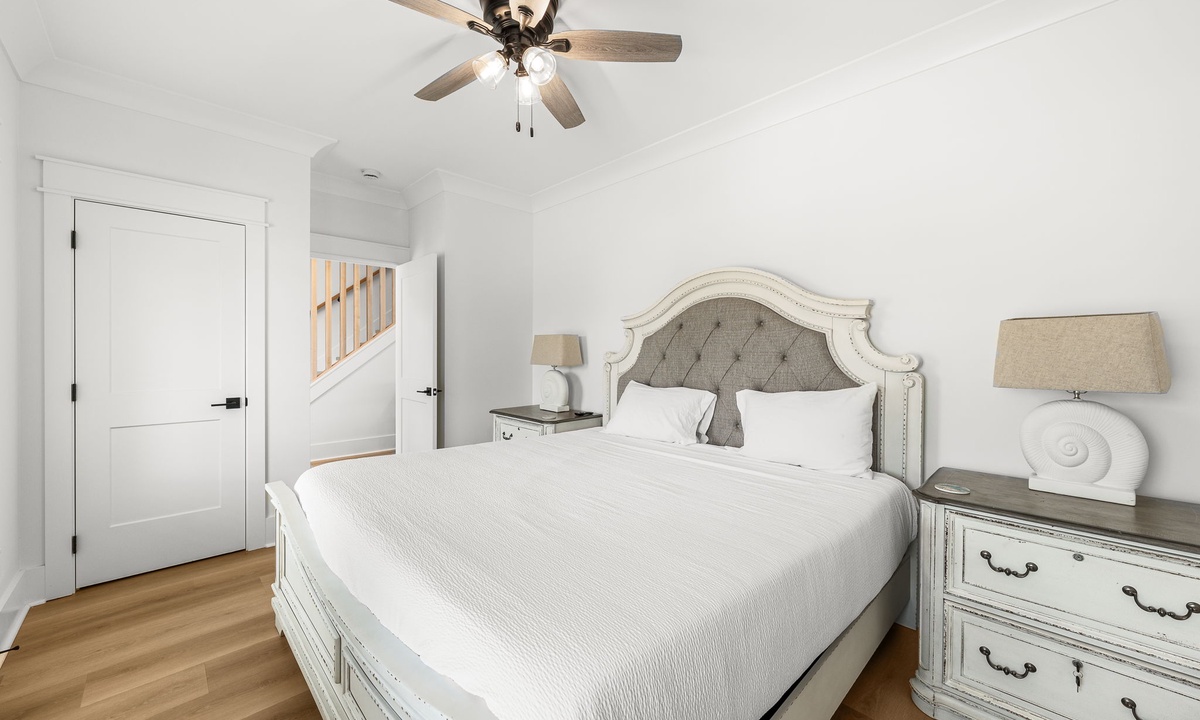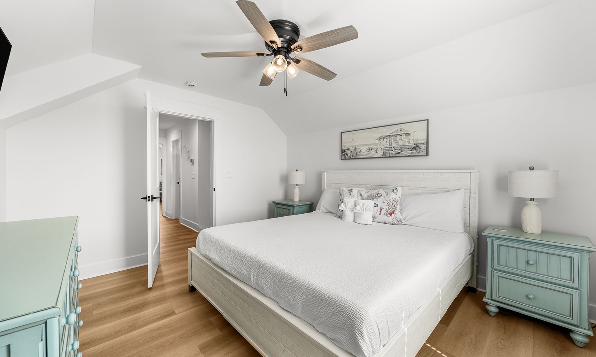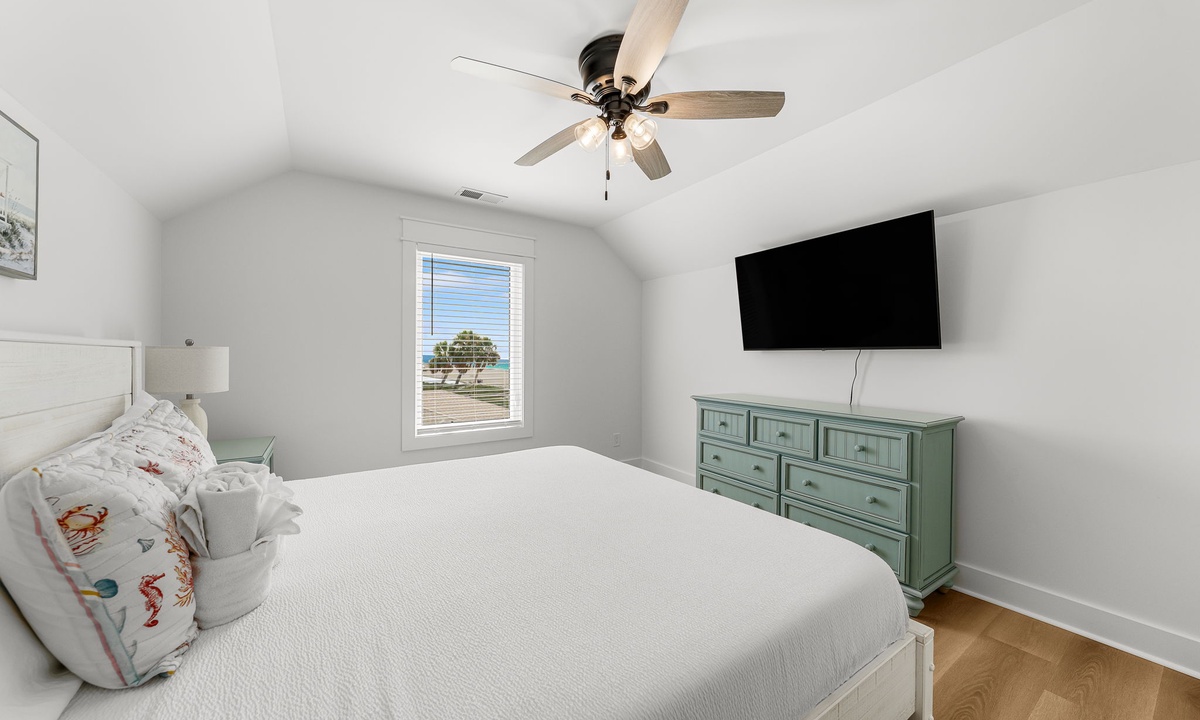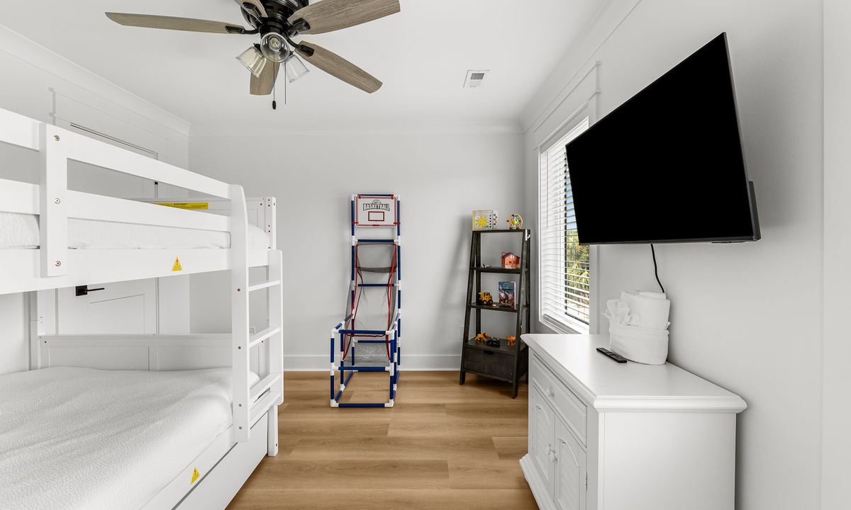 Third Floor: 1 King + Twin/Twin bunk room & Full/Full bunk, 1 bath